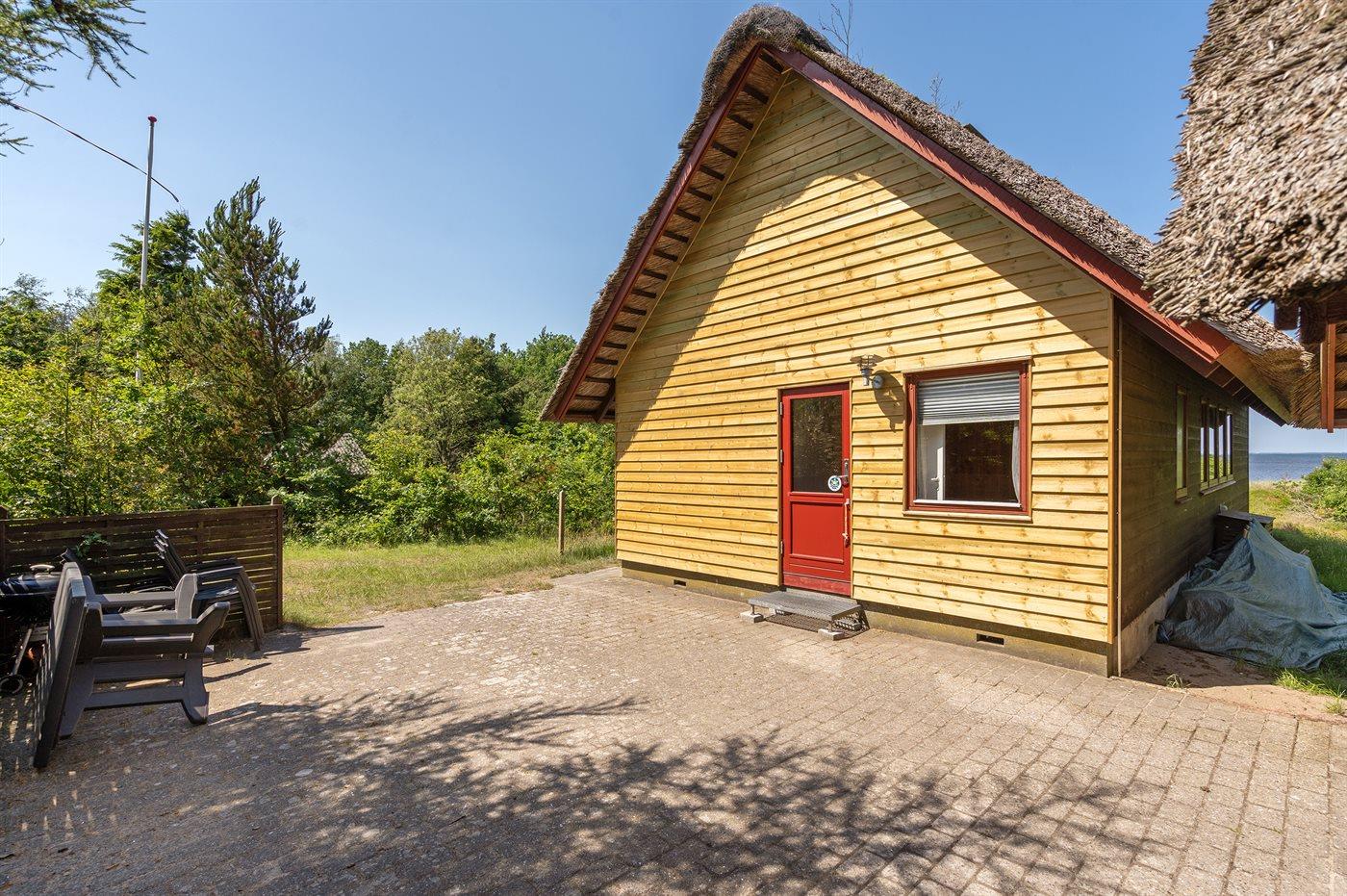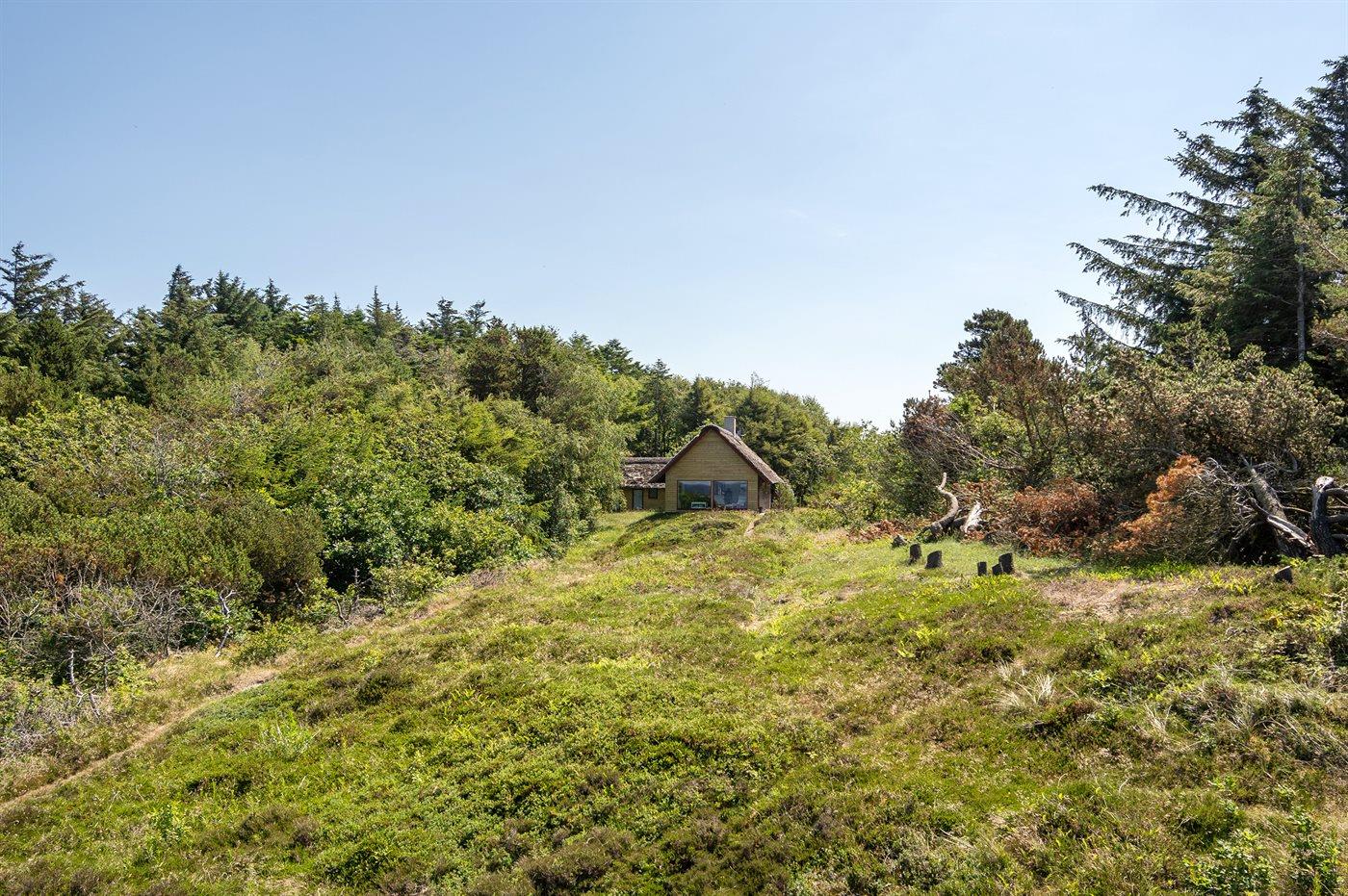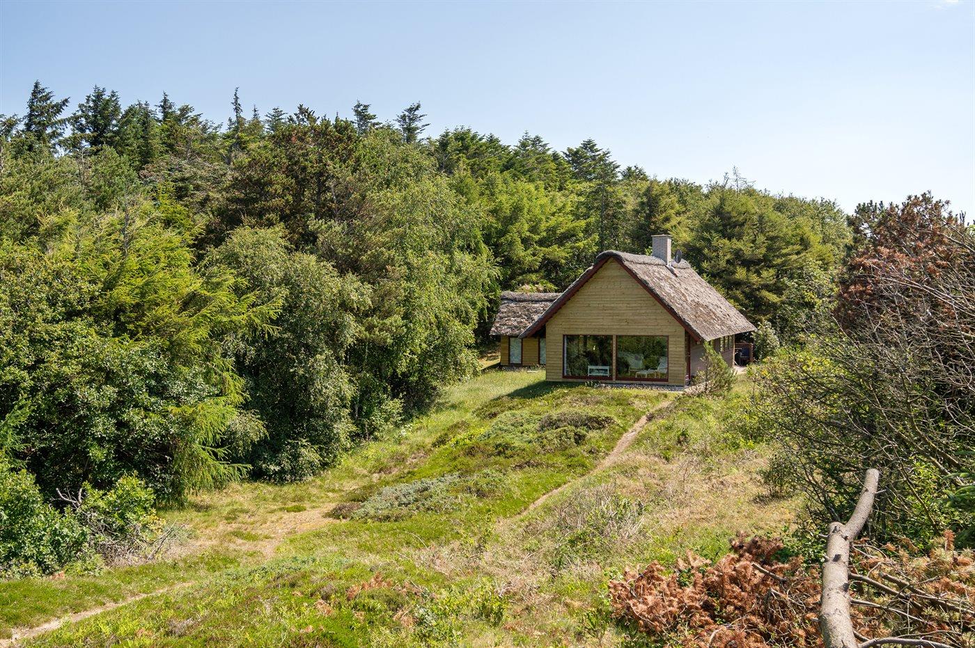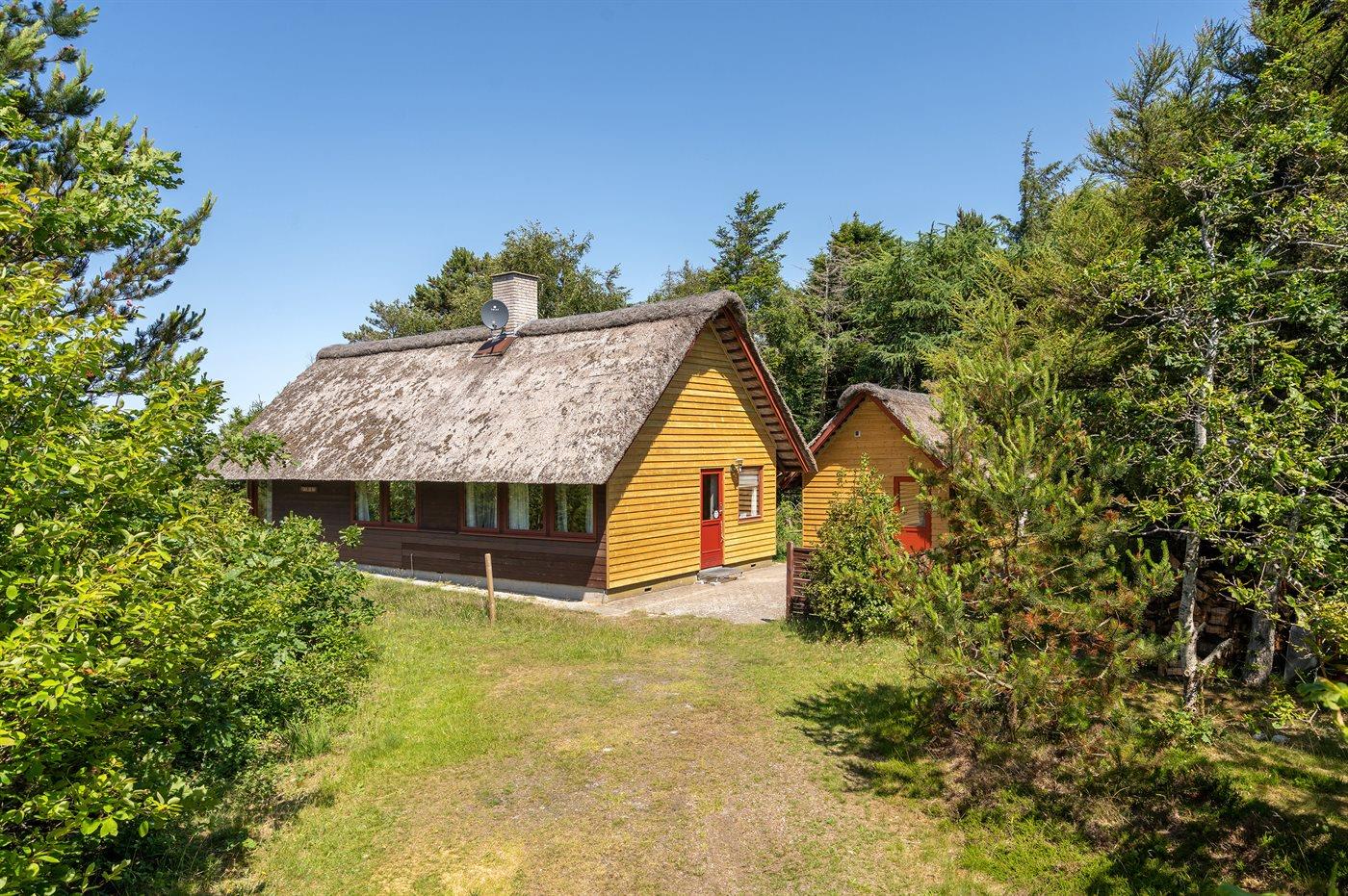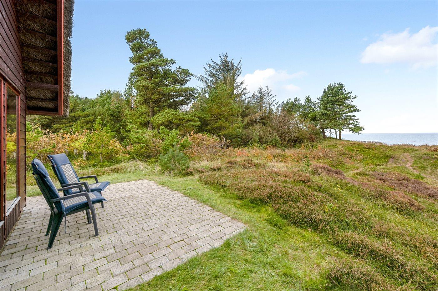 Med panoramaudsigt over Ringkøbing Fjord ligger dette meget hyggelige, ældre sommerhus med stråtag - på en stor kuperet naturgrund. Grunden strækker sig helt ud til fjorden, og derfor er huset bl.a. meget velegnet til windsurfere. Husets indretning er funktionel med blandet møblement. Der findes flere gode cykelstier i området, bl.a. til Bork Havn og Skaven Strand.