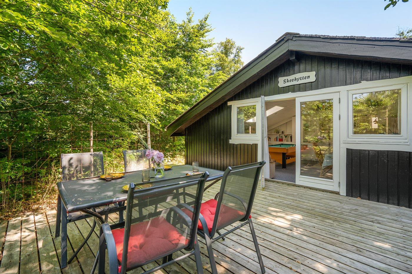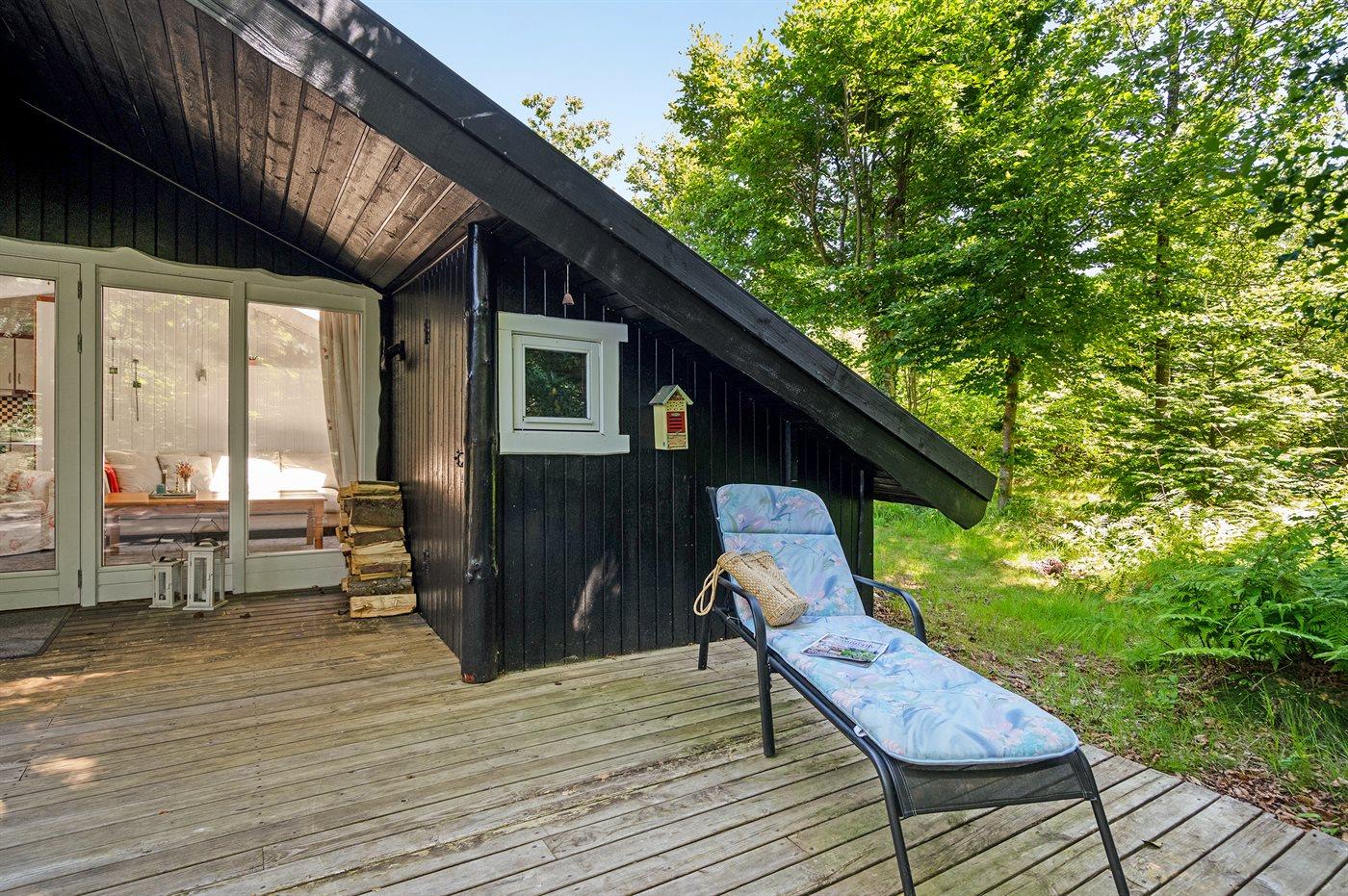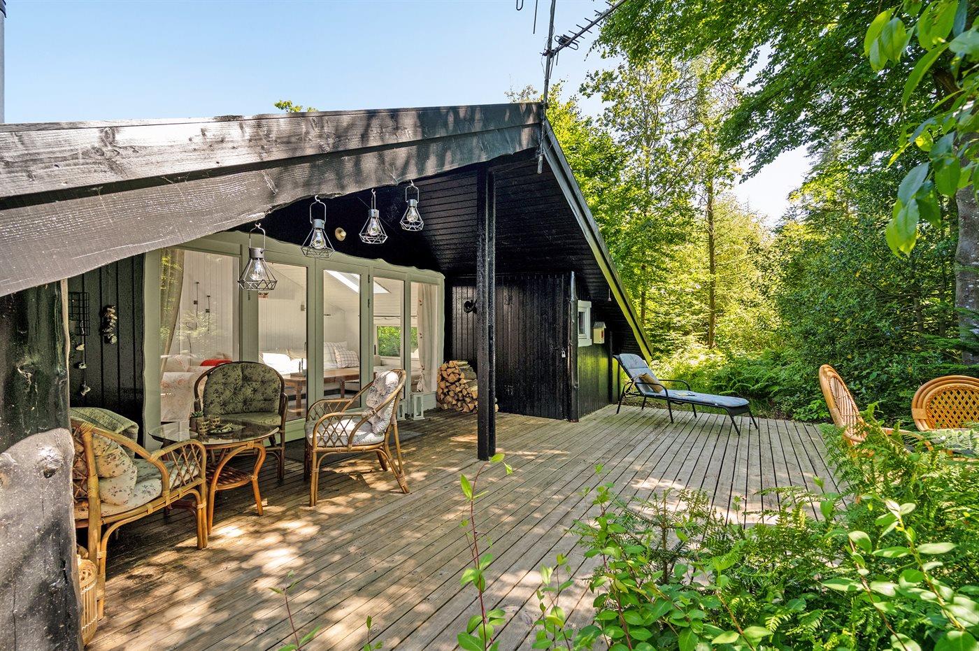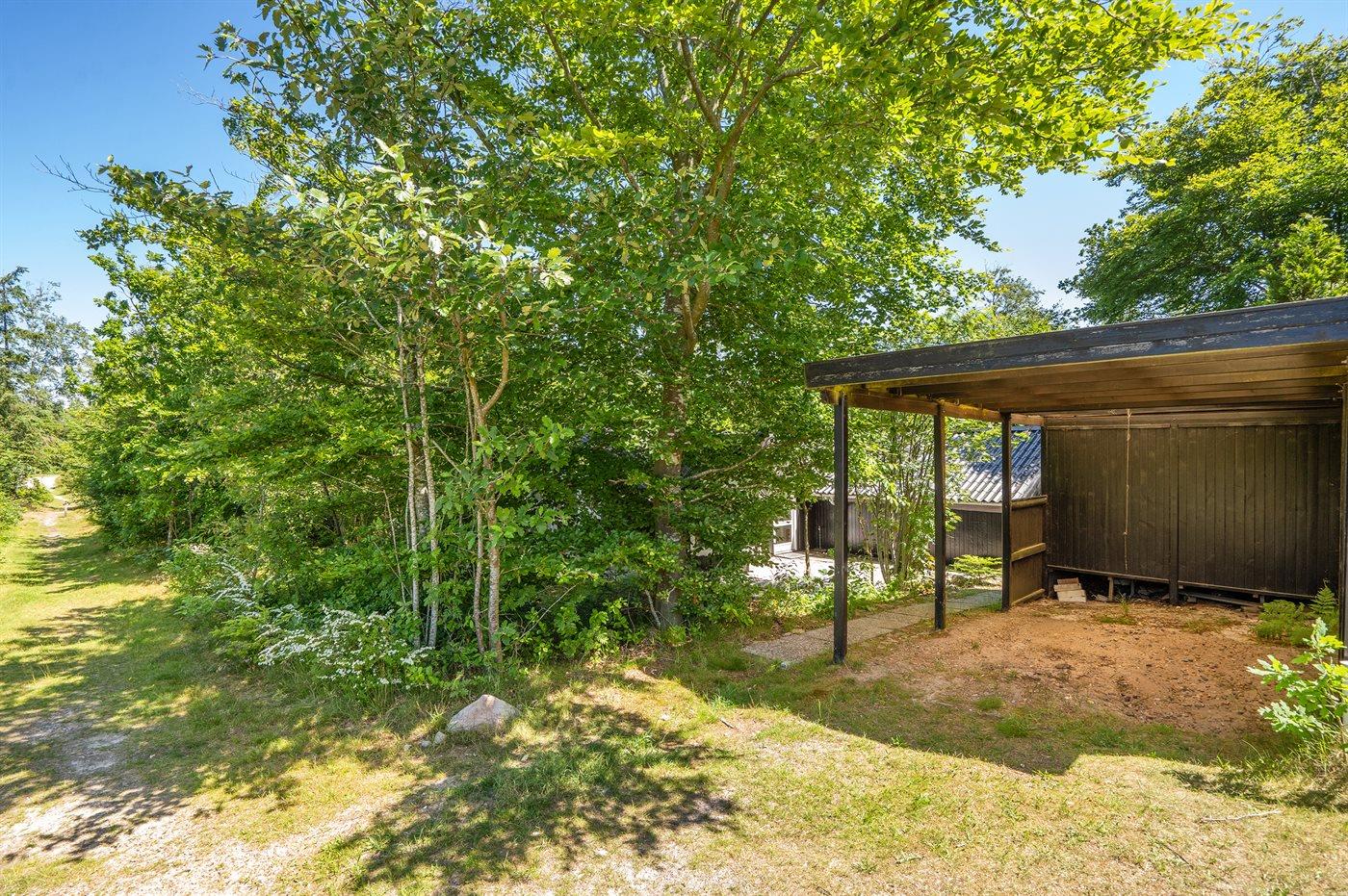Ferieboligen er beliggende på en 1539 m² stor naturgrund. Der er 450 m til fjorden. Nærmeste forretning er beliggende i en afstand af 4500 m. Til ferieboligen hører 20 m² terrasseareal. Desuden er der 7 m² overdækket terrasse. Der ligger en legeplads i en afstand af 100 m. Der er garage til rådighed. Parkering ved ferieboligen.