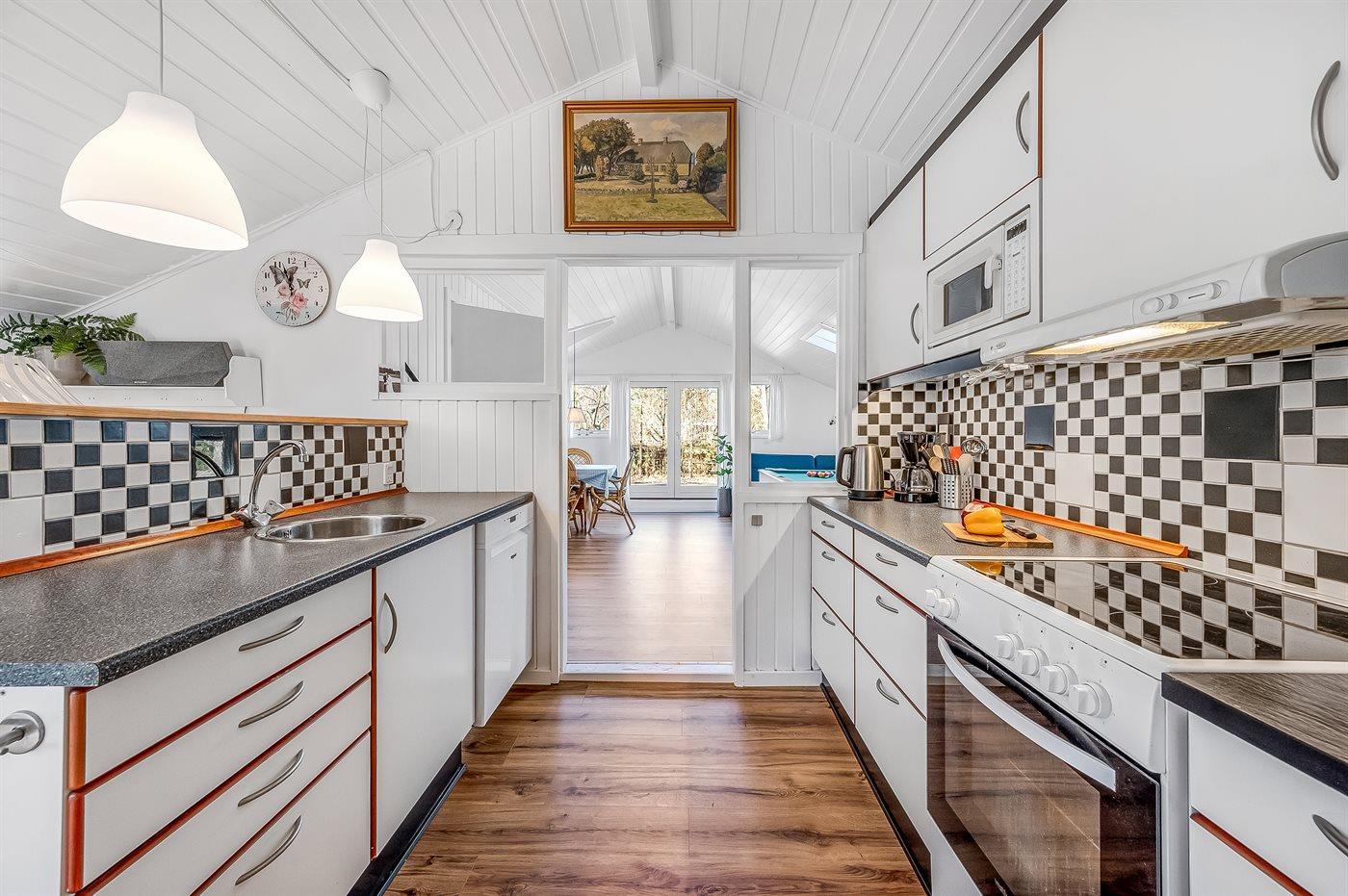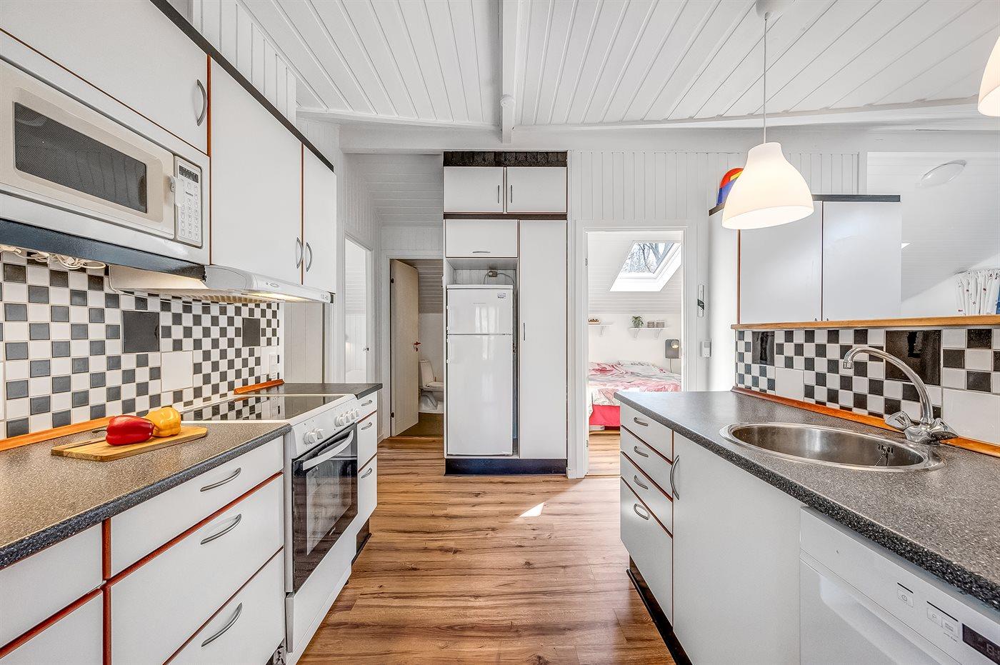 Køkkenet er udstyret med 2 køleskabe. Der er 4 keramiske kogeplader, varmluftovn, mikrobølgeovn samt opvaskemaskine.