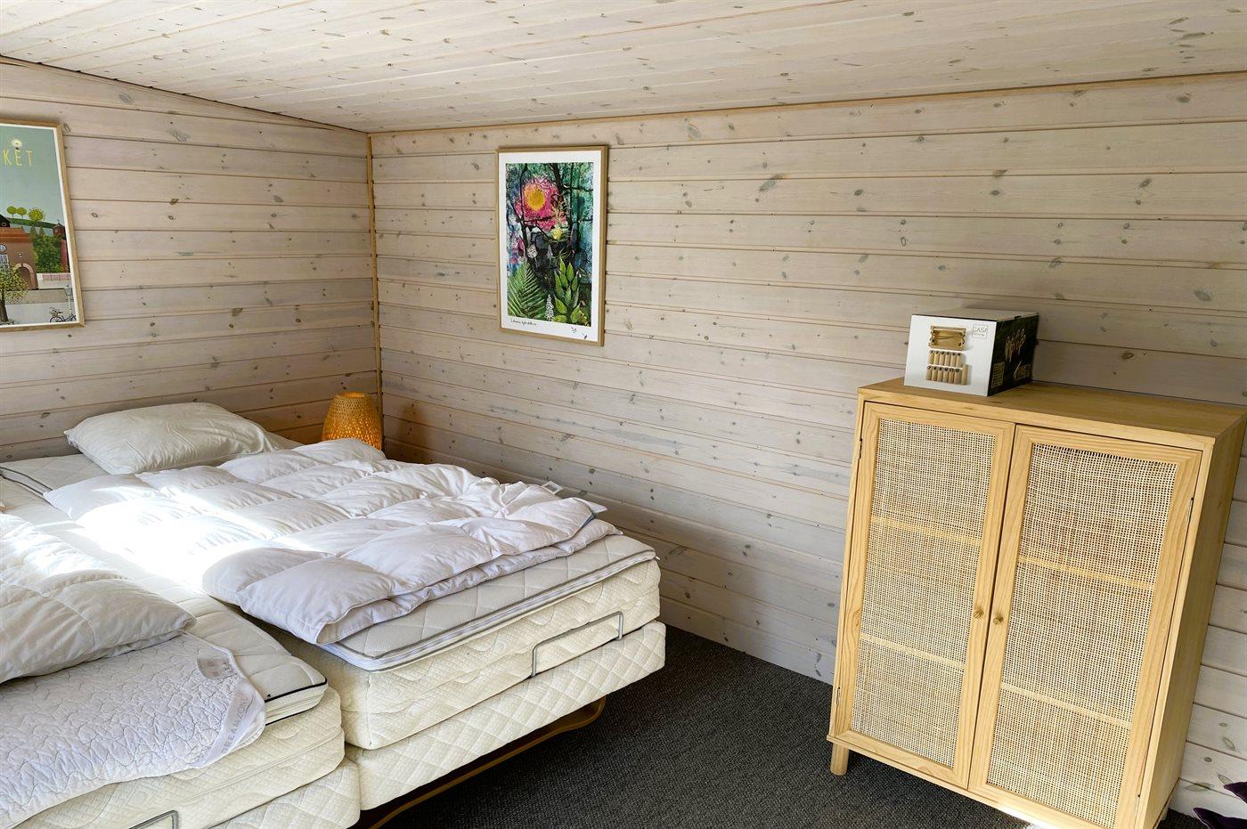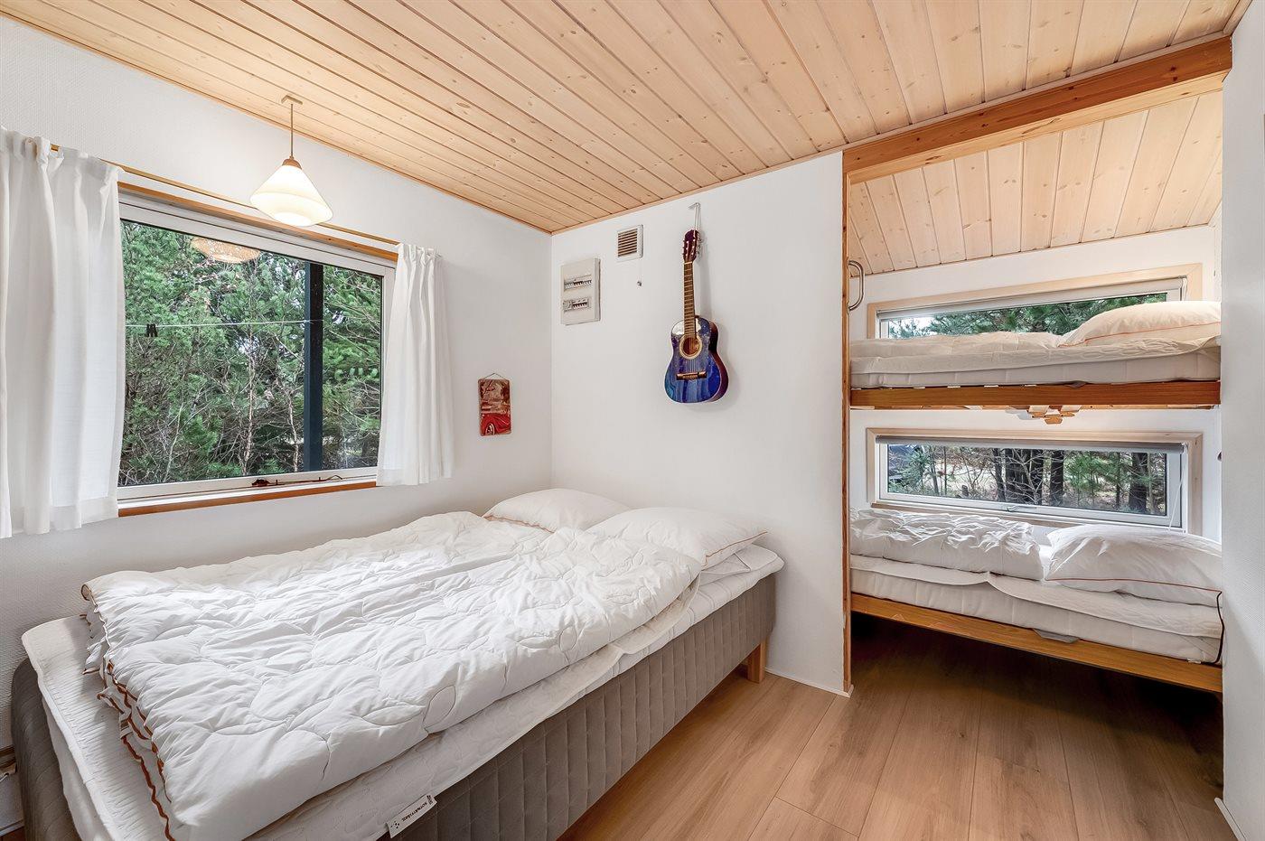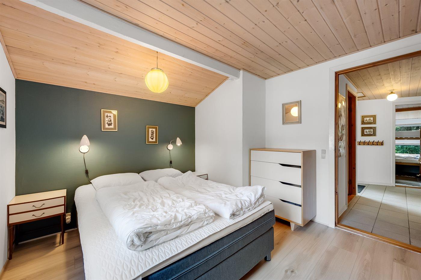 Der er i alt 3 soveværelser. Sovepladserne fordeler sig på: 4 sovepladser i dobbeltsenge. 2 sovepladser i enkeltsenge. 2 sovepladser i køjeseng. 2 af disse sovepladser befinder sig i anneks.