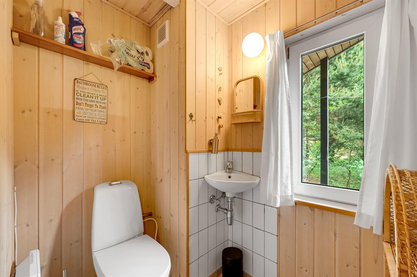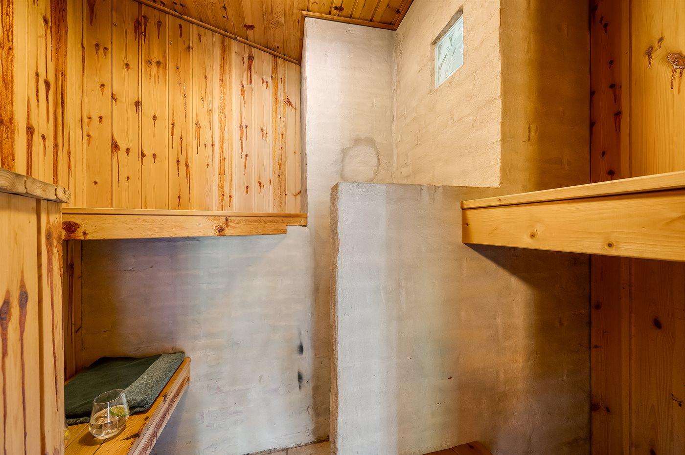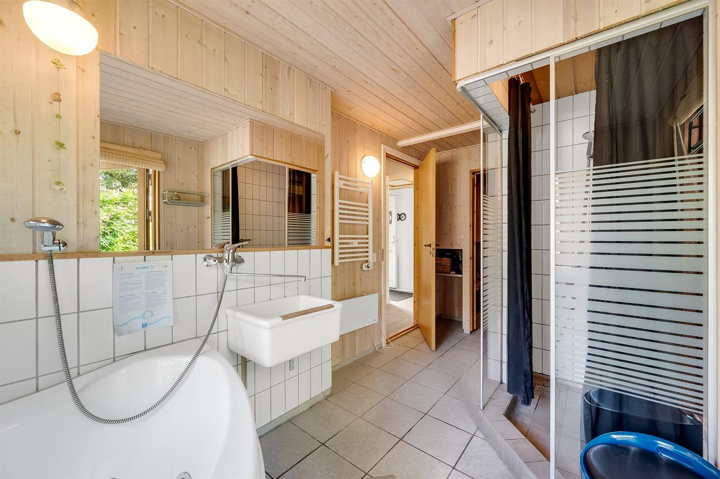 Der er 1 badeværelse med bruseniche og 1 toilet. I saunaen er der mulighed for afslapning.