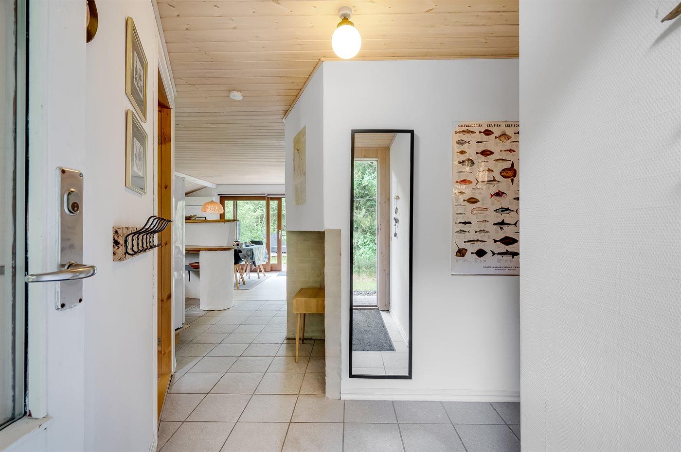 Ferieboligen er beliggende på en 1600 m² stor naturgrund. Der er 350 m til fjorden. Nærmeste forretning er beliggende i en afstand af 4500 m. Til ferieboligen hører åbent terrasseareal. Gynge. Trampolin. Der ligger en legeplads i en afstand af 100 m. Grill til rådighed. Parkering ved ferieboligen.