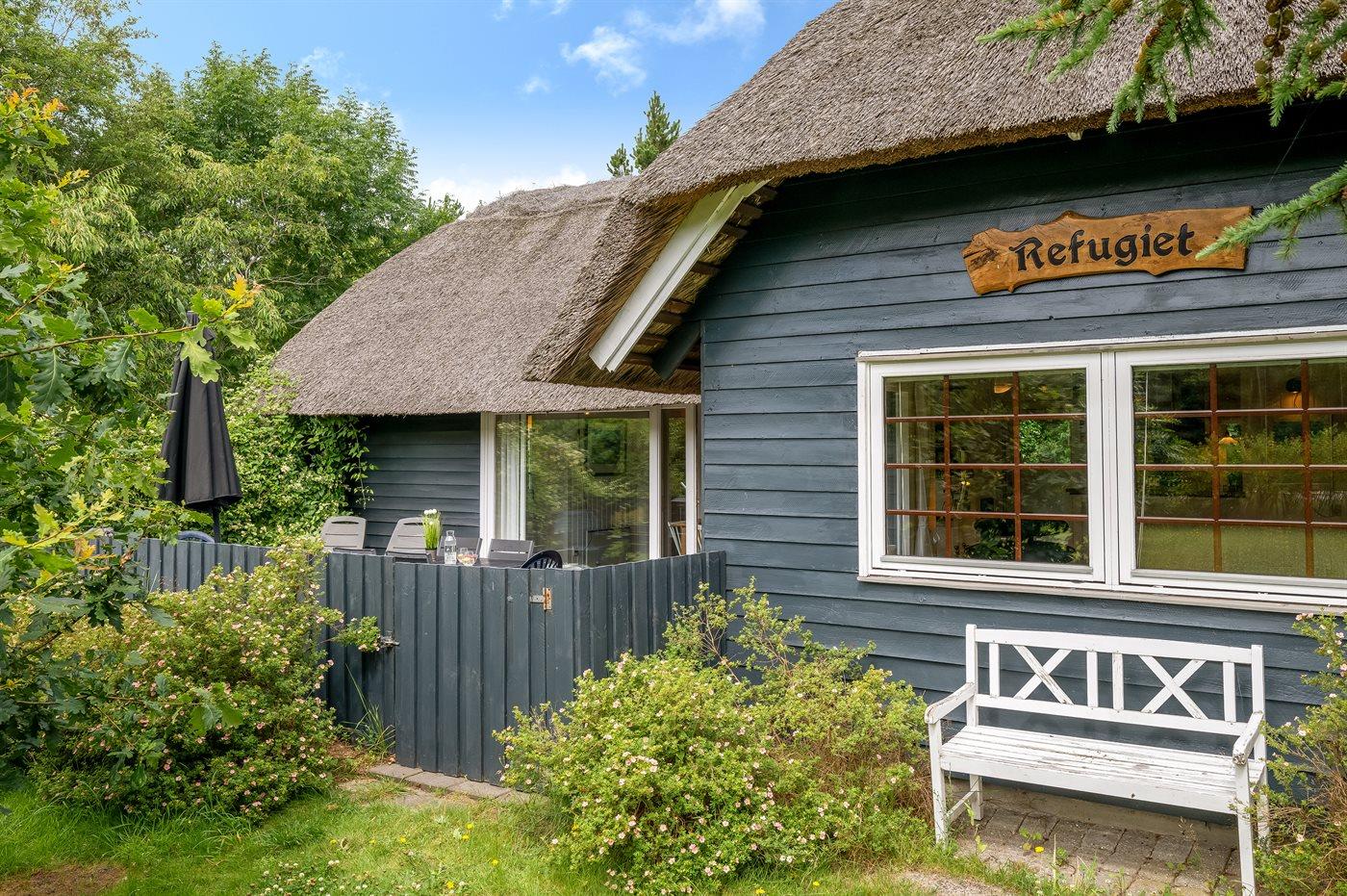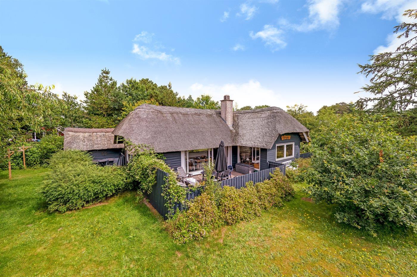 Hyggeligt stråtækt sommerhus på lukket naturgrund tæt ved Ringkøbing Fjord og Hemmet Strand.