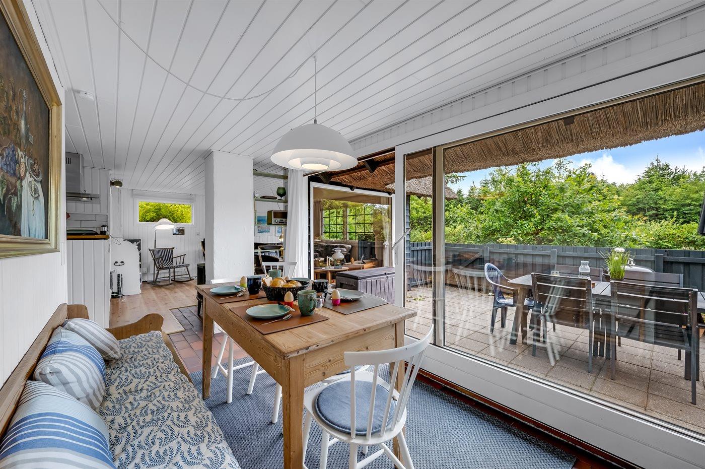 Indenfor er sommerhuset løbende renoveret, og i det hyggelige køkken kan I hjælpe hinanden med at tilberede lækker mad, eller I kan slappe af i sofaen med en god bog og lytte til brændeovnens knitren i baggrunden. To af sommerhusets sengepladser findes i det hyggelige, stråtækte anneks.