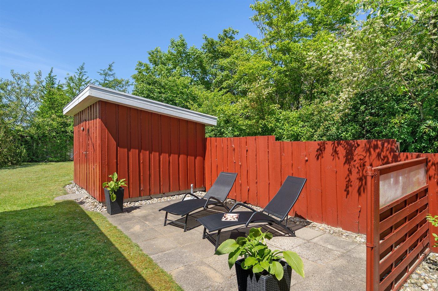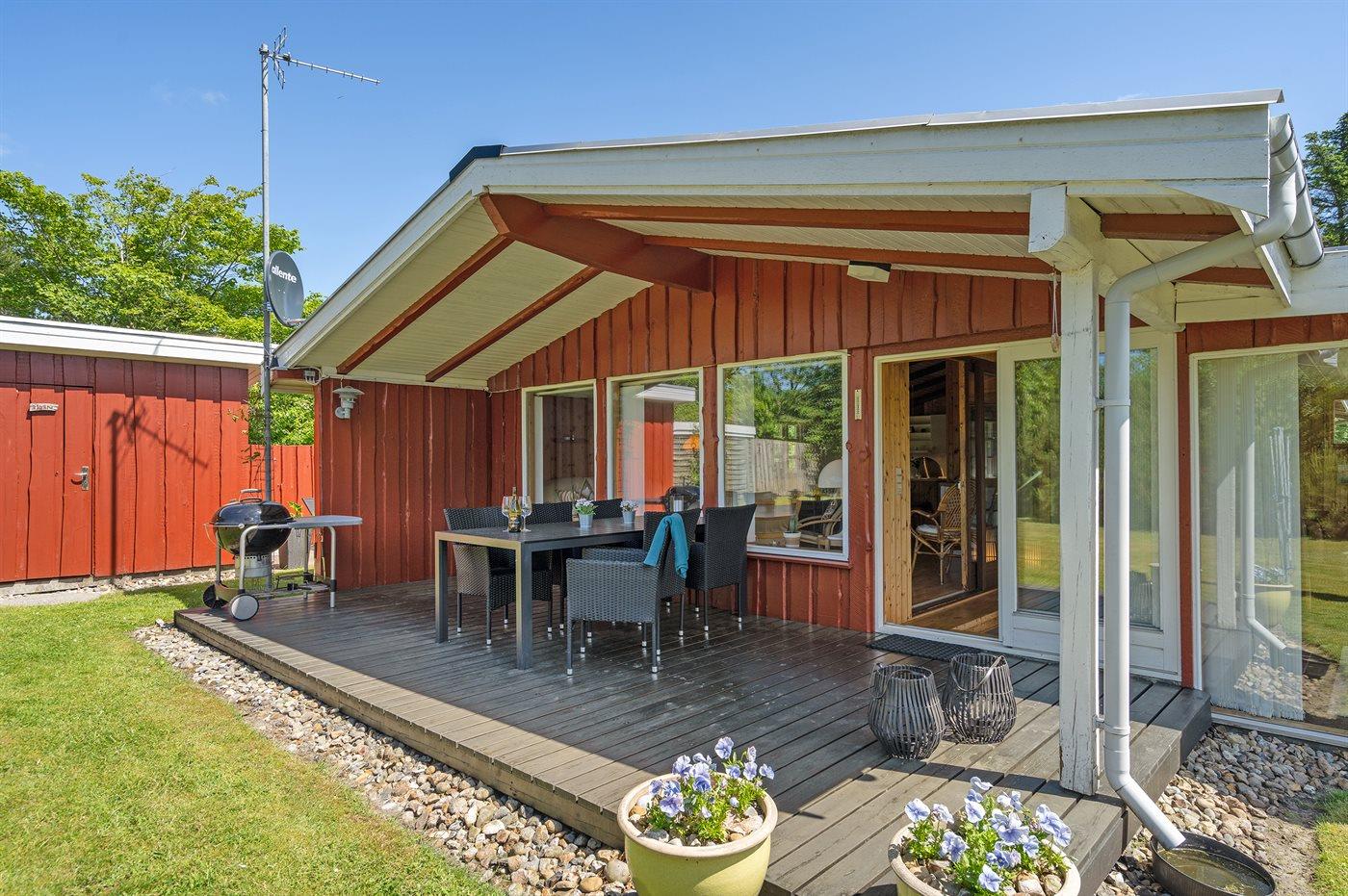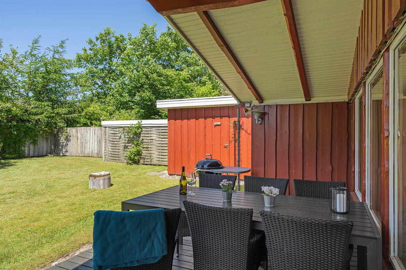 Ferieboligen er beliggende på en 951 m² stor naturgrund. Der er 22000 m til havet. Der er 400 m til fjorden. Nærmeste forretning er beliggende i en afstand af 4500 m. Til ferieboligen hører 32 m² terrasseareal. Desuden er der 12 m² overdækket terrasse. Heraf i alt 19 m² lukket terrasse. Ligeledes er der adgang til udestue. Der ligger en legeplads i en afstand af 200 m. Parkering ved ferieboligen.