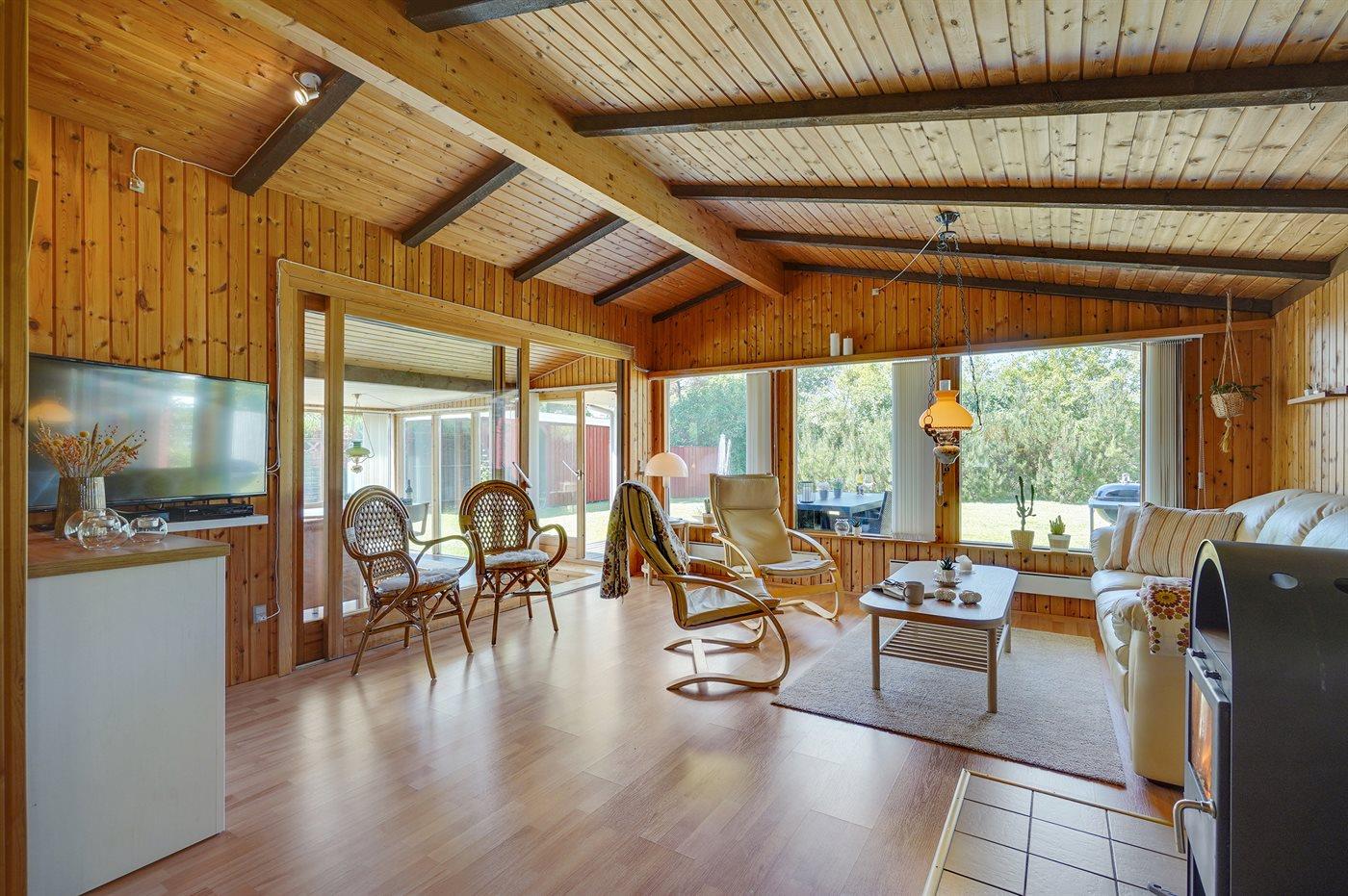 Hyggeligt sommerhus med udestue, sauna og brændeovn nær fjord og skov i rolige omgivelser.