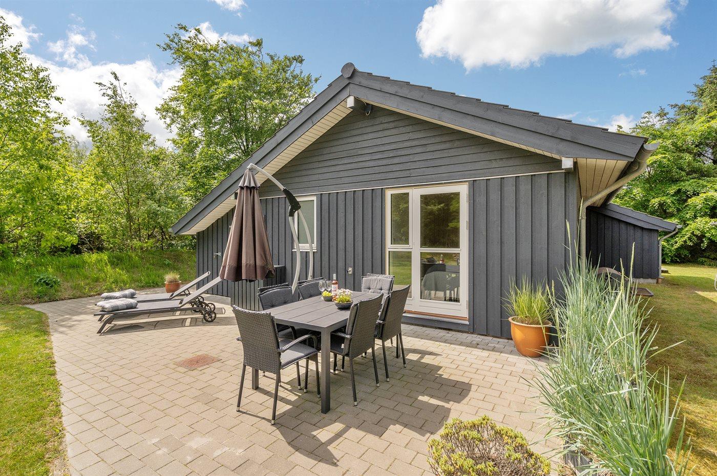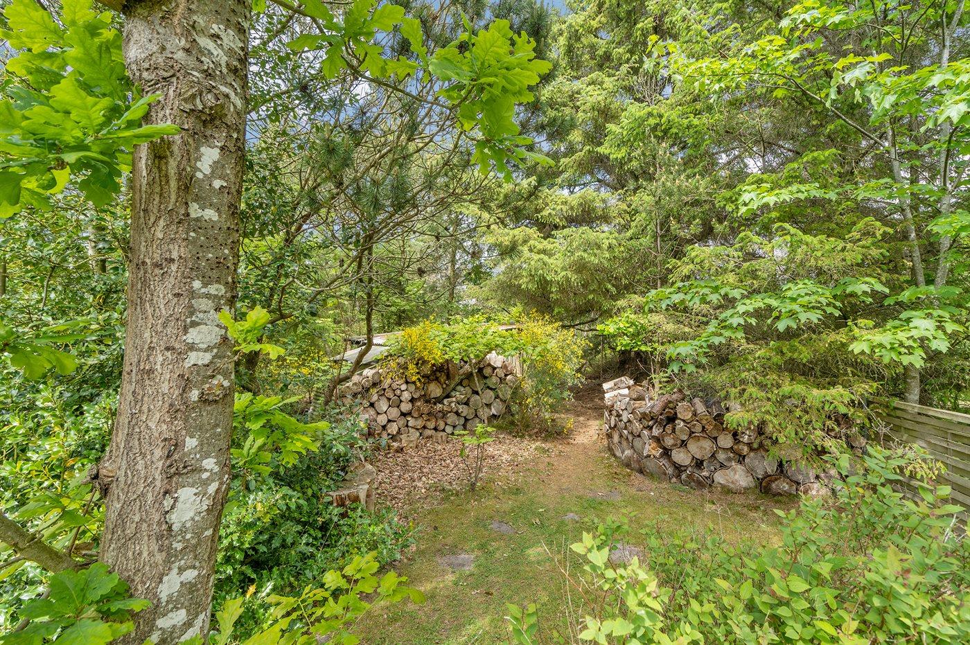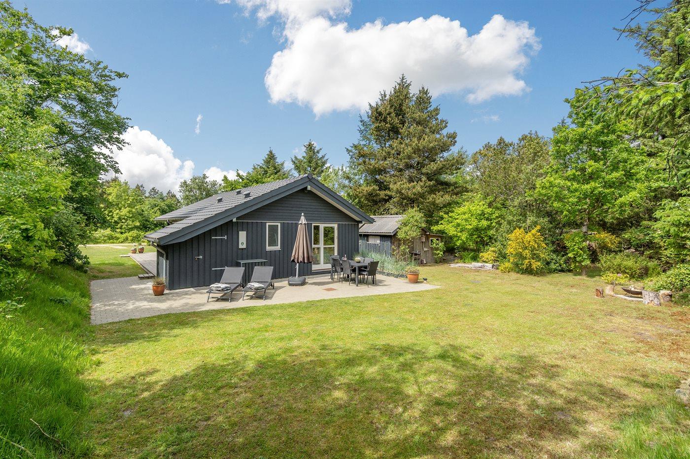 Ferieboligen er beliggende på en 1900 m² stor naturgrund. Der er 22000 m til havet. Der er 300 m til fjorden. Nærmeste forretning er beliggende i en afstand af 2000 m. Til ferieboligen hører 40 m² terrasseareal. Desuden er der 10 m² overdækket terrasse. Sandkasse. Legehus. Grill til rådighed. Der er installeret stik til opladning af elbil. Type 2 stik. Med 11 kW ladeeffekt. Parkering ved ferieboligen.
