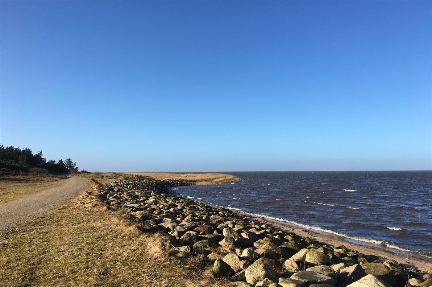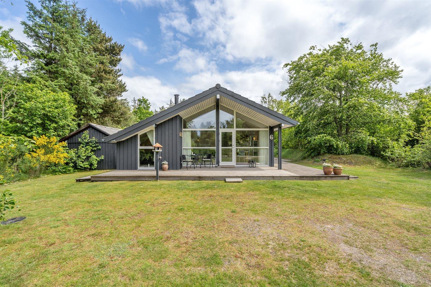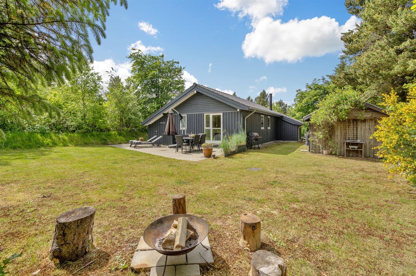 Ferieboligen er beliggende på en 1900 m² stor naturgrund. Der er 22000 m til havet. Der er 300 m til fjorden. Nærmeste forretning er beliggende i en afstand af 2000 m. Til ferieboligen hører 40 m² terrasseareal. Desuden er der 10 m² overdækket terrasse. Sandkasse. Legehus. Grill til rådighed. Der er installeret stik til opladning af elbil. Type 2 stik. Med 11 kW ladeeffekt. Parkering ved ferieboligen.