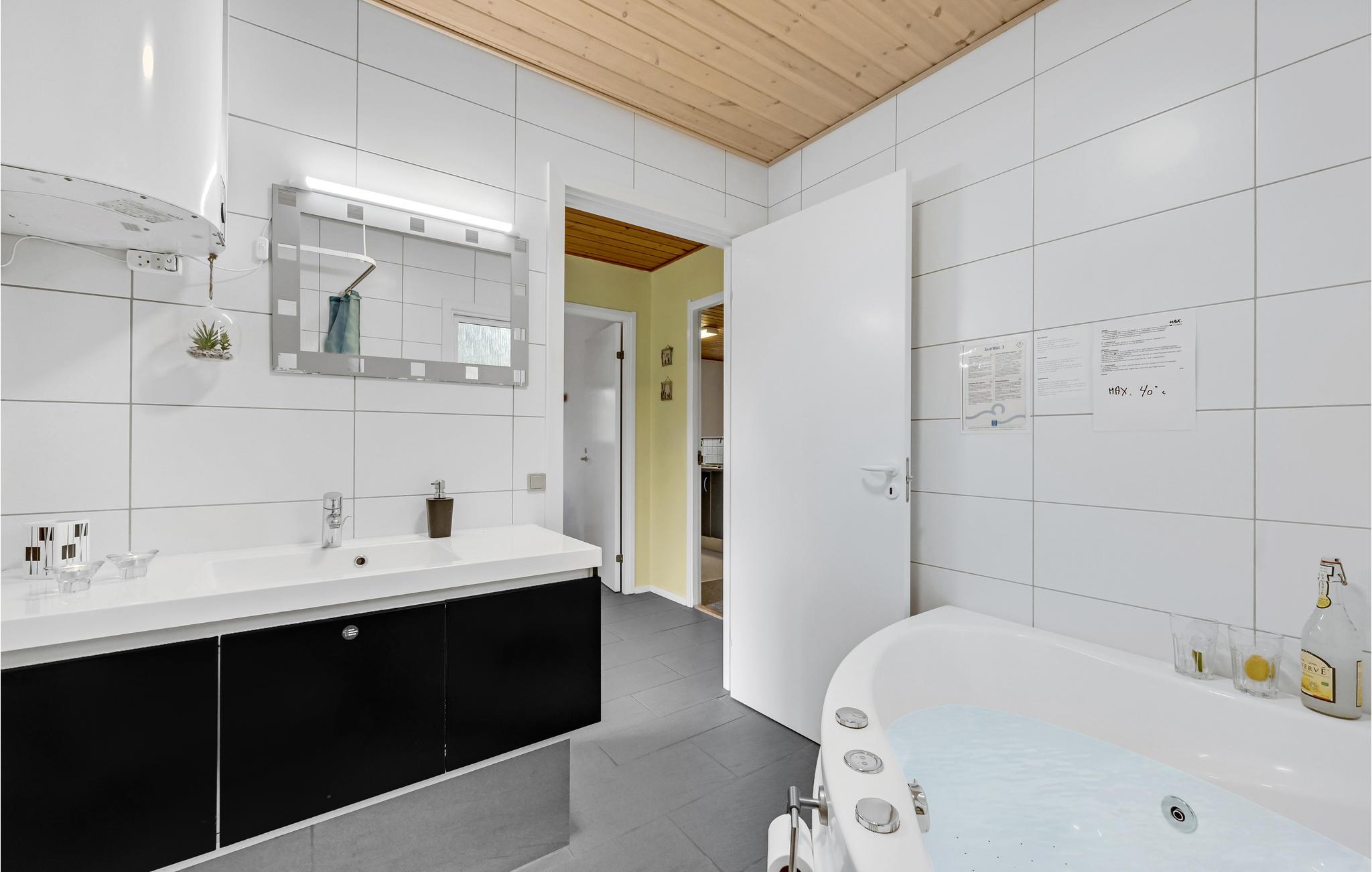 I huset venter jer masser af komfort, herunder et spabad til herlig ferieafslapning; her kan I tilbringe mange skønne og afslappende timer. I kan også nyde varmen fra brændeovnen i den hyggeligt indrettede opholdsstue, mens I ser en god film i fjernsynet. Det praktisk indrettede køkken, der er kombineret med spisestuen, er naturligvis udstyret med alle tekniske hjælpemidler. I har et redskabsrum til rådighed.
