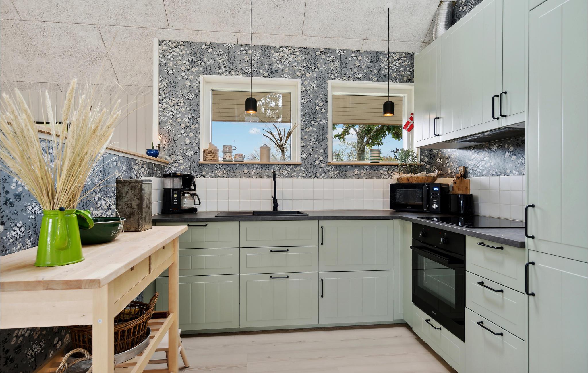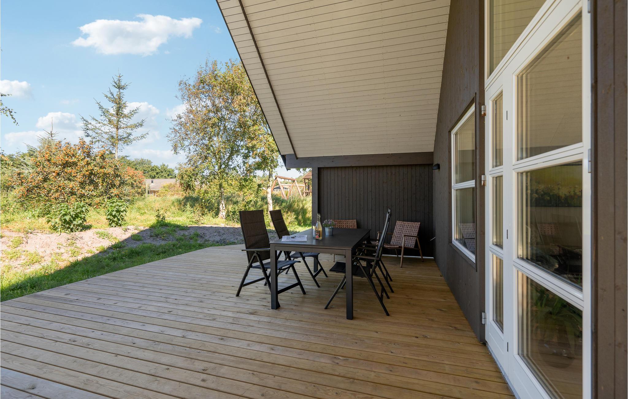 Dette yderst komfortable hus har en fremragende beliggenhed i Hemmet Strand, så her er der lagt op til en herlig familieferie ved havet. Nyd den vidunderlige udsigt over klitlandskabet, fra I står op om morgenen. Nyd atmosfæren i de åbne, hyggelige lokaler, tilbered lækre feriemåltider sammen og dæk op til en middag rundt om det lange spisebord efter et spil bordtennis eller airhockey. Når dagen er til ende kan I sætte jer til rette i sofaen og hygge jer med en god film. Den stille knitren fra flammerne i brændeovnen bidrager med ekstra stemning.
