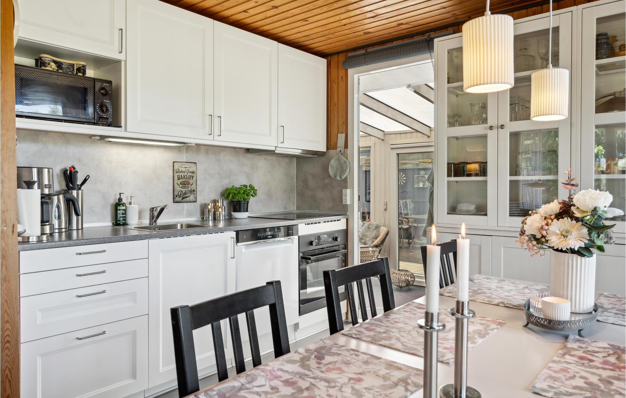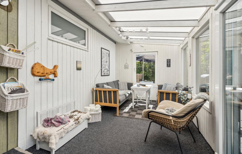I får en virkelig god beliggenhed i dette sommerhus, som har nem adgang til seks forskellige svømmehaller. Find jer godt til rette i husets indbydende rum. Her kan I rigtig slappe af oven på dagens udflugter. Læn jer godt tilbage i sofaen med en spændende bog, mærk varmen fra brændeovnen på en kølig dag og glæd jer over udsigten til den grønne have.