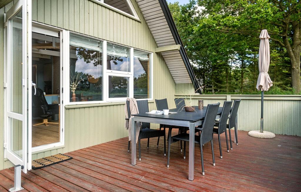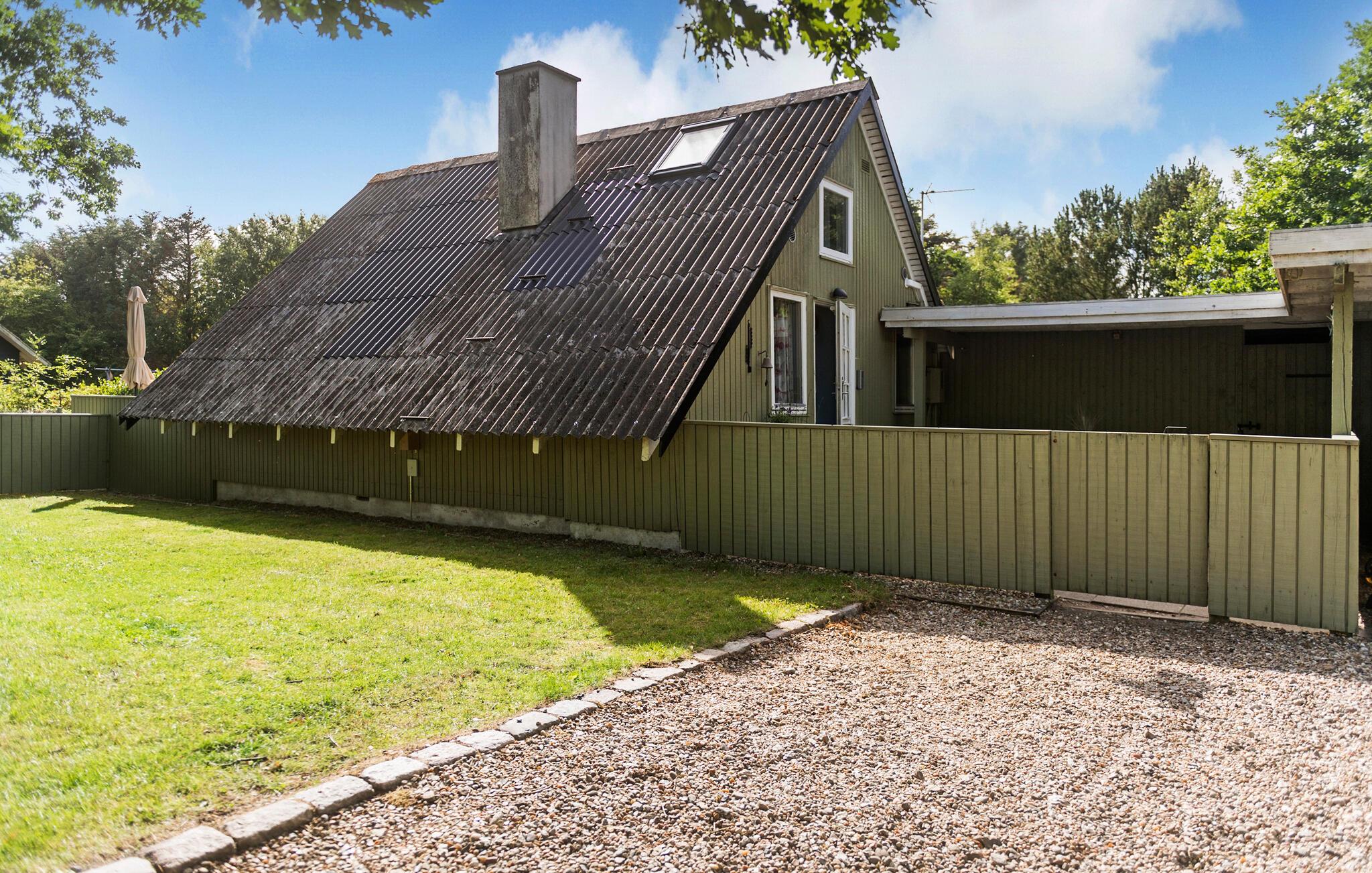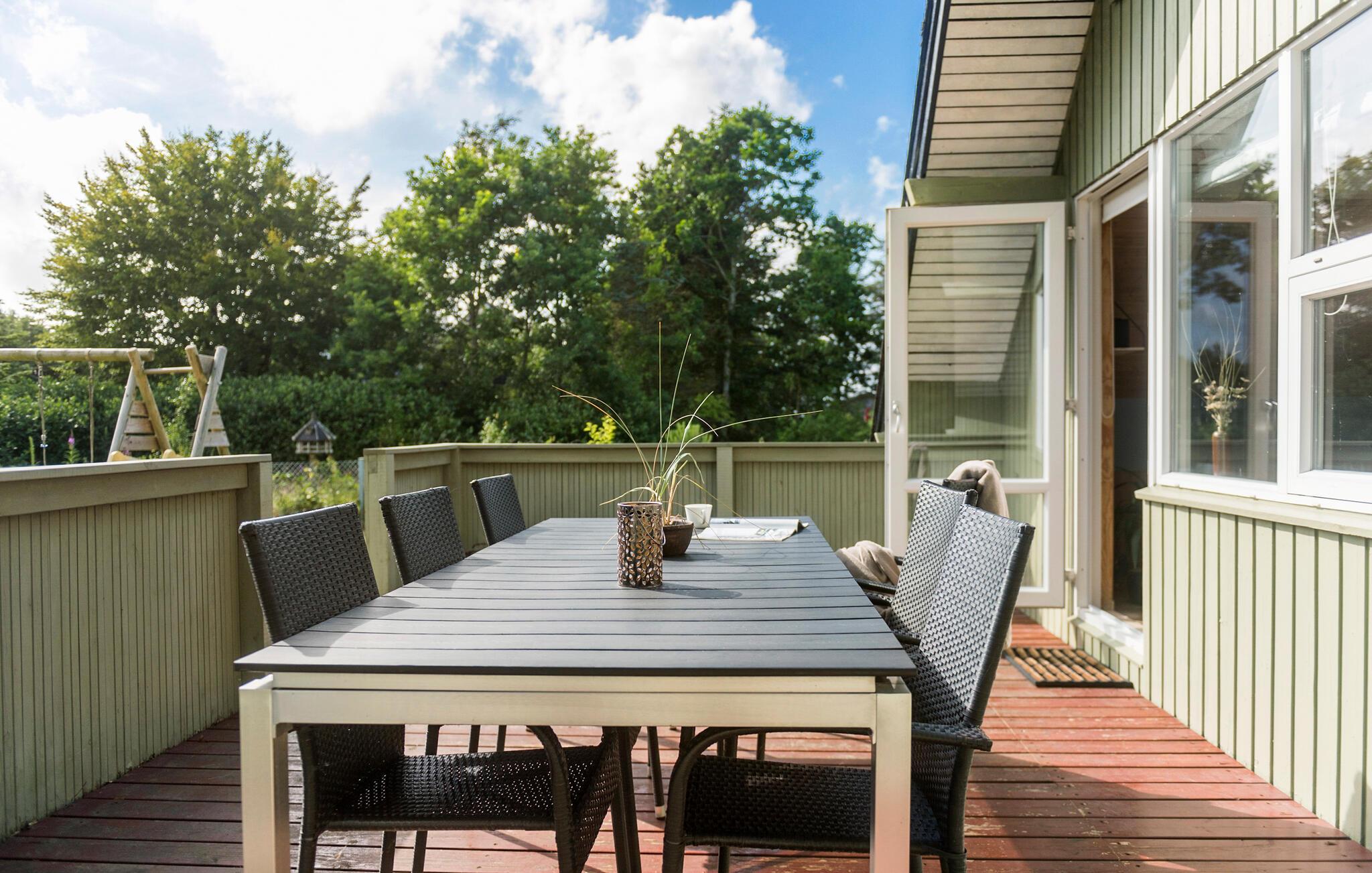 Hyggeligt træhus nær Ringkøbing Fjord med stor terrasse, indhegnet have og gode faciliteter til afslapning.