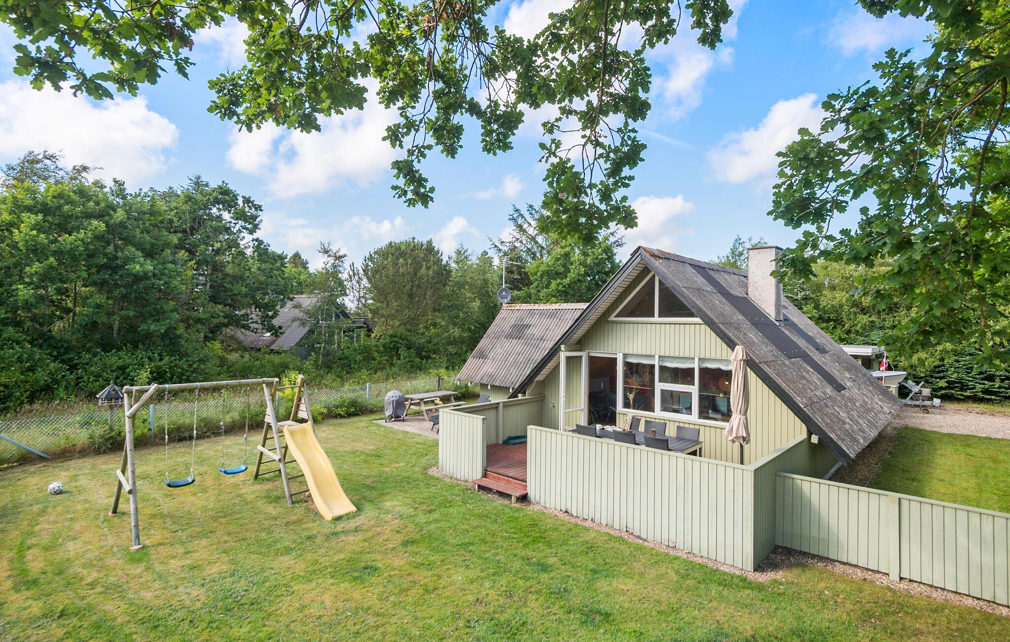 Åbn terrassedøren om morgenen, og træd ud i det grønne med en kop friskbrygget kaffe. Nyd en let morgenmad, og lav planer for den kommende dag, mens børnene morer sig på gynger og rutsjebaner. Om aftenen kan I samles til en hyggelig grillfest og snakke om jeres ferieoplevelser.
