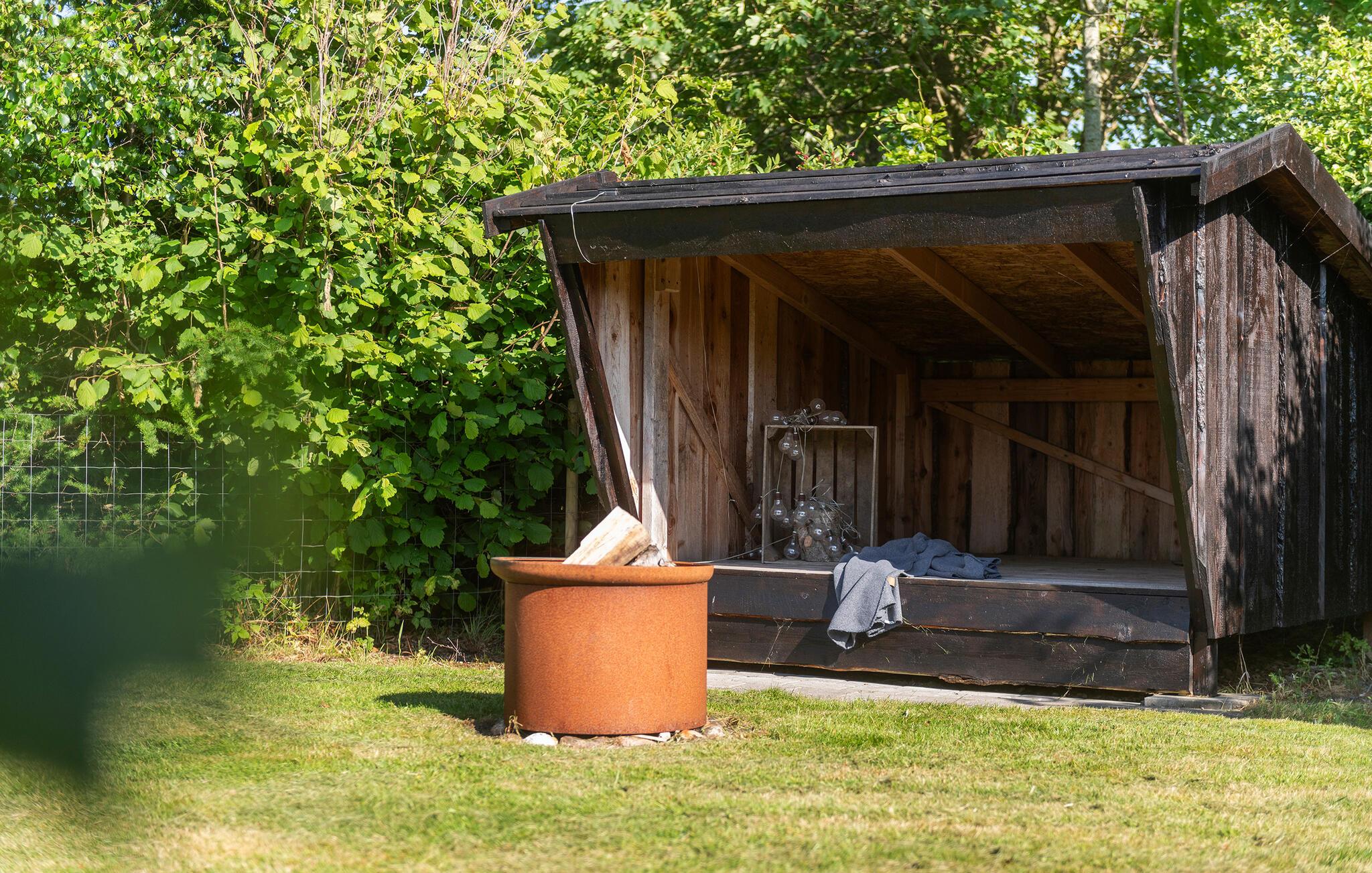 Dette hyggelige feriehus ved Hemmet Strand byder jer velkommen til en afslappende ferie. De lyse rum og den behagelige atmosfære skaber det perfekte fristed. Her finder I alt, hvad I behøver for at føle jer godt tilpas og slappe af. Efter en dag med eventyr kan I nyde en afslappende stund i spa-badekarret eller på en af de mange terrasser, hvor I kan indånde den friske luft og nyde naturen. For en særlig oplevelse kan I overnatte i shelteret under stjernerne – et højdepunkt for både naturelskere og eventyrlystne.