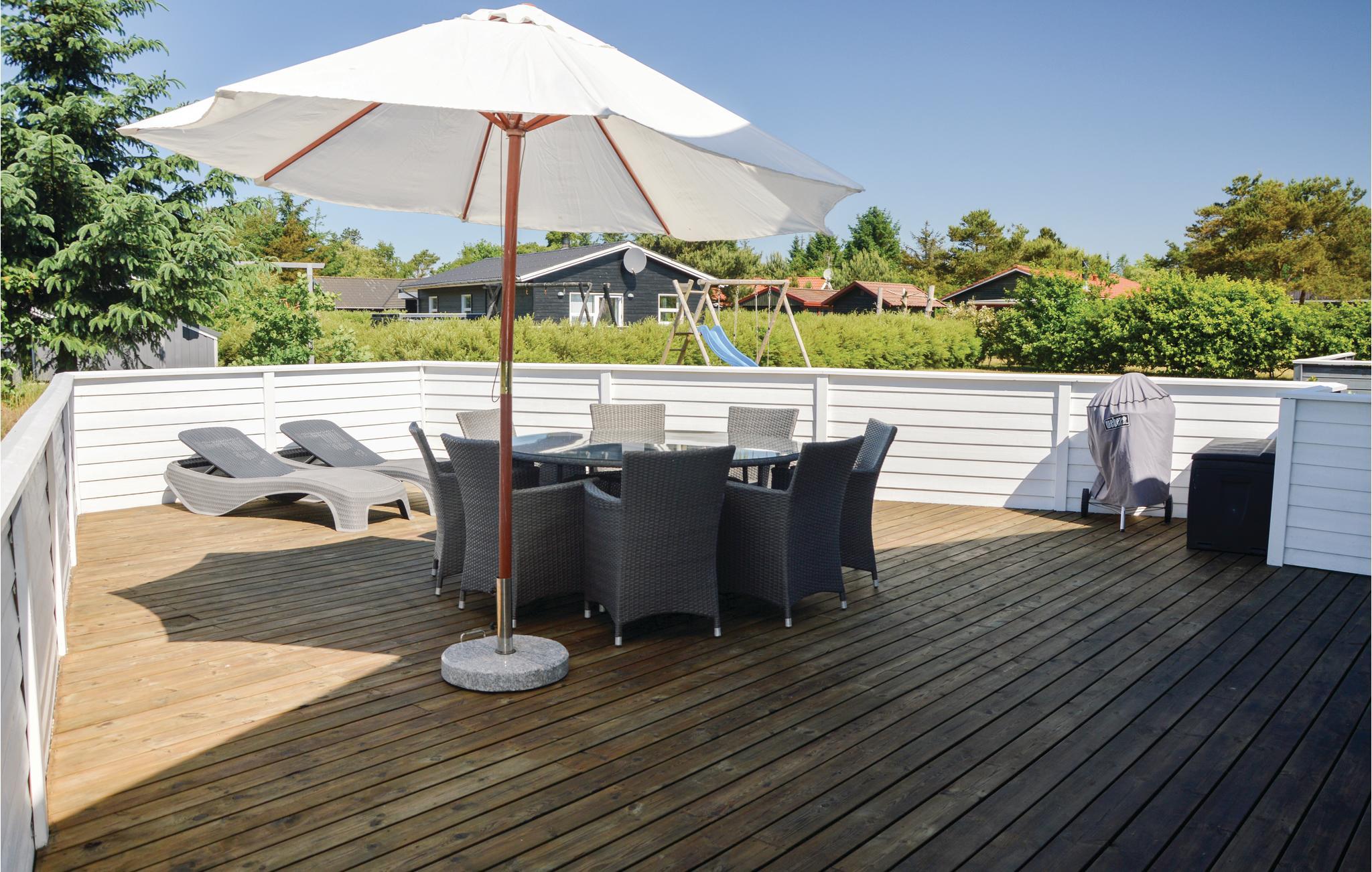 I det dejligt rolige område Hemmet ligger dette skønne sommerhus, som indbyder til en afslappende ferie, langt væk fra hverdagens stress og larm. I huset er der både spa og dampbad, så her kan I forkæle jer selv med wellness under opholdet. Huset ligger godt for udflugter, tag bla. til Bork Vikingehavn eller besøg de hyggelige byer Tarm og Skjern med et levende forretningsliv. Derudover kan I også tage på surfskole eller prøve vandski på kabelbane i Ringkøbing Fjord, som er et populært sted for vandsportsentusiaster. Det er selvfølgelig også oplagt at bruge ferien på at bade og nyde strandlivet.