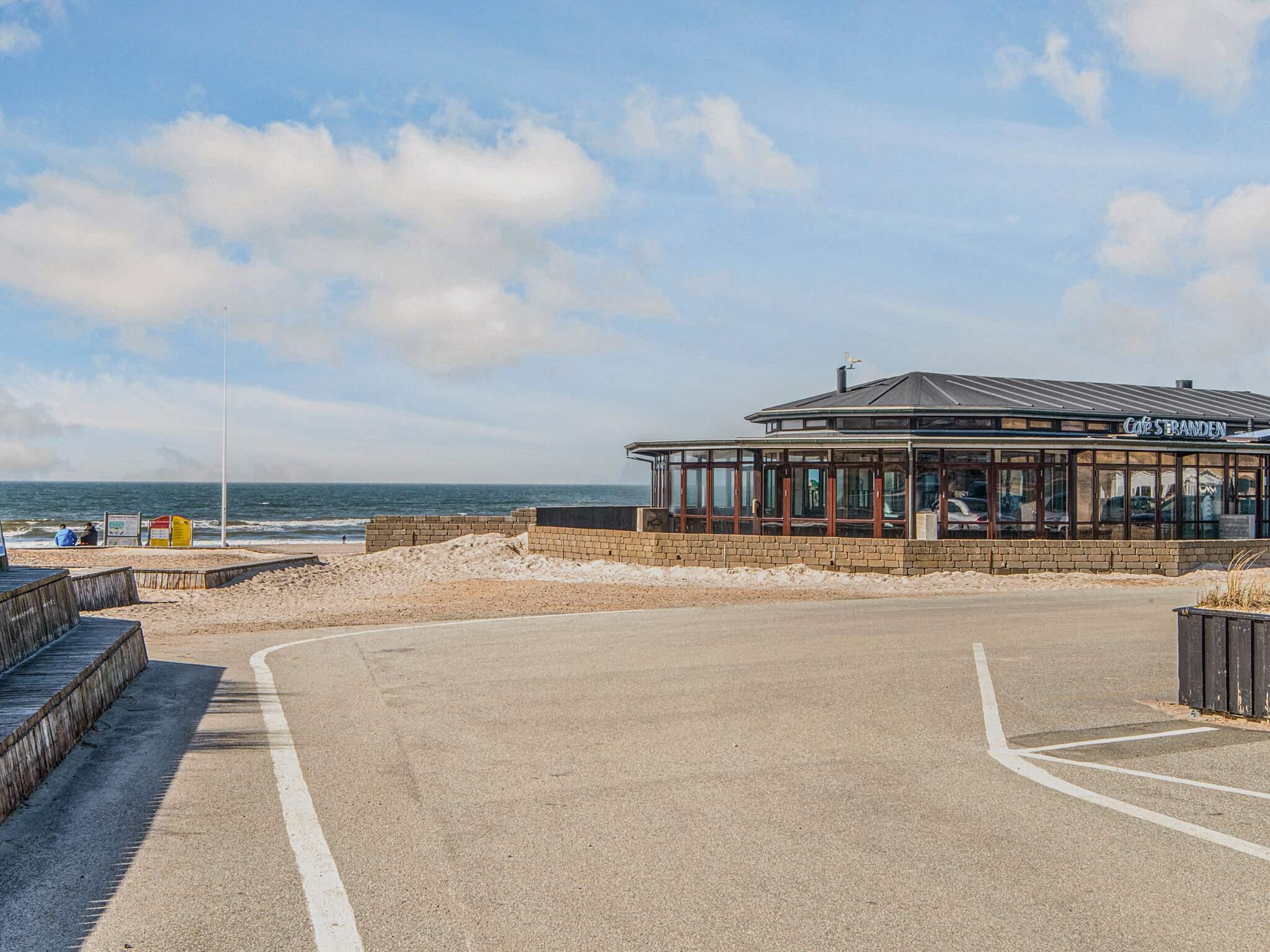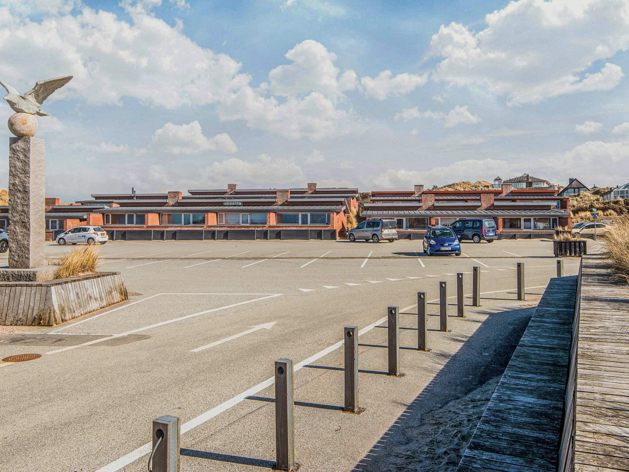 Rækkehus med sauna og udsigt til vand og strand ved Henne i yderste klitrække. Huset er gennemrenoveret i 2021 med nyt, moderne køkken med opvaskemaskine, nyt badeværelse, nye senge og møbler overalt, det hele i gennemført lækre materialer og stil. Der er opsat luft/luft varmepumpe. Der er køkken, spise- og opholdstue i et, badeværelse med gulvvarme, 2 soverum og separat sauna. Det ene soverum er udstyret med en dobbeltseng, mens det andet er udstyret med en enkeltseng og en køjeseng til 2 personer. Huset er bl.a. udstyret med brændeovn, dvd og tv. Fra opholdsstuen er der panoramavinduer og udgang til husets vestvendte terrasse med udsigt til vandet og Henne strand. Der er meget gode parkeringsforhold.
