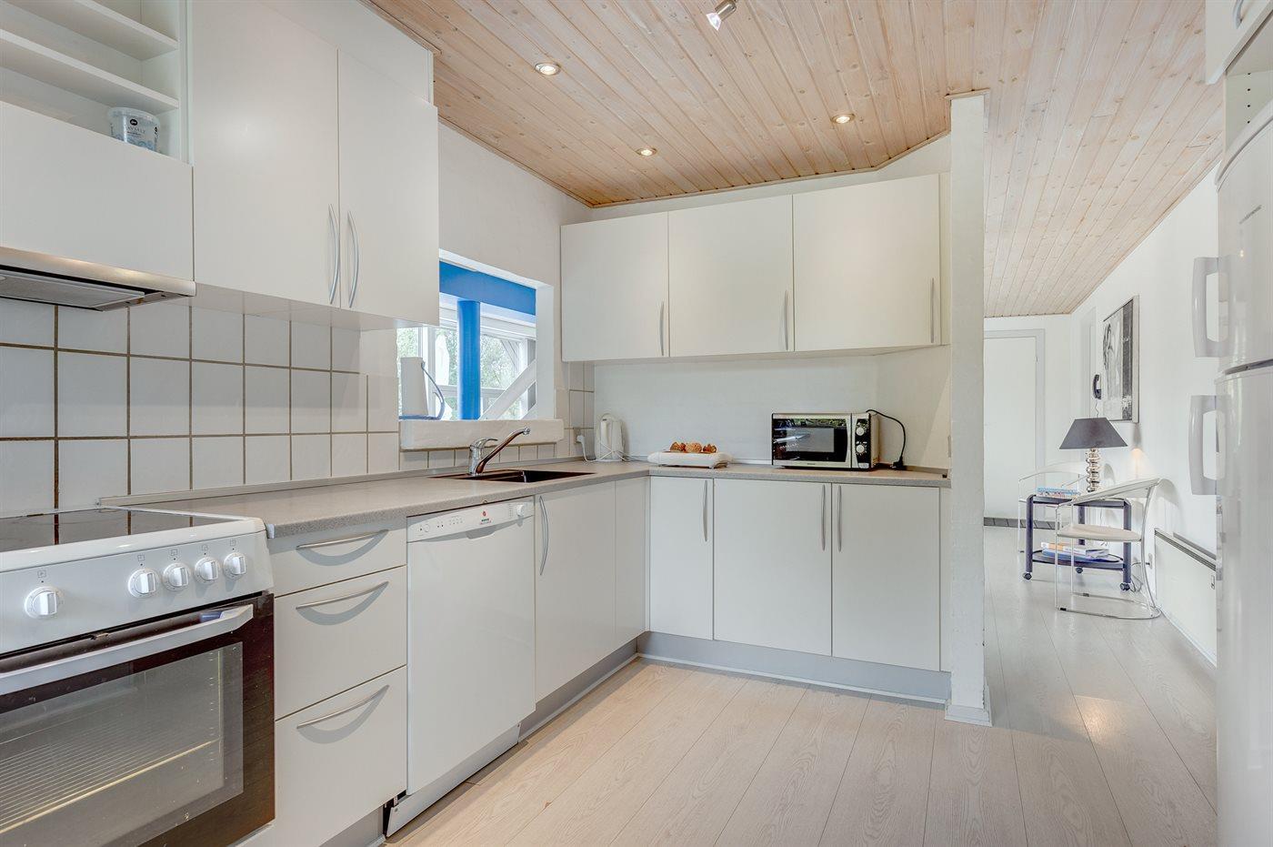 Køkkenet er bl.a. udstyret med fryser, mikrobølgeovn og opvaskemaskine. Opholdsstuen indeholder brændeovn, stereoradio, TV og video. På 1. findes der 8 sovepladser. De øvrige sovepladser fordeler sig på 3 værelser i husets stueetage; 2 med dobbeltseng og 1 med 2 enkeltsenge.