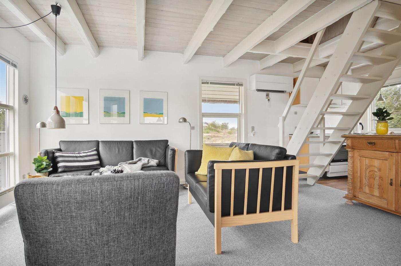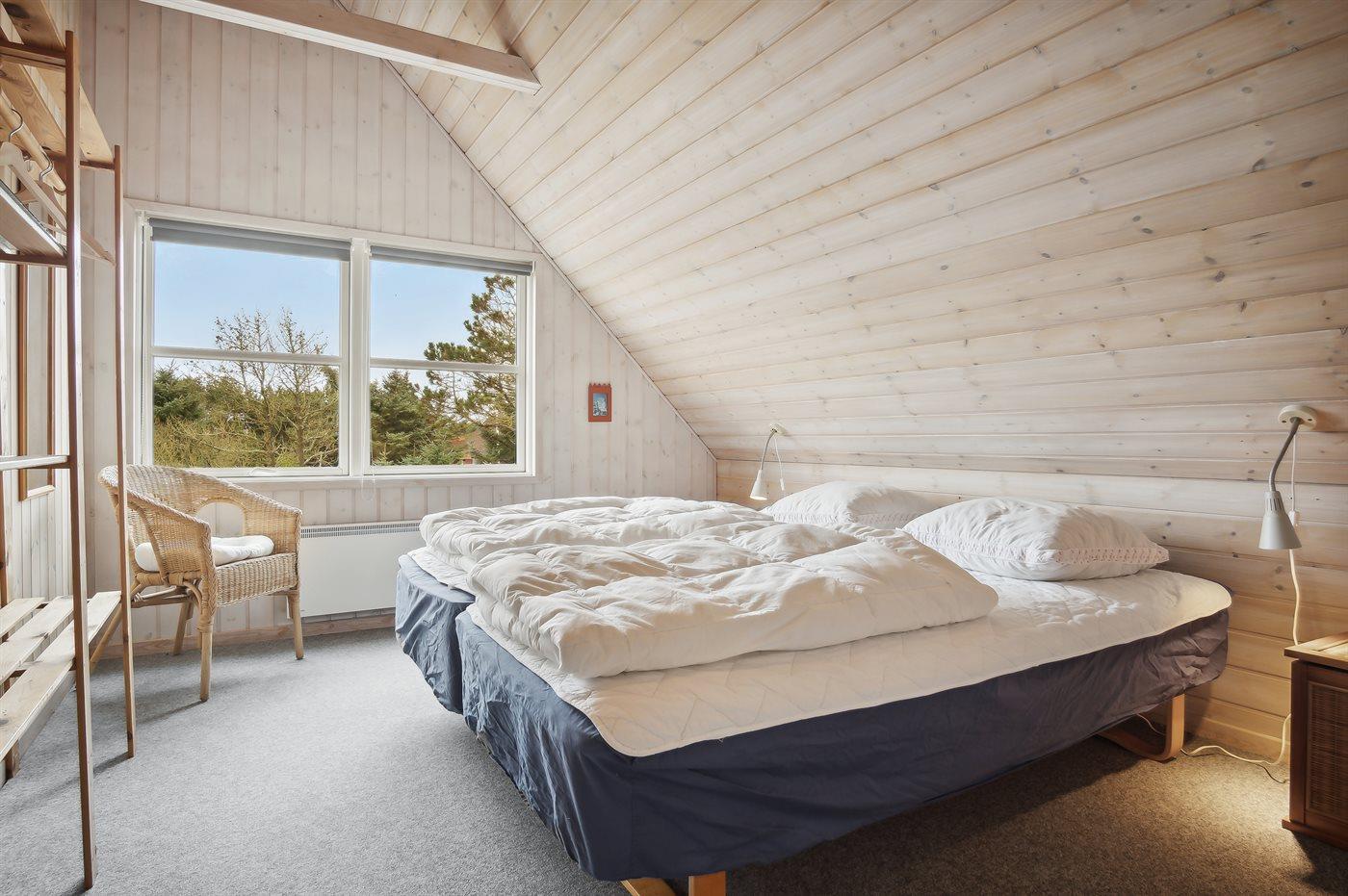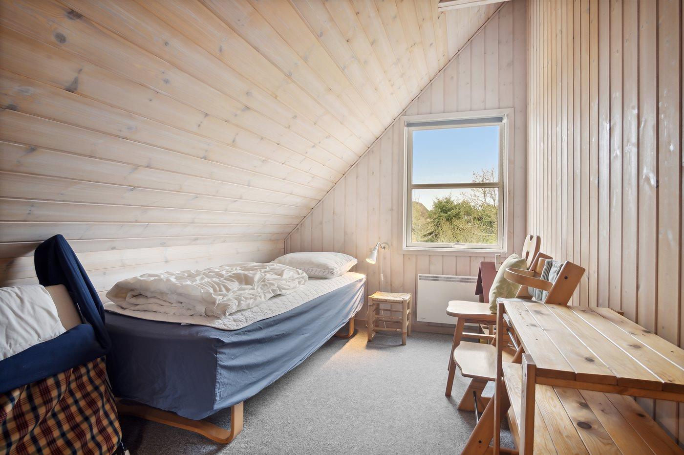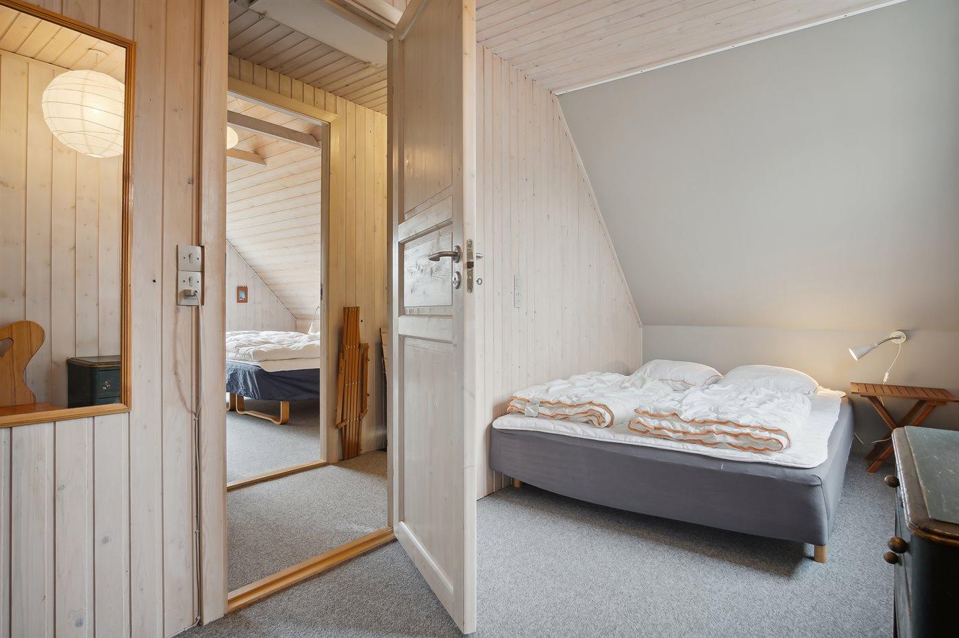 Der er i alt 3 soveværelser. Sovepladserne fordeler sig på: 2 sovepladser i dobbeltseng. 3 sovepladser i enkeltsenge. Derudover er der 1 stk. barneseng.