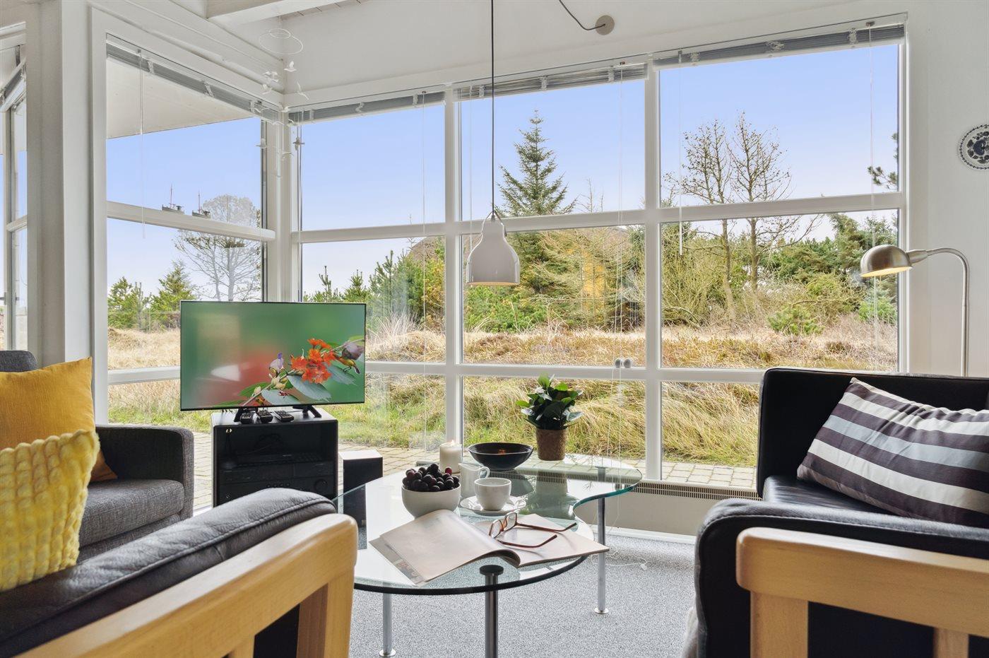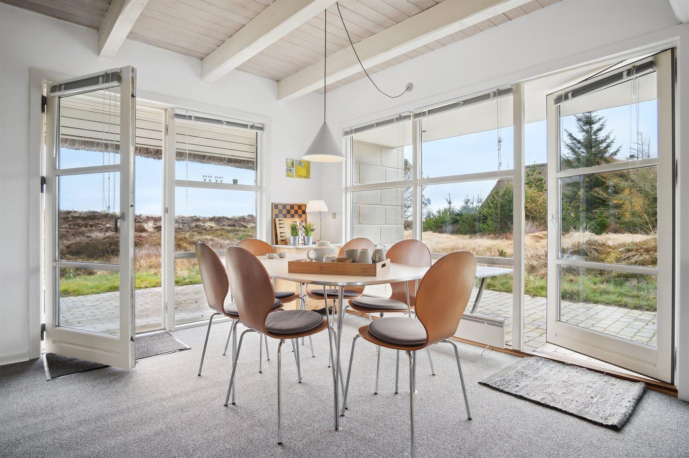 Her bor I i rolige og naturskønne omgivelser på en stor naturgrund med træer, hvor huset med sine store vinduespartier lukker både lyset og landskabet helt ind. Uanset om I opholder jer i stuen eller ved spisebordet, er naturen konstant nærværende og skaber en særlig ro og forbindelse til omgivelserne.
