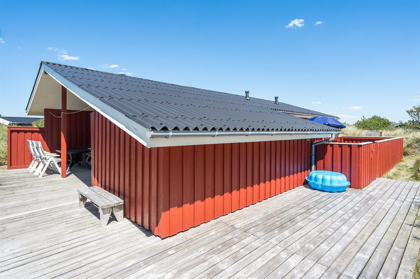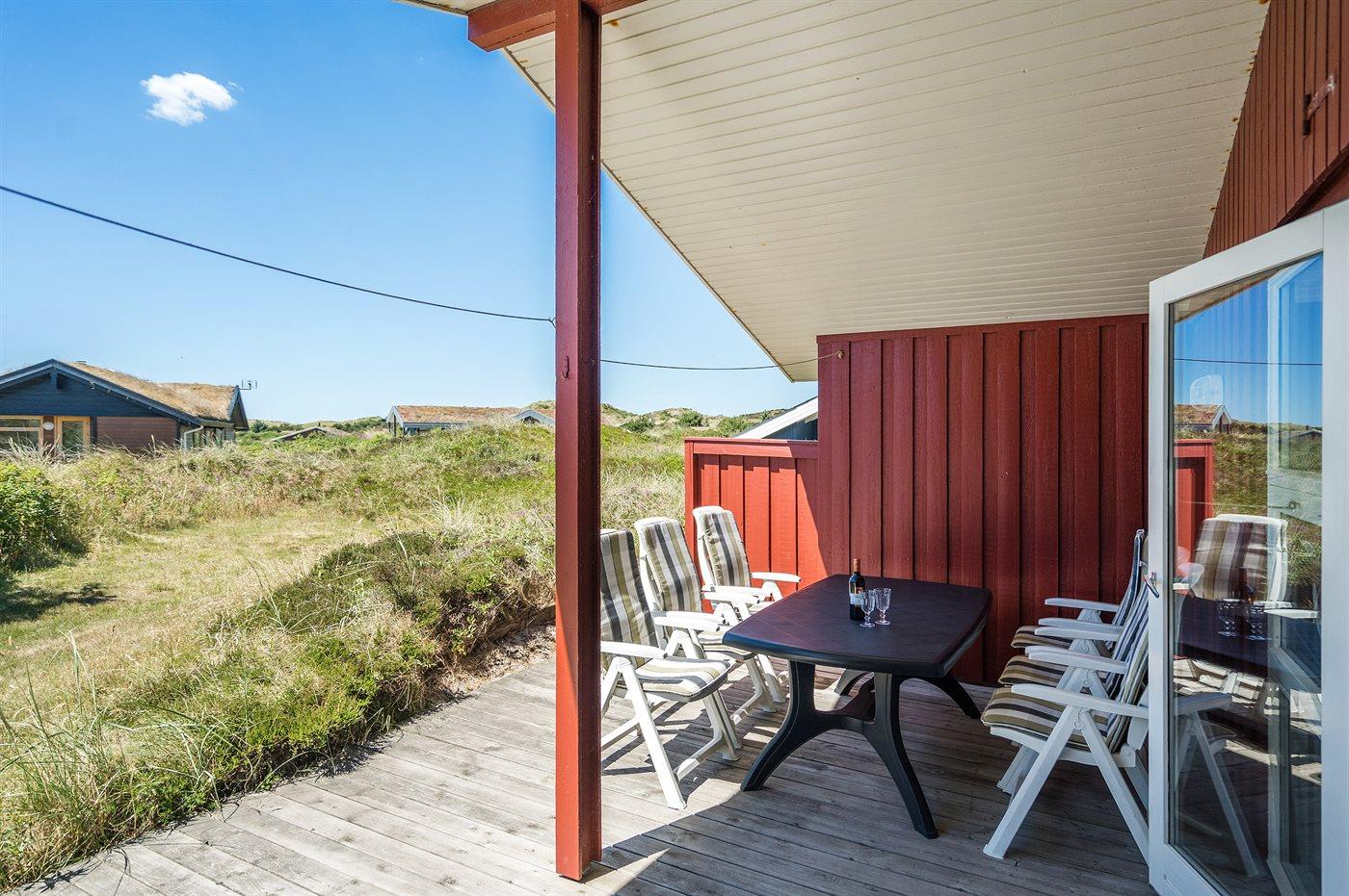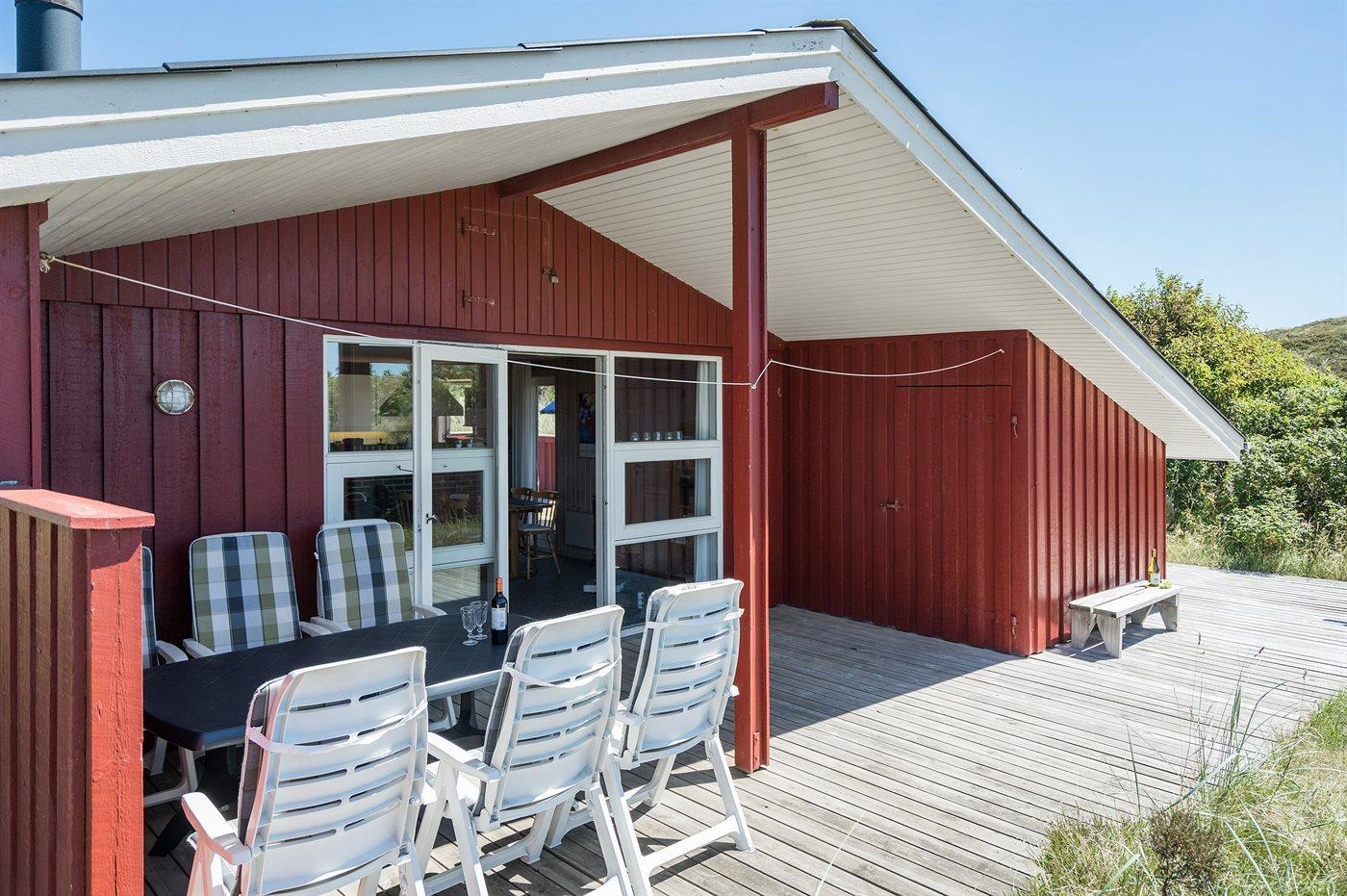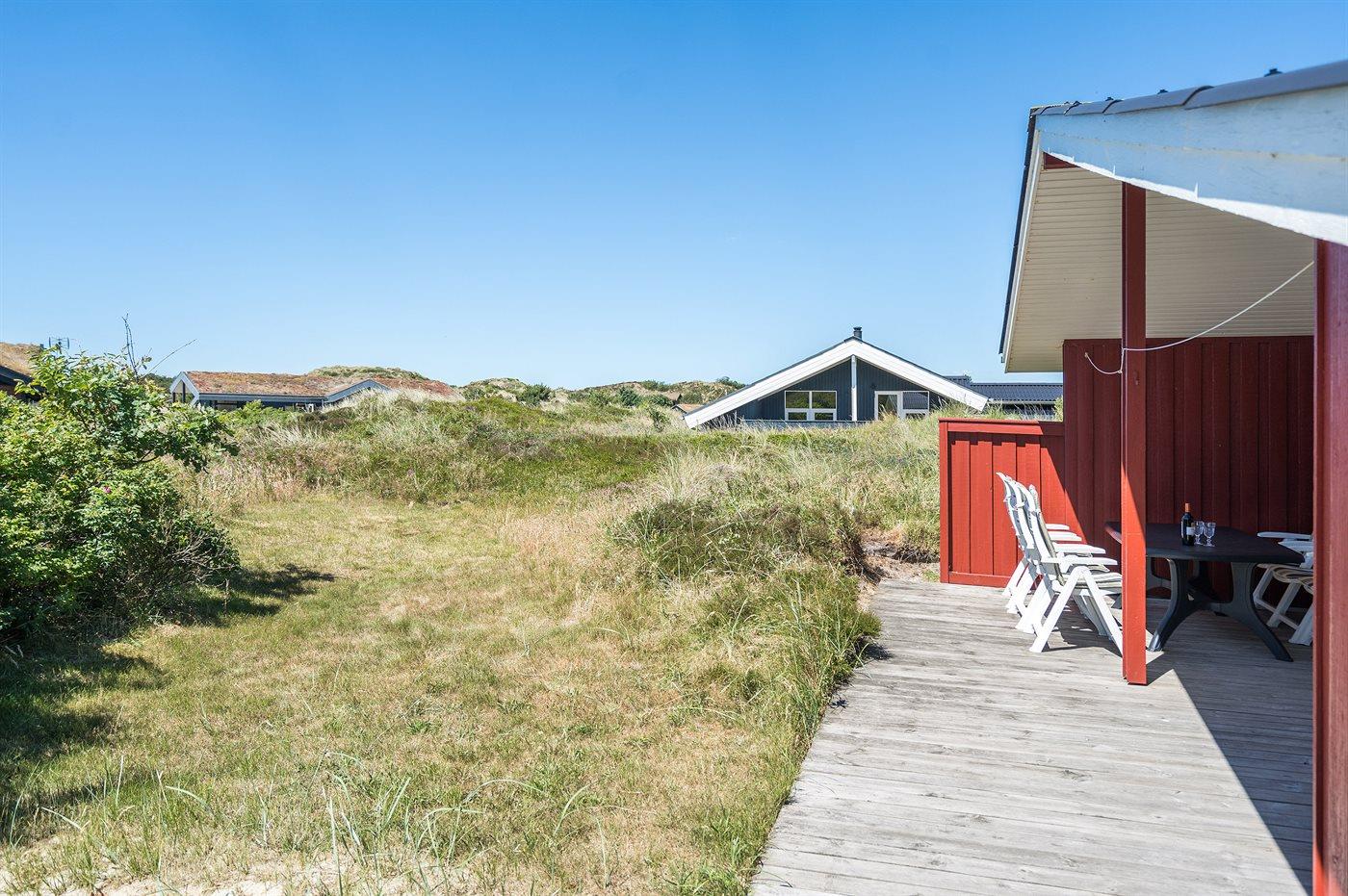 Ferieboligen er beliggende på en 1549 m² stor klitgrund. Der er 800 m til havet. Nærmeste forretning er beliggende i en afstand af 1800 m. Til ferieboligen hører 62 m² terrasseareal. Desuden er der 15 m² overdækket terrasse. Heraf i alt 32 m² lukket terrasse. Der er redskabsrum. Gynge. Sandkasse. Parkering ved ferieboligen.