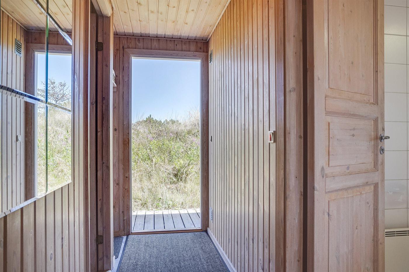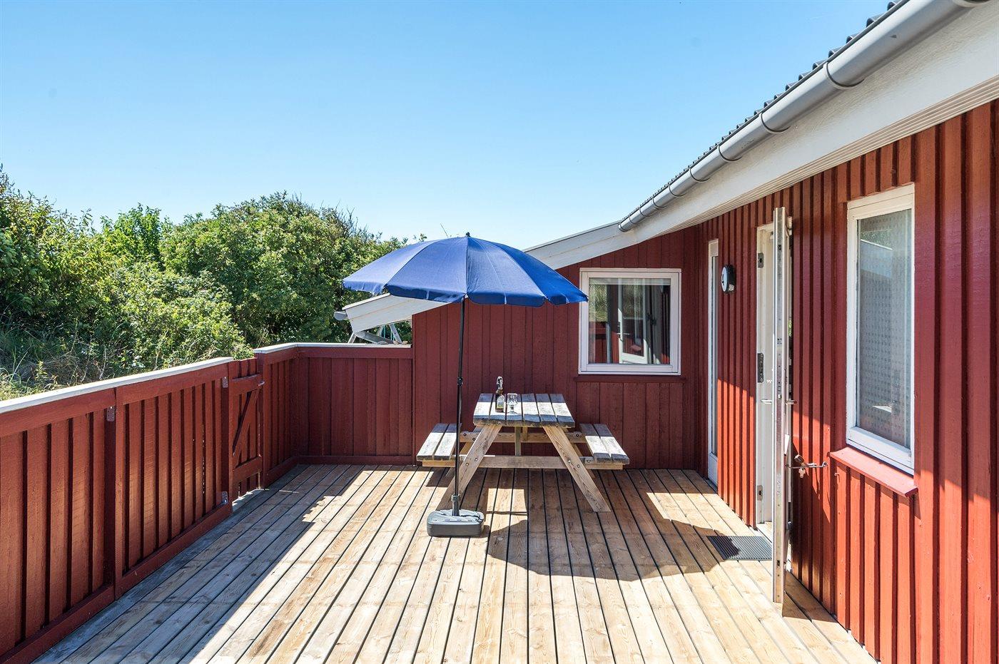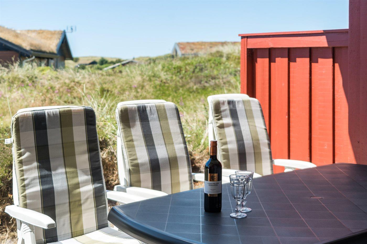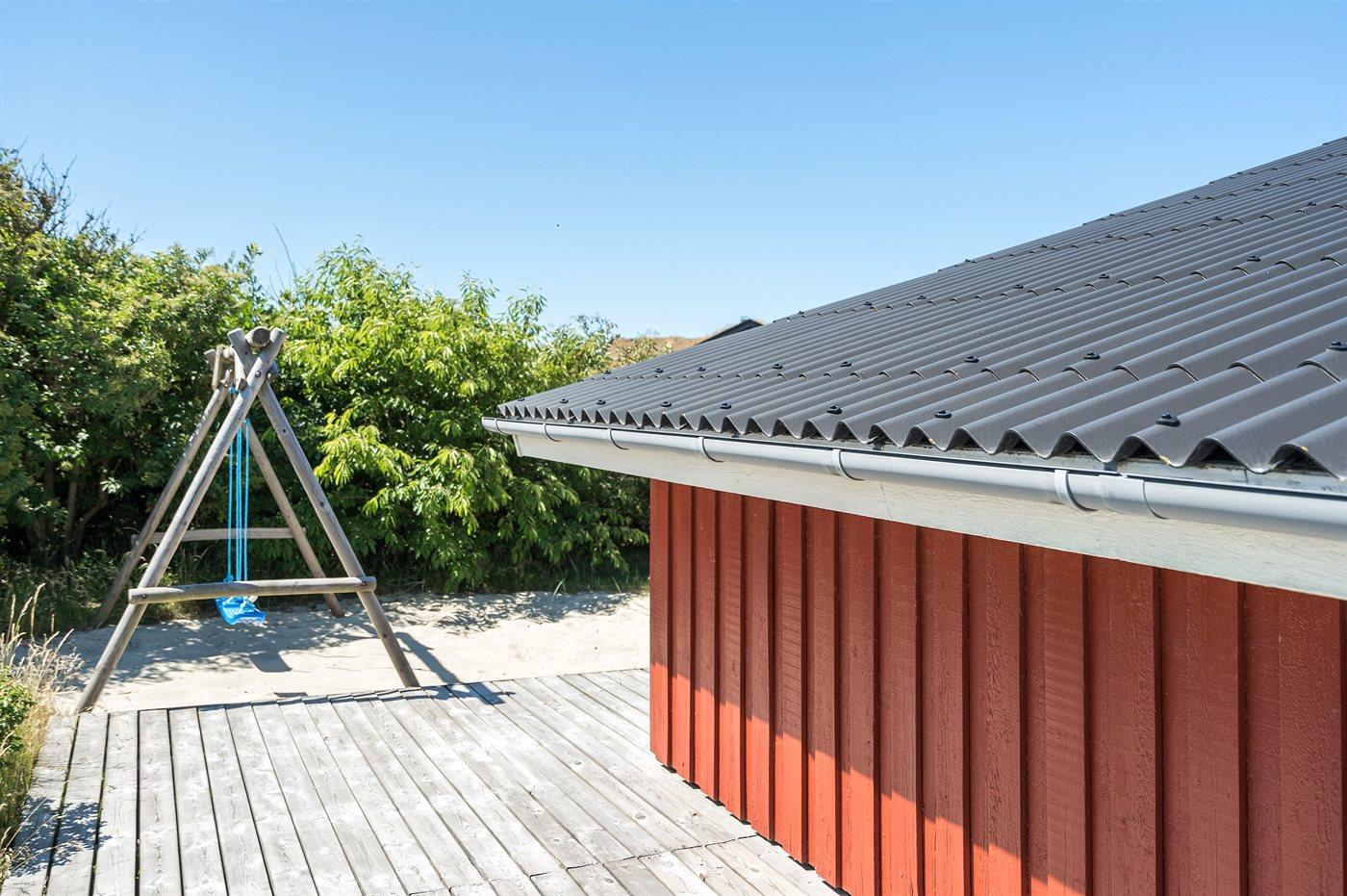 Ferieboligen er beliggende på en 1549 m² stor klitgrund. Der er 800 m til havet. Nærmeste forretning er beliggende i en afstand af 1800 m. Til ferieboligen hører 62 m² terrasseareal. Desuden er der 15 m² overdækket terrasse. Heraf i alt 32 m² lukket terrasse. Der er redskabsrum. Gynge. Sandkasse. Parkering ved ferieboligen.