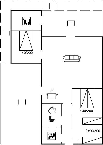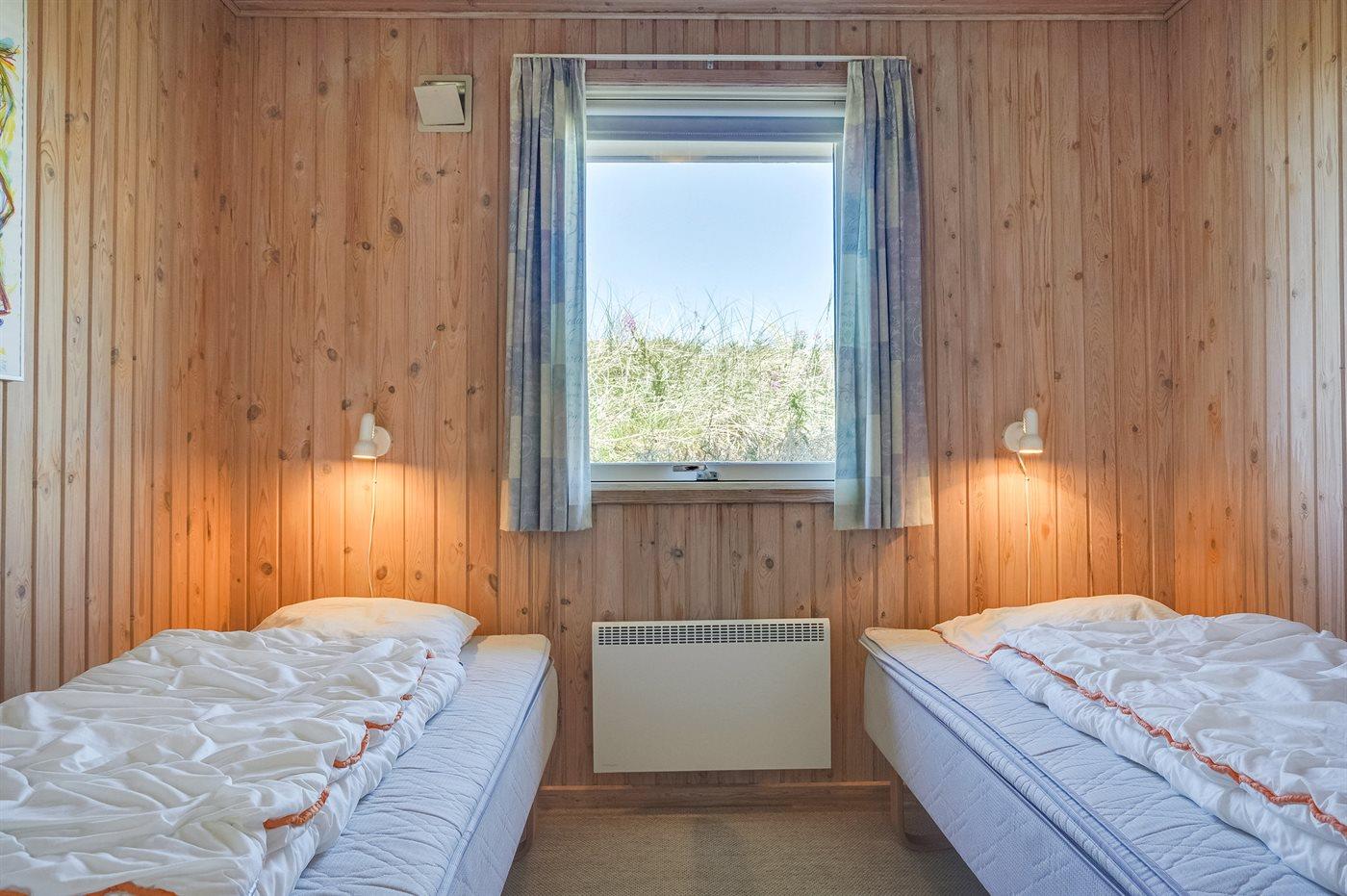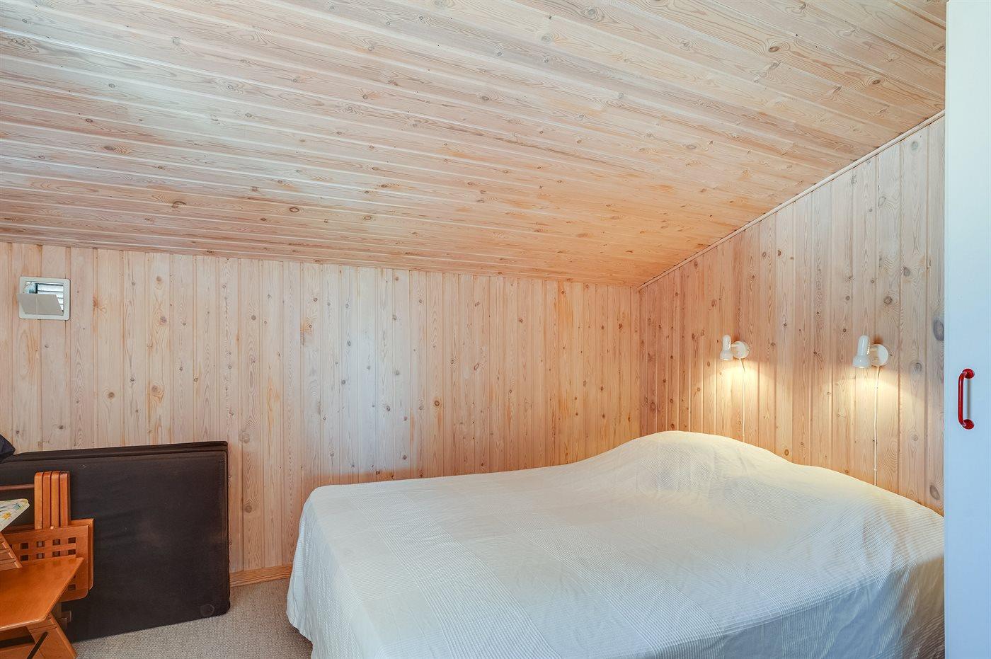 Der er i alt 3 soveværelser. Sovepladserne fordeler sig på: 4 sovepladser i dobbeltsenge. 2 sovepladser i enkeltsenge. Derudover er der 1 stk. barneseng.