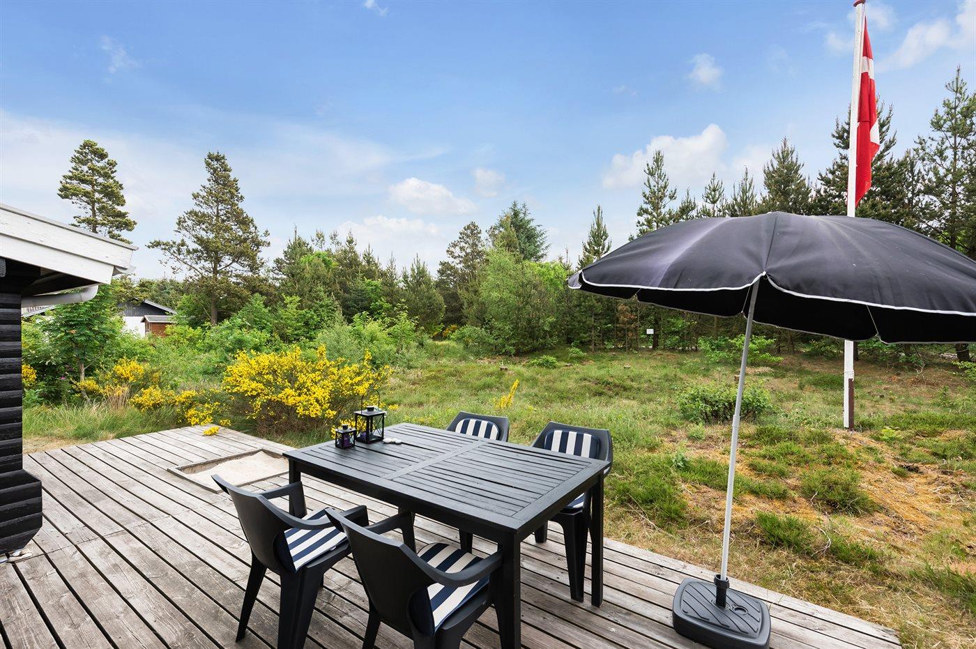 Charmerende sommerhus i Henne med stor naturgrund og flere terrasser til afslapning.