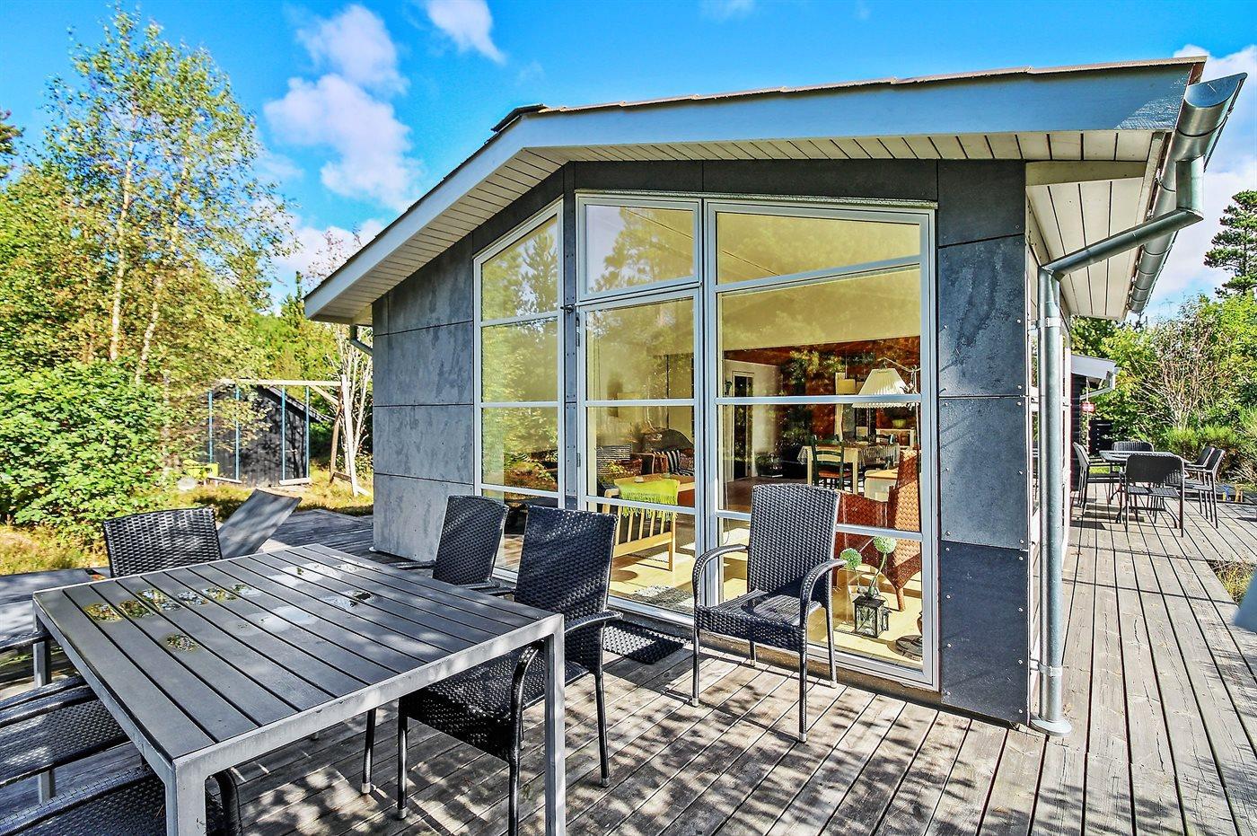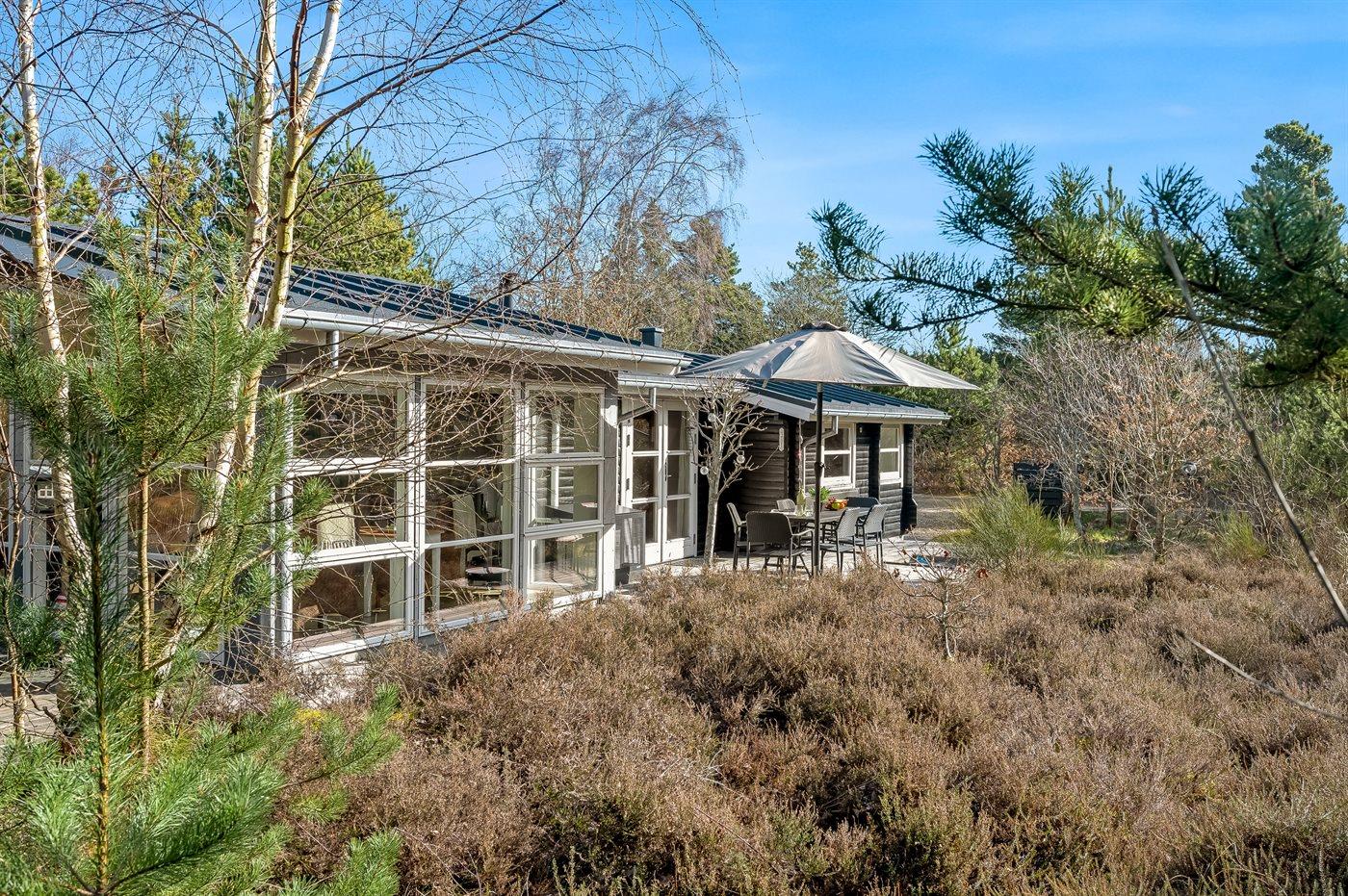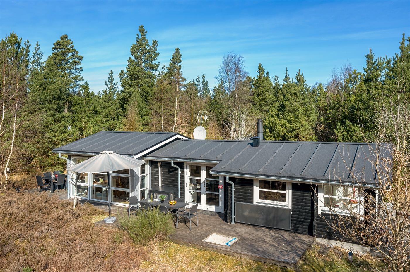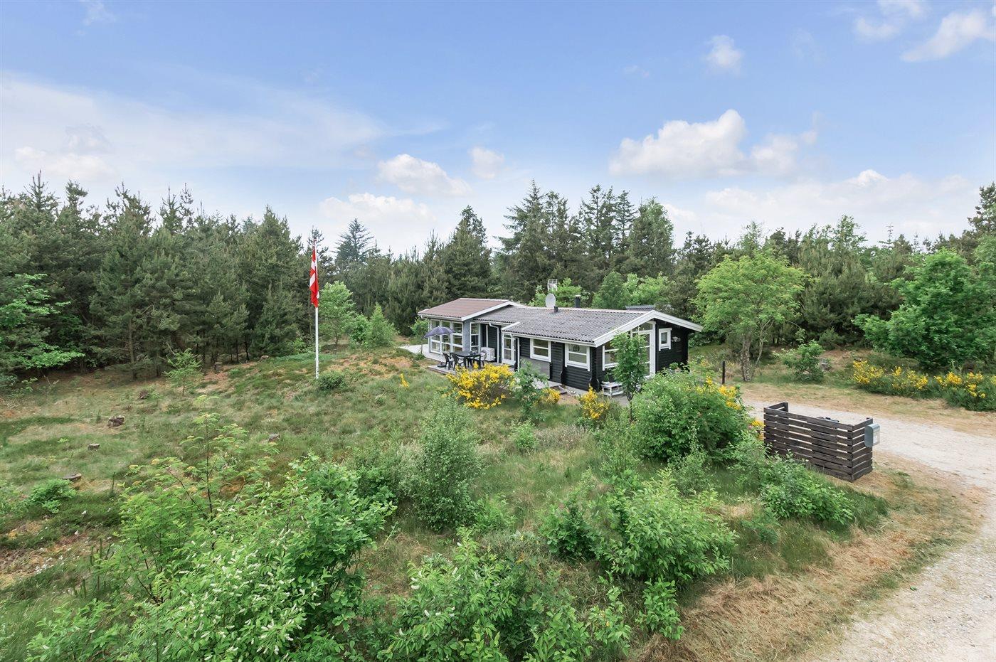 Et dejligt sommerhus beliggende på en stor naturgrund. Til huset hører flere åbne terrasser og havemøbler. Et sommerhus med en dejlig beliggenhed og et godt udgangspunkt for en afslappende ferie.