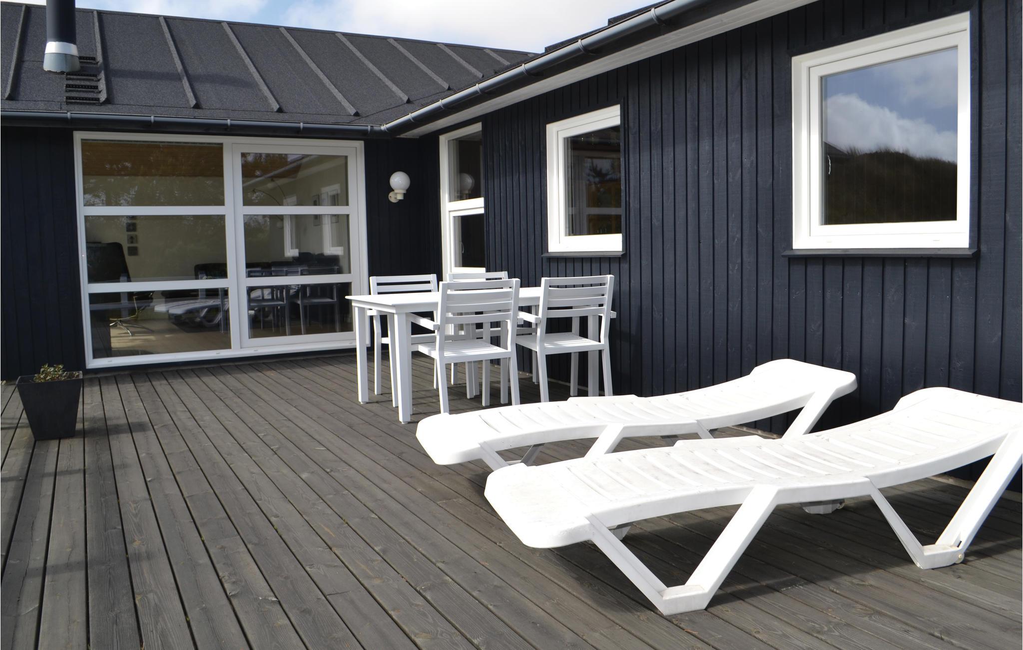 Skønt feriehus tæt på Henne Strand med stor terrasse, sauna, spabad og gåafstand til badeland og strand.