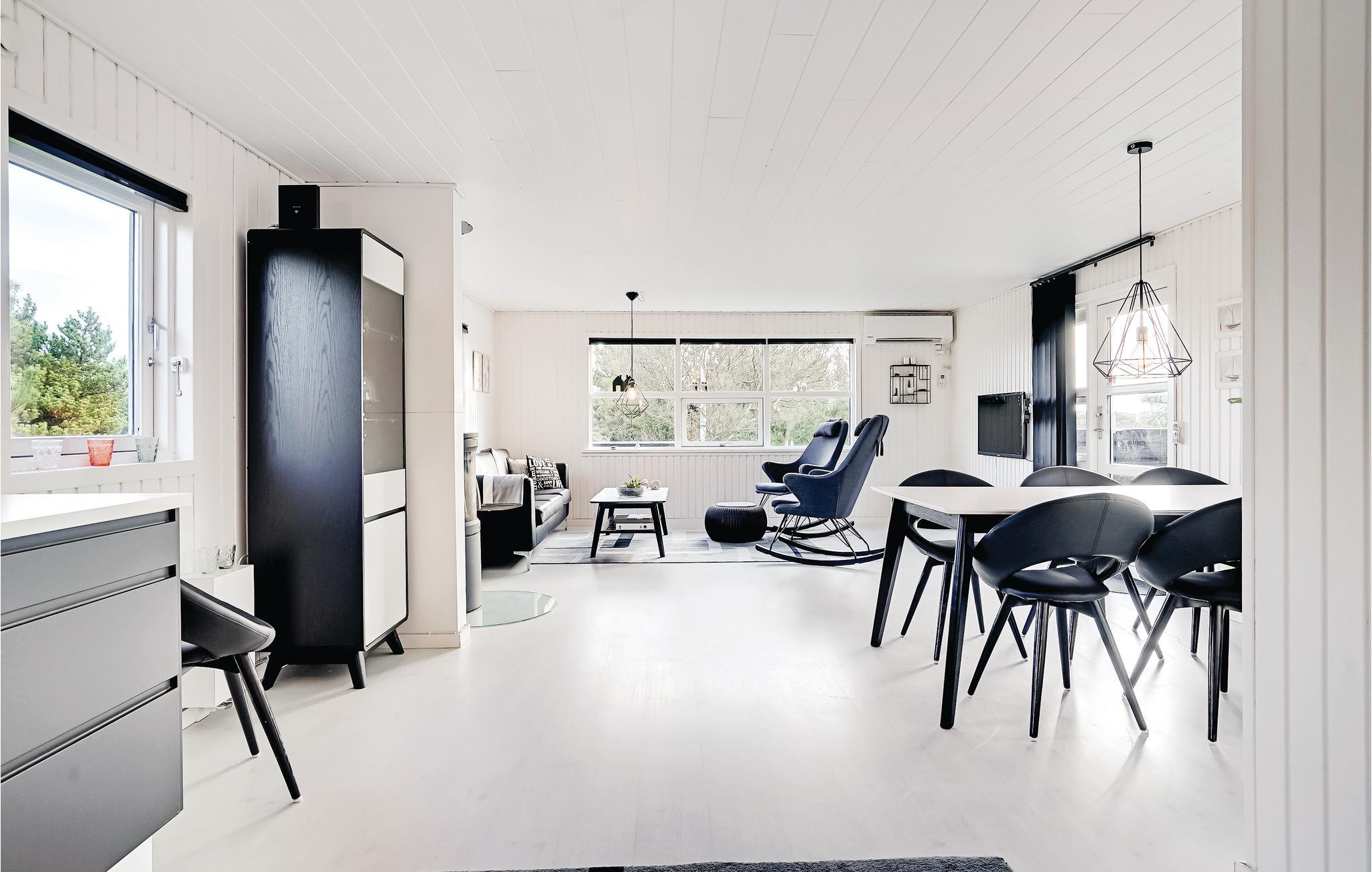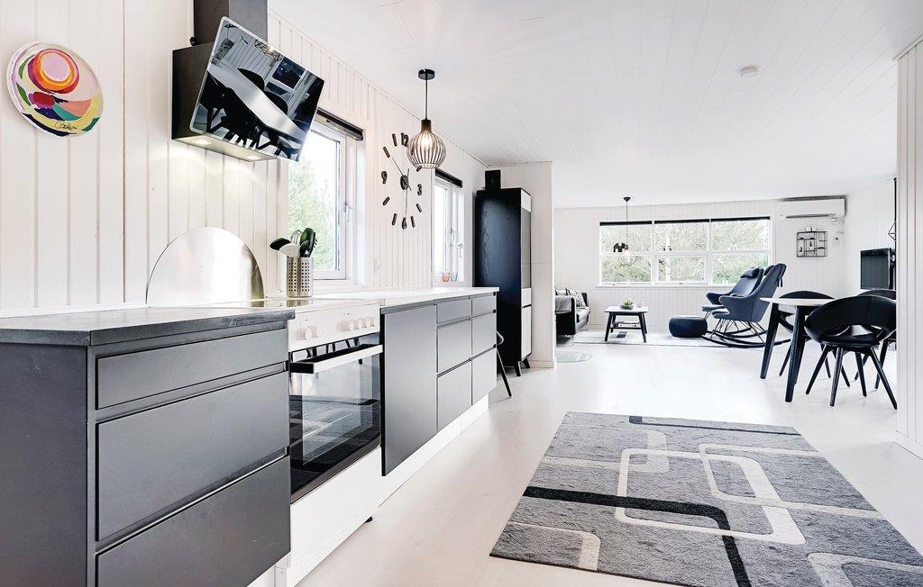 Rigtig flot, gennemrenoveret feriehus beliggende på en attraktiv, kuperet klitgrund med lyngplanter. Huset fremtræder lyst og venligt med et funktionelt køkken/alrum udstyret med en hyggeskabende brændeovn. I badeværelset står det lækre spabad, og herfra er der ligeledes adgang til saunaen. Omkring huset har I rig mulighed for at finde læ på en af terrasserne.