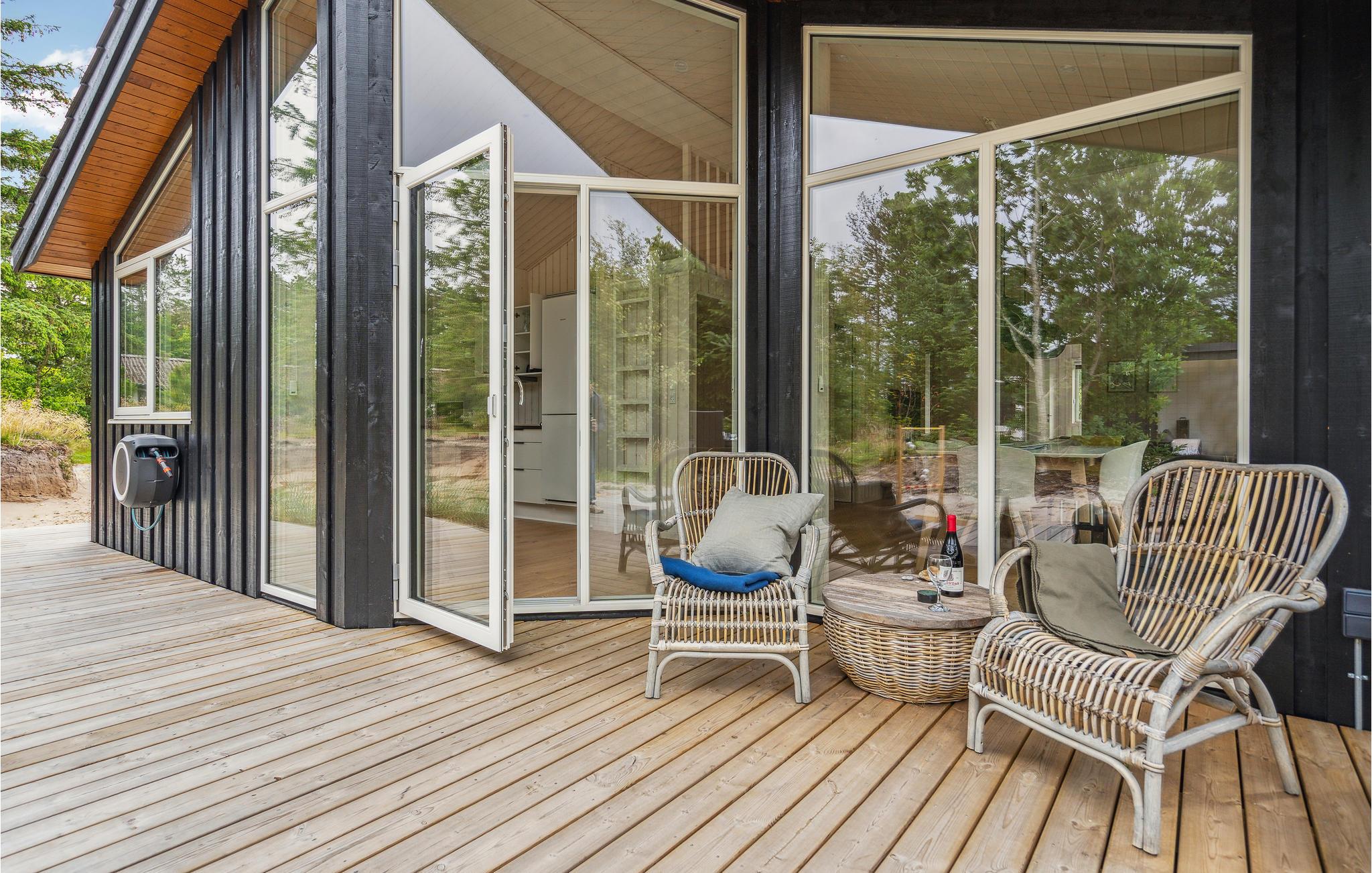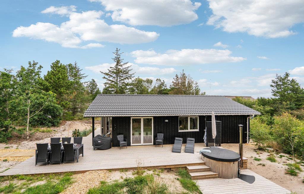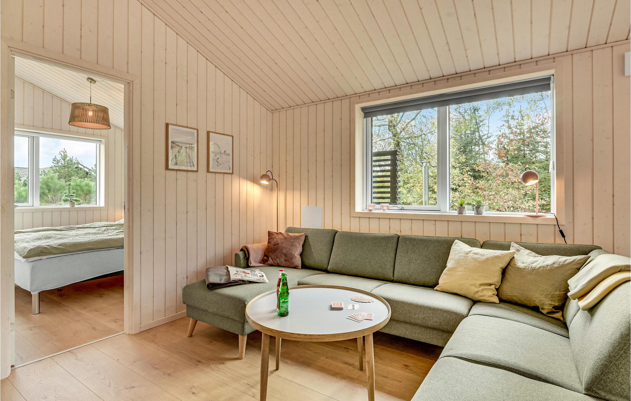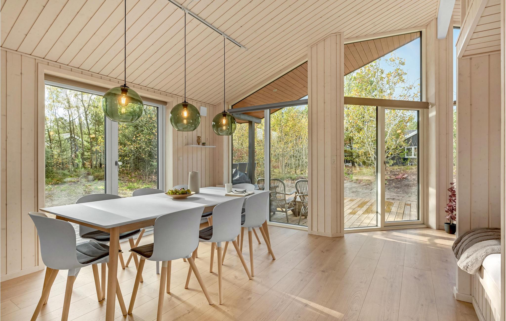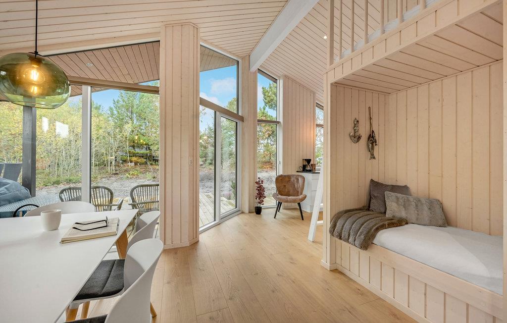 Få kilometer fra Vesterhavet ligger dette skønne, lyse feriehus i grønne rammer. Her venter der høj komfort og lækre faciliteter, så feriestemningen indfinder sig hurtigt. Sæt jer til rette med en god bog i opholdsstuen eller nyd udsigten til fuglelivet med en kop kaffe. Når I skal spise, kan I dække op ved spisebordet og senere kan I spille brætspil med børnene i sofahjørnet.