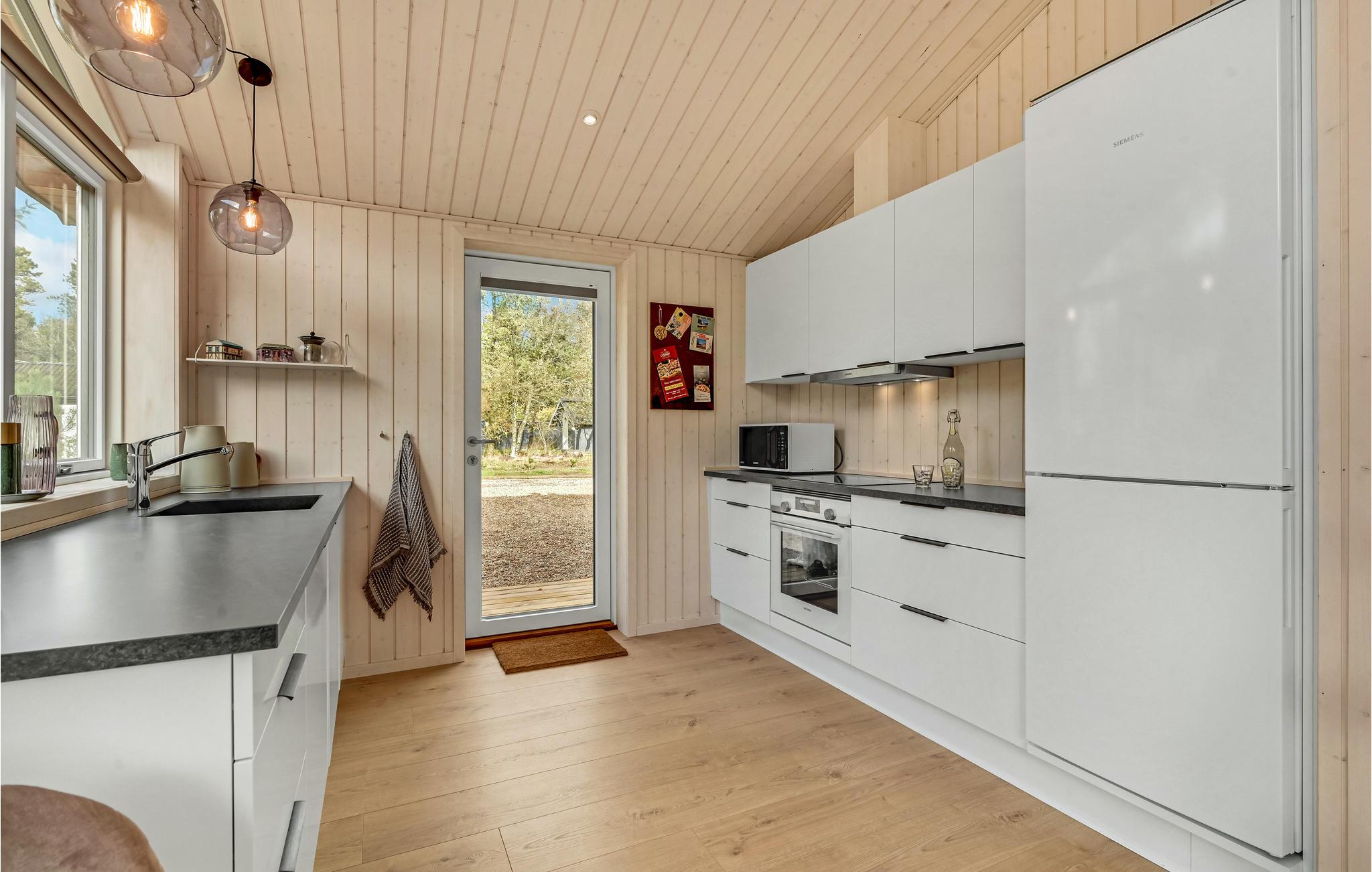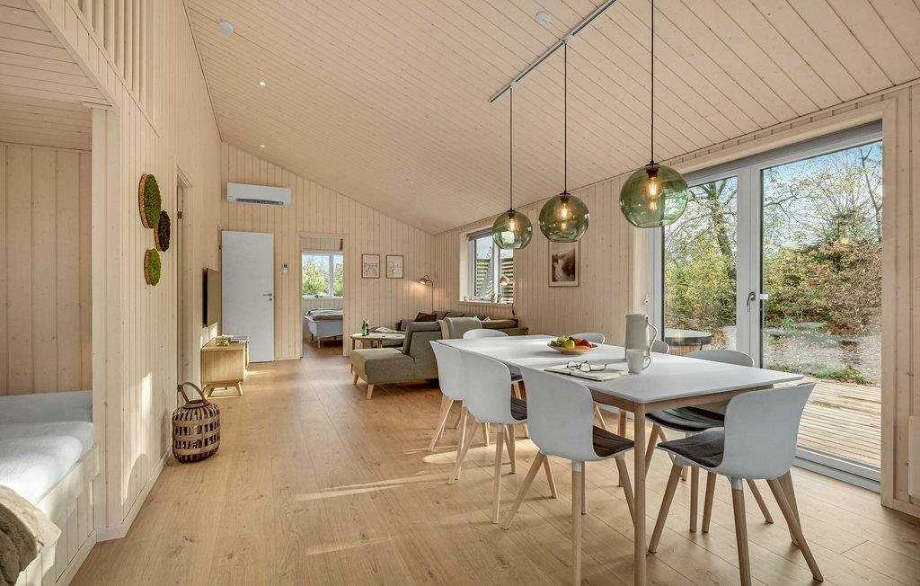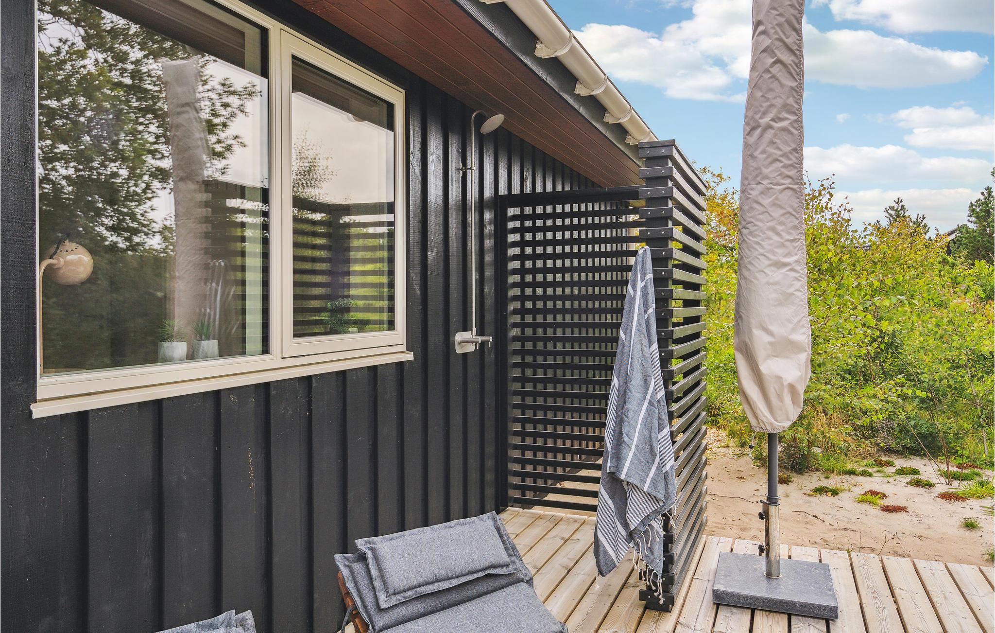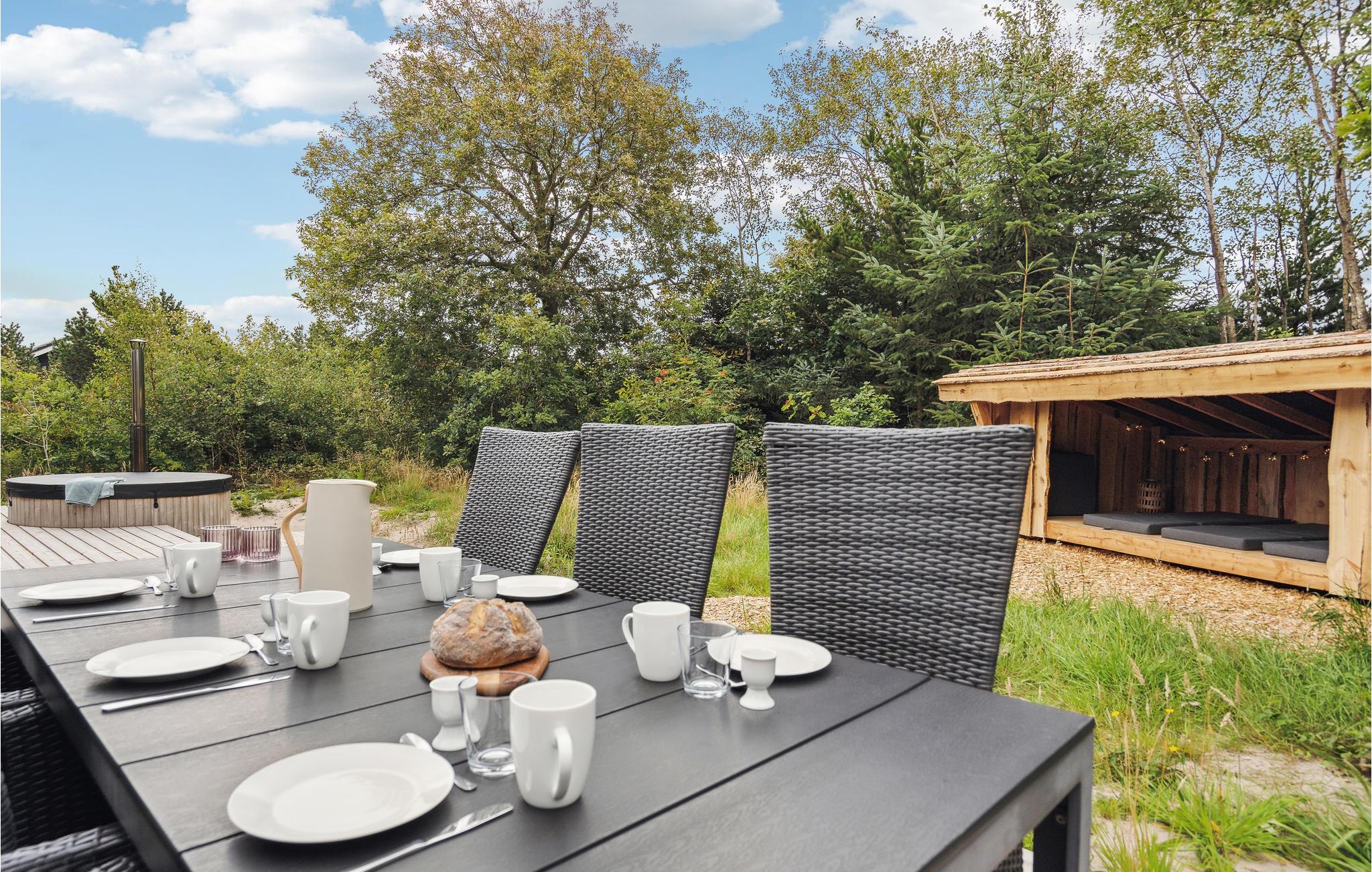 Få kilometer fra Vesterhavet ligger dette skønne, lyse feriehus i grønne rammer. Her venter der høj komfort og lækre faciliteter, så feriestemningen indfinder sig hurtigt. Sæt jer til rette med en god bog i opholdsstuen eller nyd udsigten til fuglelivet med en kop kaffe. Når I skal spise, kan I dække op ved spisebordet og senere kan I spille brætspil med børnene i sofahjørnet.