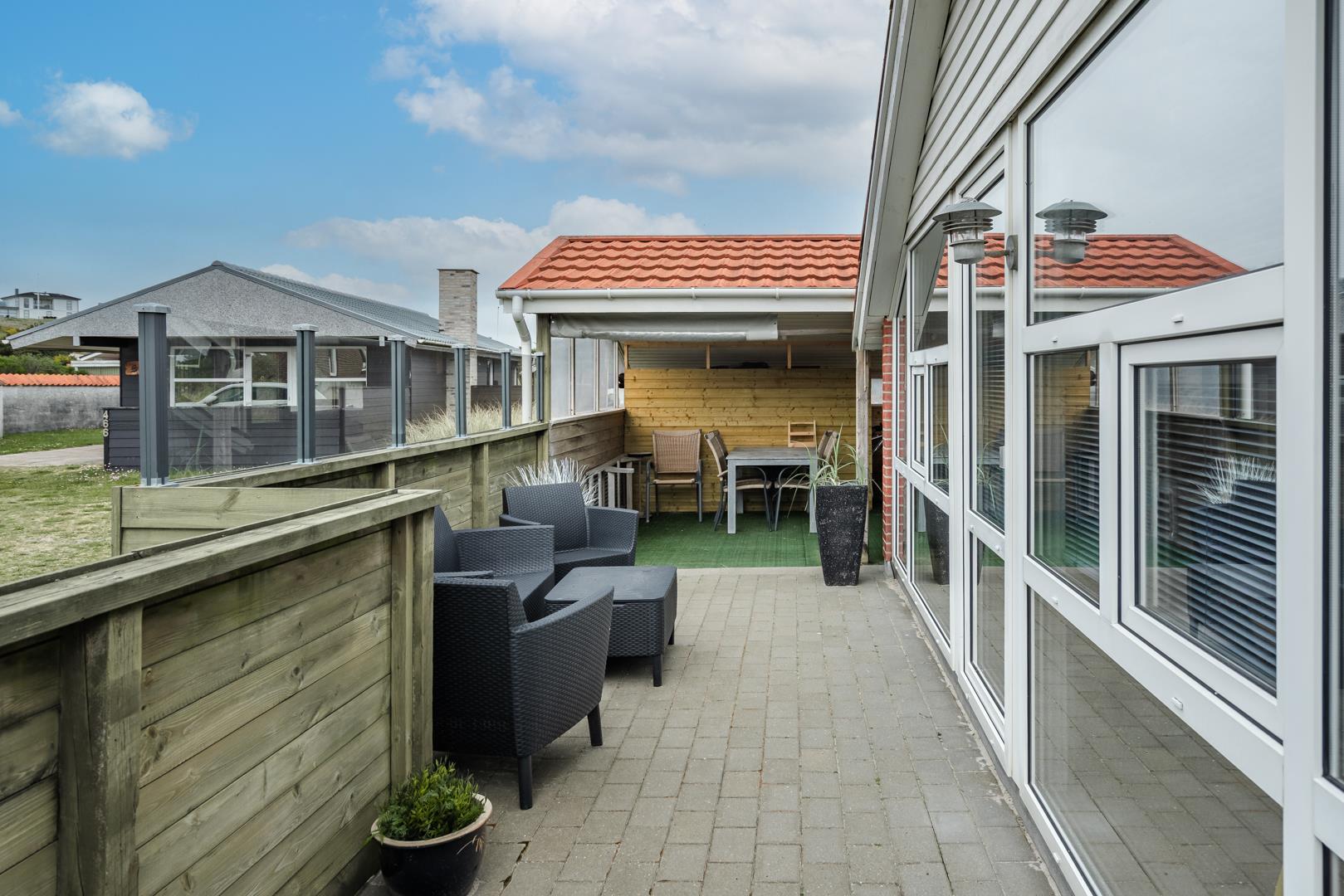 Sommerhuset har skøn lukket terrasse omkring huset, hvor af en er overdækket.