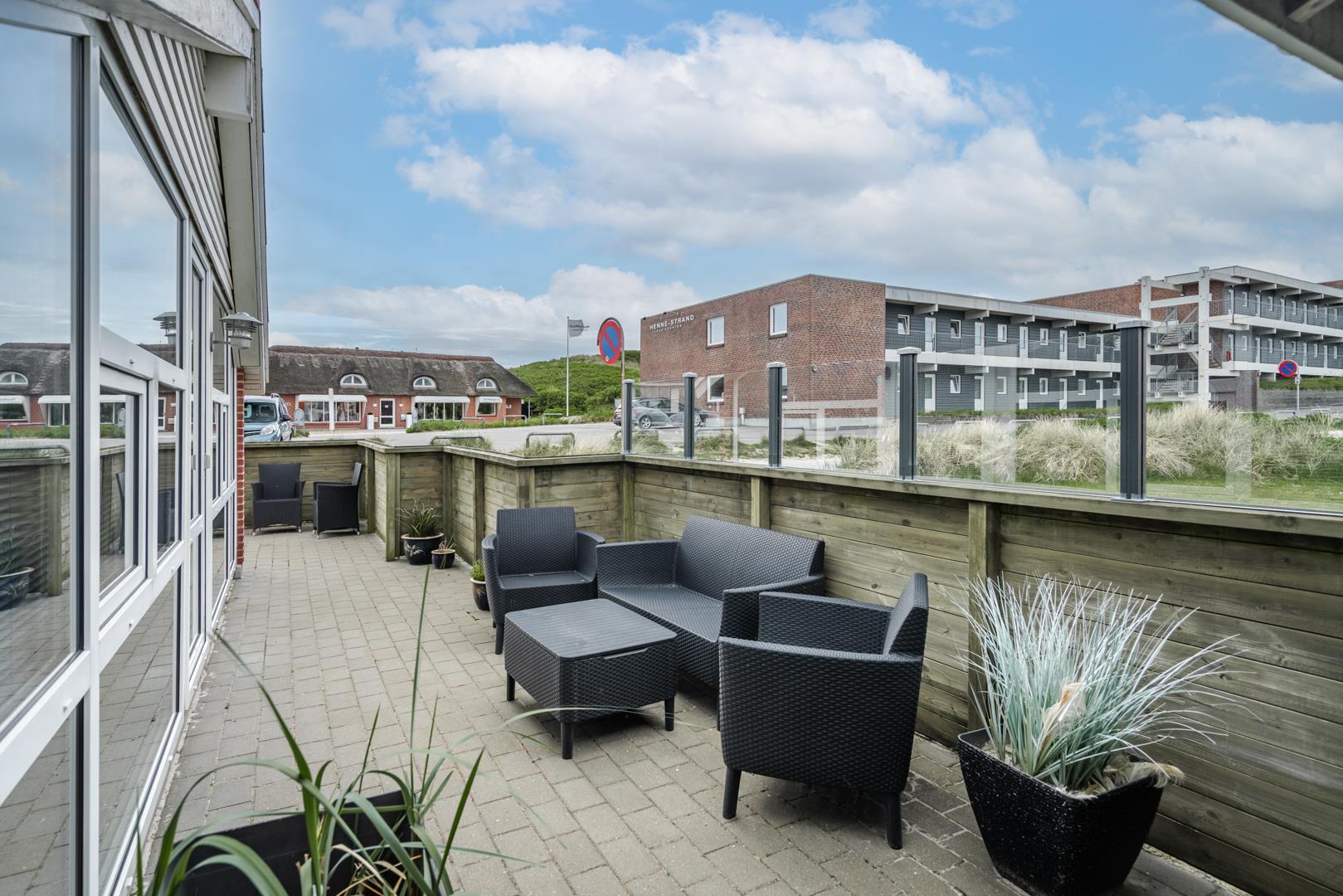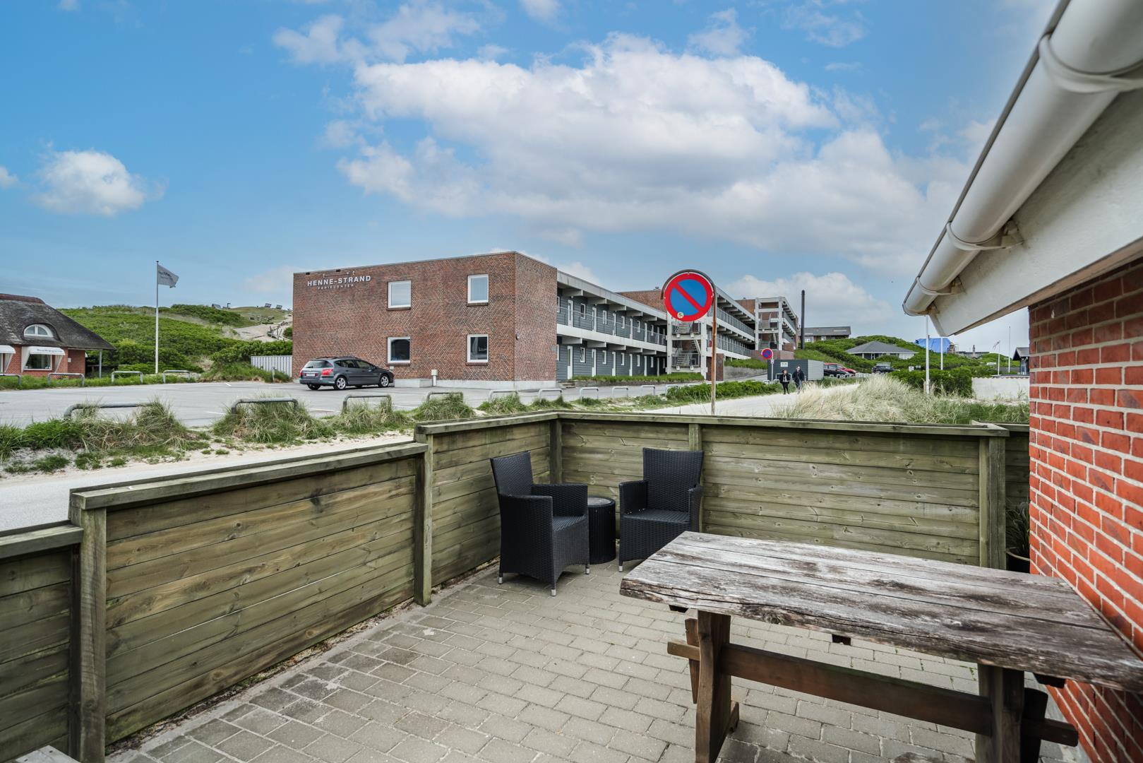 Hyggeligt sommerhus i Henne Strand med lukket terrasse og kort afstand til strand og byliv.