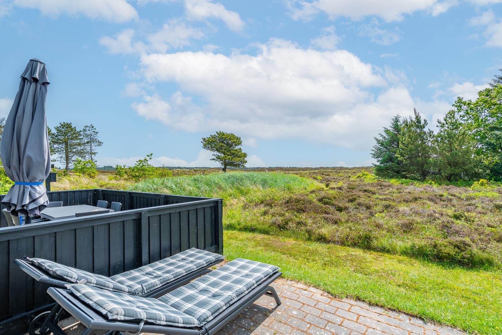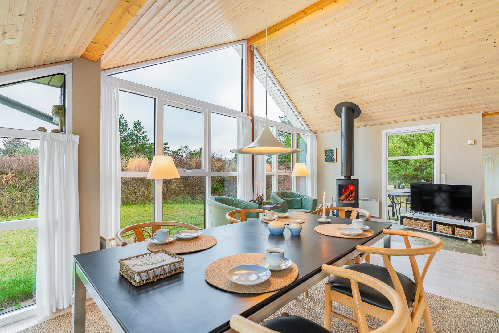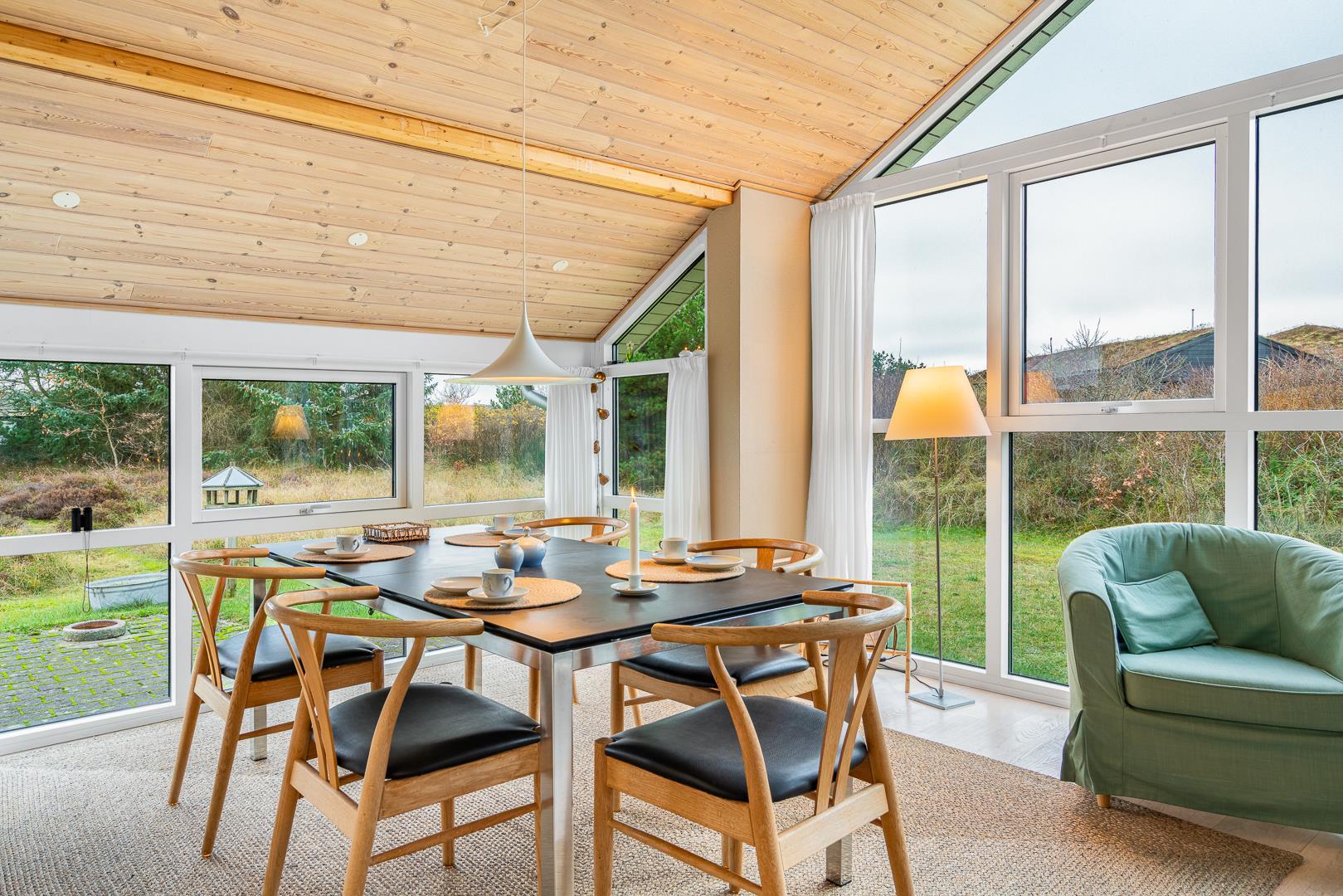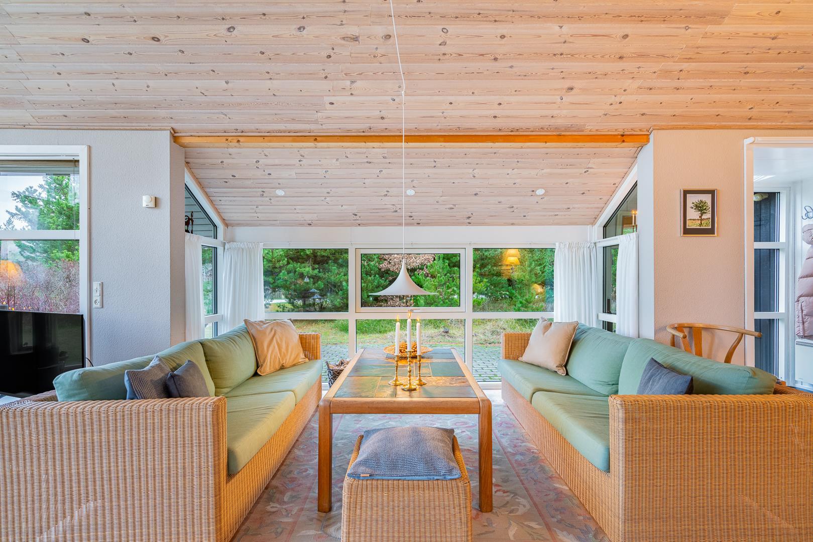 Hyggeligt sommerhus ved Henne Strand med sauna, brændeovn og stor naturgrund tæt på strand og indkøb.