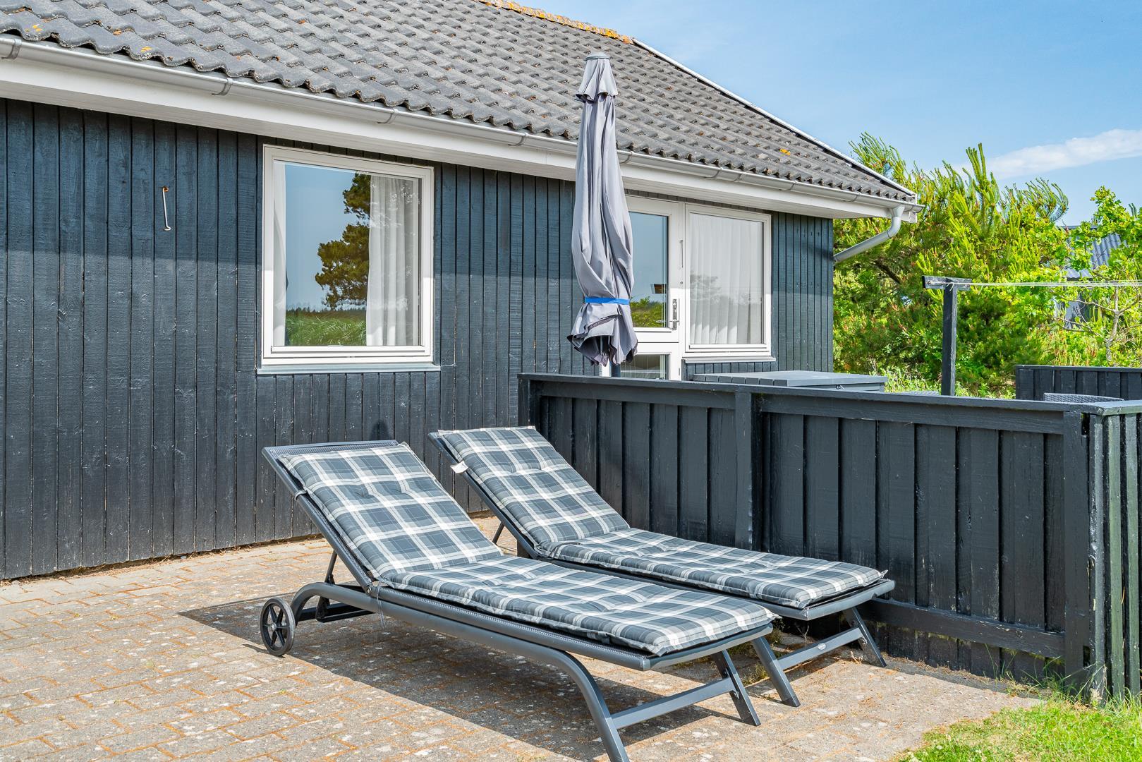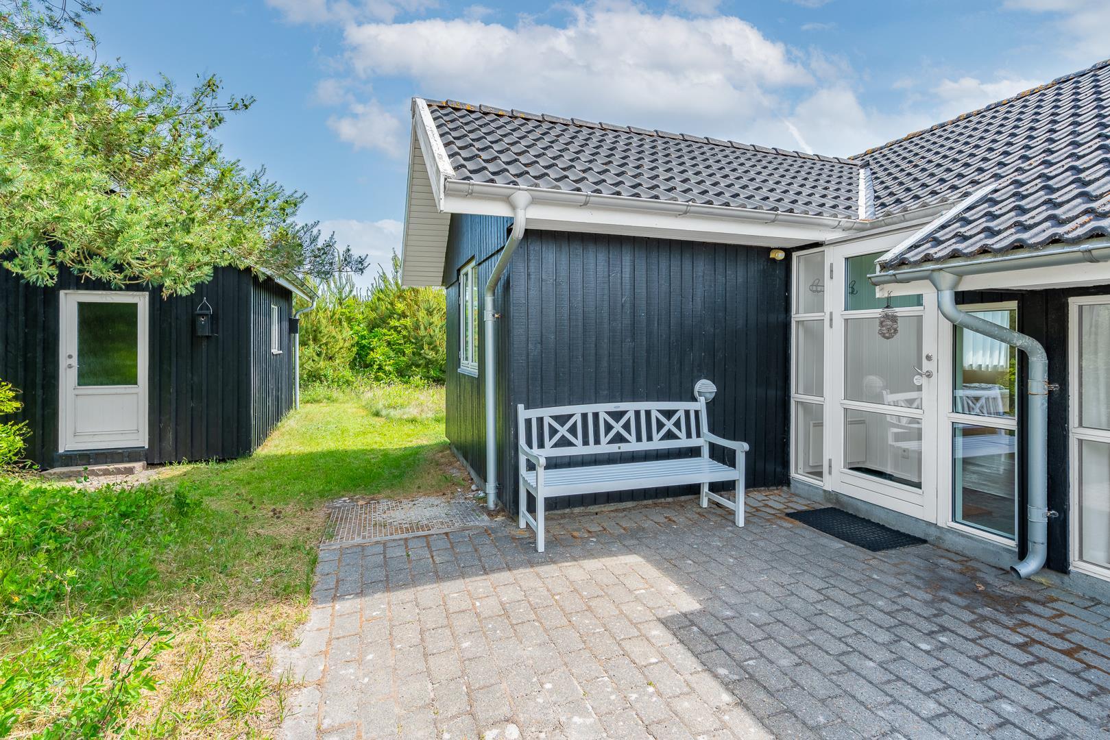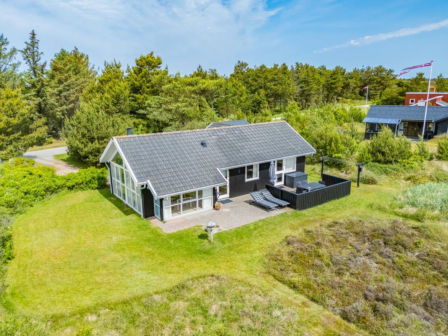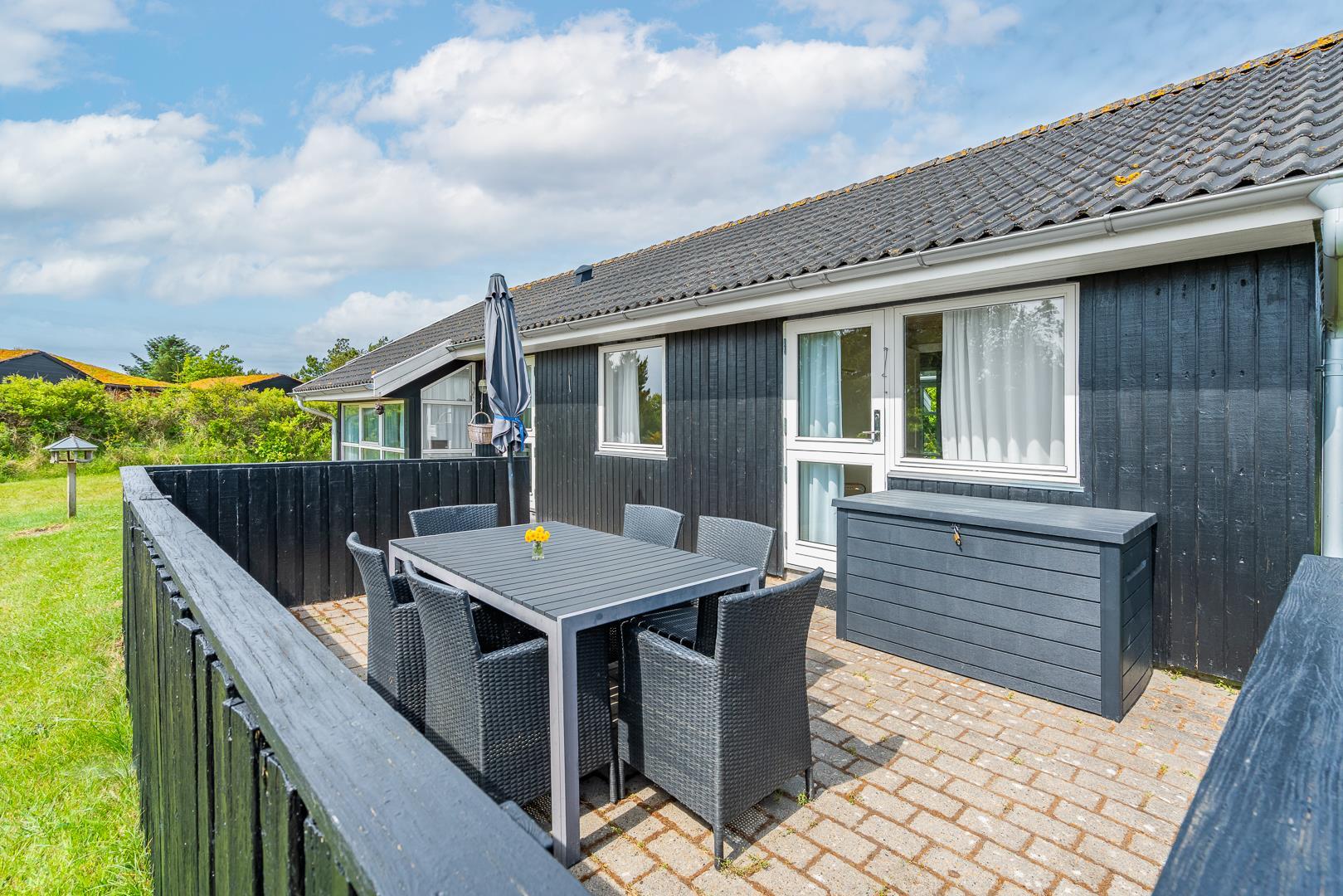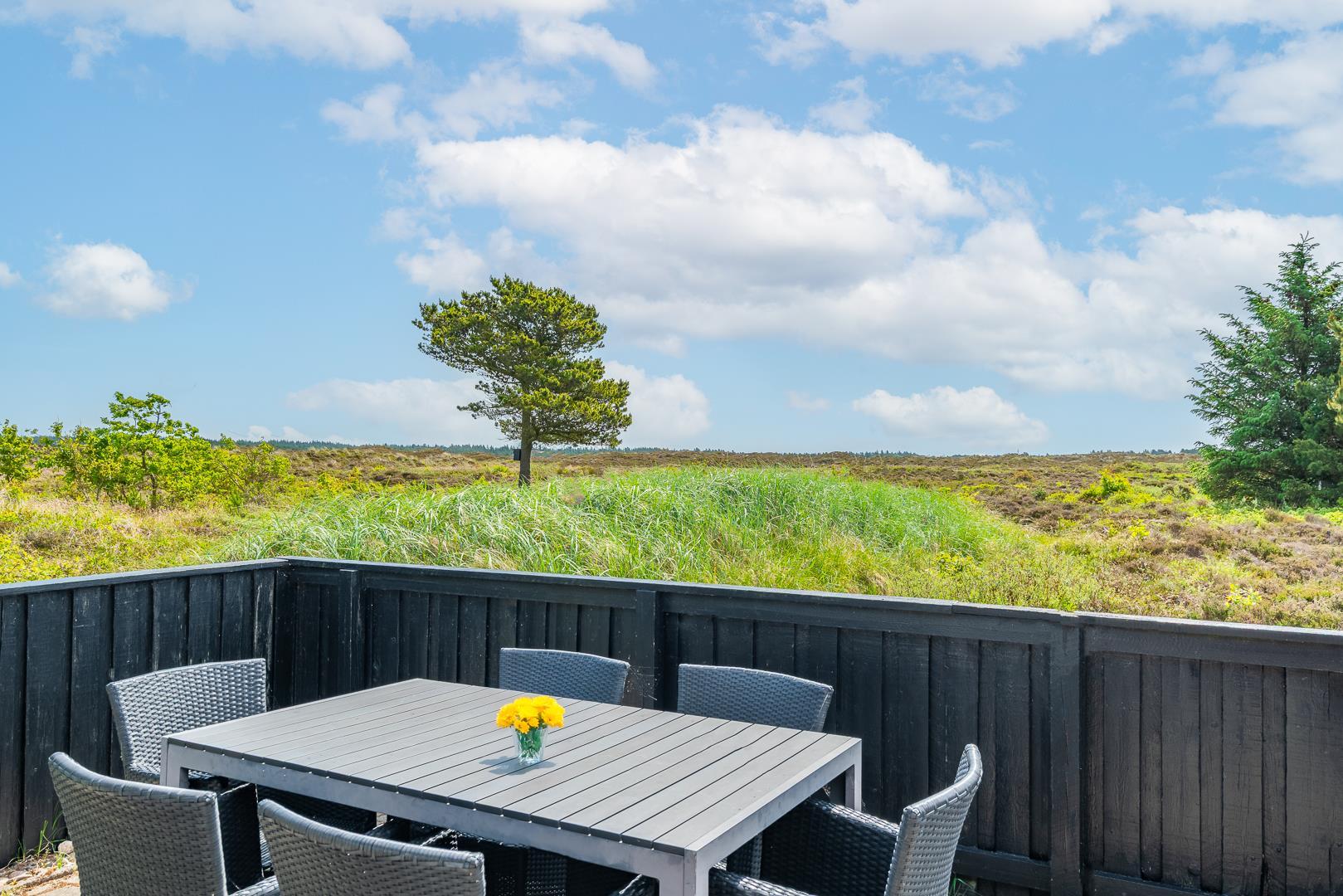 Hyggeligt sommerhus ved Henne Strand med sauna, brændeovn og stor naturgrund tæt på strand og indkøb.