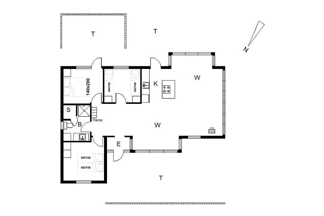Sengestørrelse: 1 dobbeltseng med 2 madrasser 90 x 200 cm + 1 dobbeltseng 140 x 200 cm + 2 enkeltsenge 80 x 200 cm.