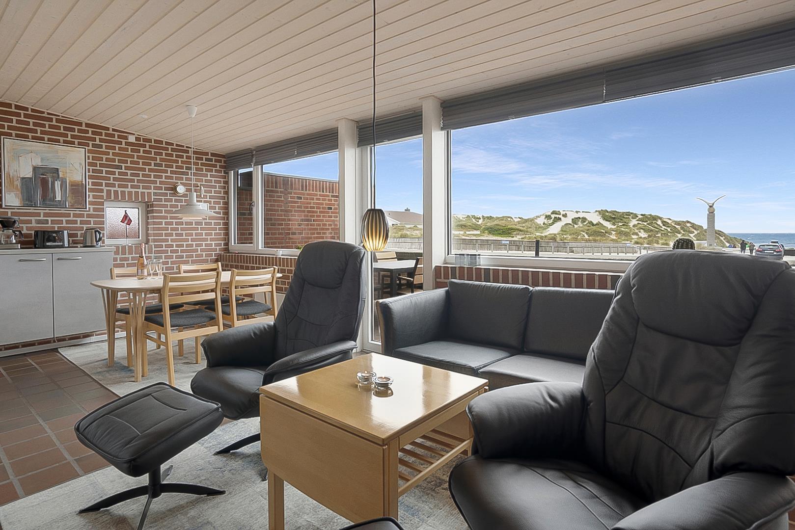 Hyggeligt rækkehus i første række til stranden med udsigt til Vesterhavet og nyt køkken fra 2023.