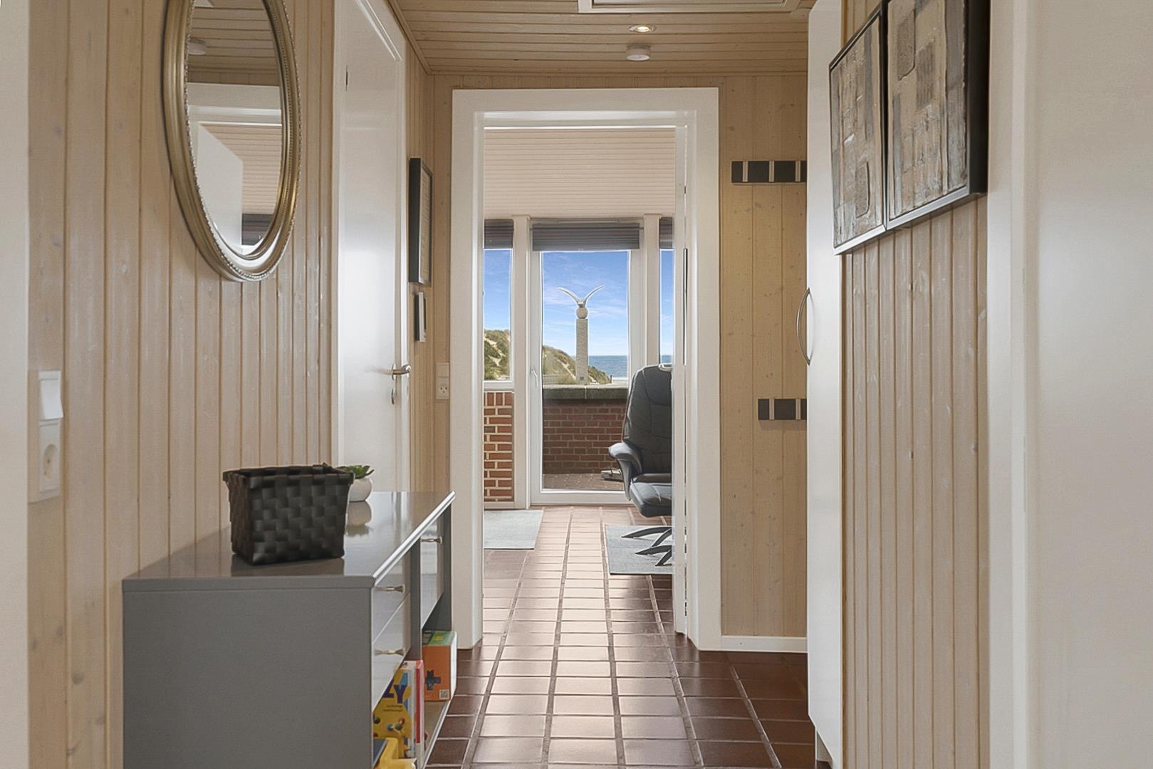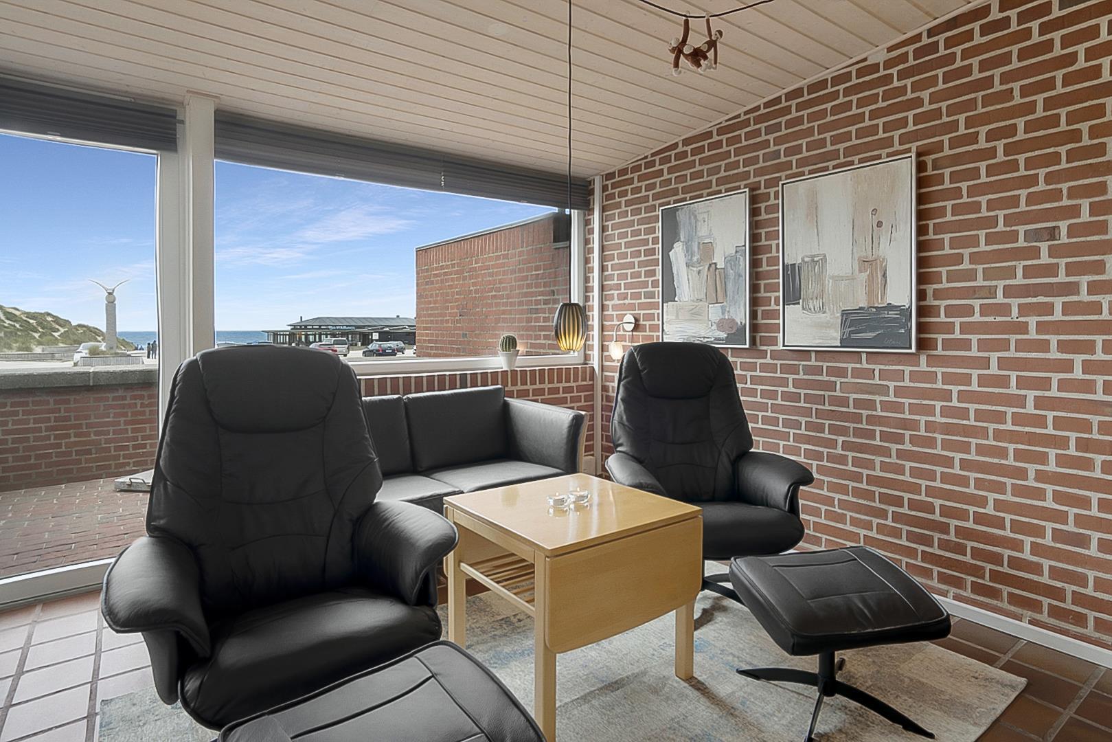Hyggeligt rækkehus ligger direkte i første række til stranden og har herlig udsigt over Vesterhavet. Huset er meget smagfuldt og personligt indrettet. Huset er i 2023 blevet moderniseret med nyt køkken.