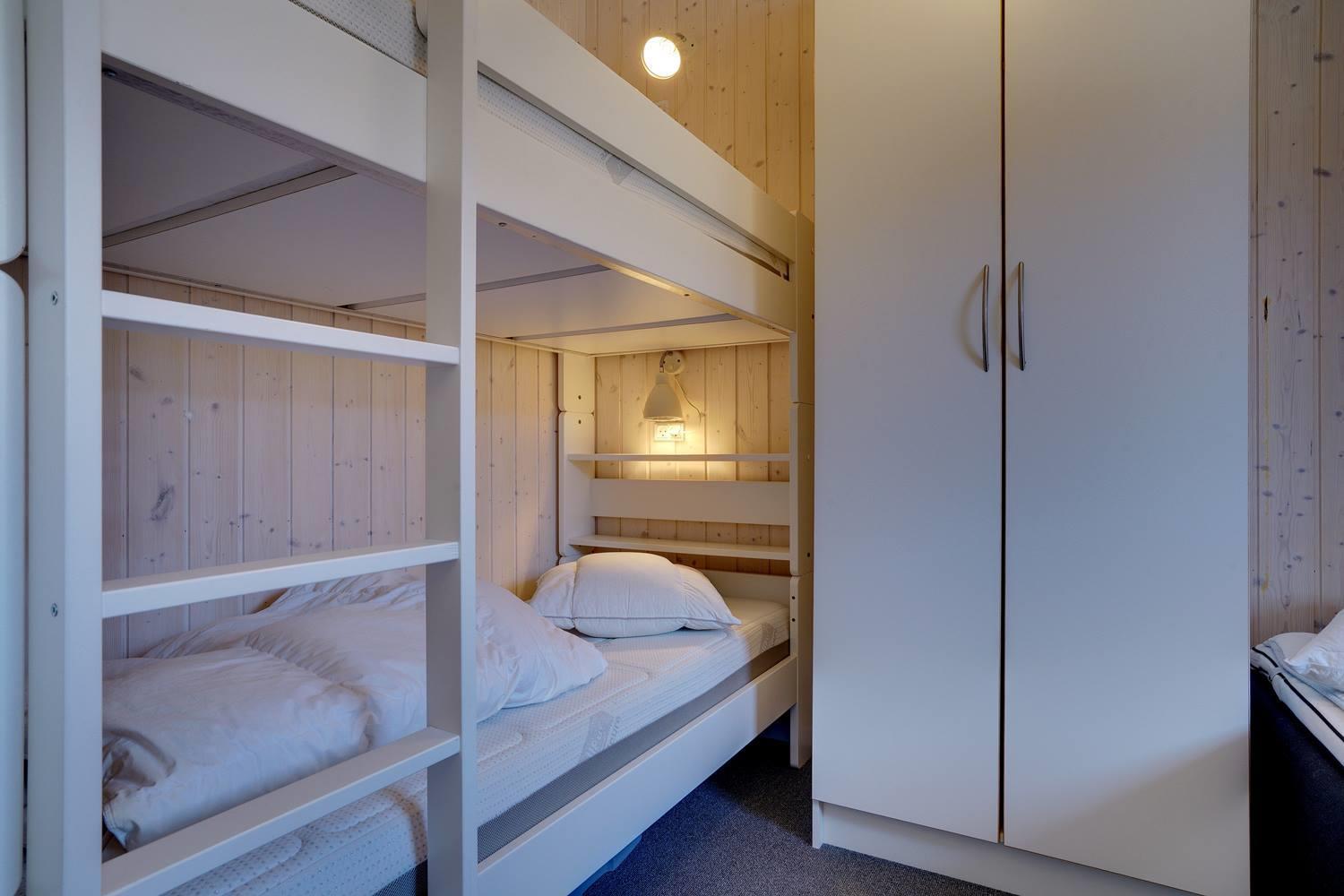 Sengestørrelse: 1 dobbeltseng 150 x 200 cm + 1 dobbeltseng 120 x 200 cm + 1 køjeseng 80 x 200 cm.