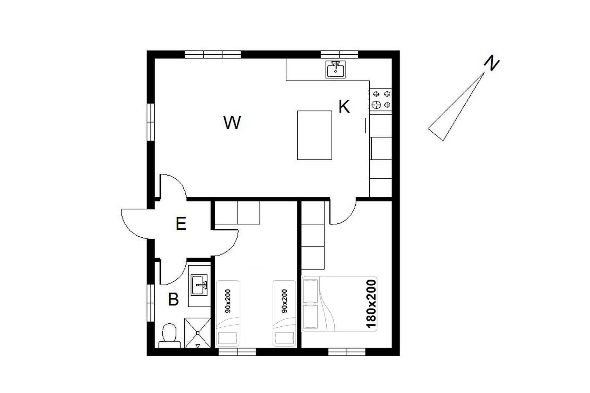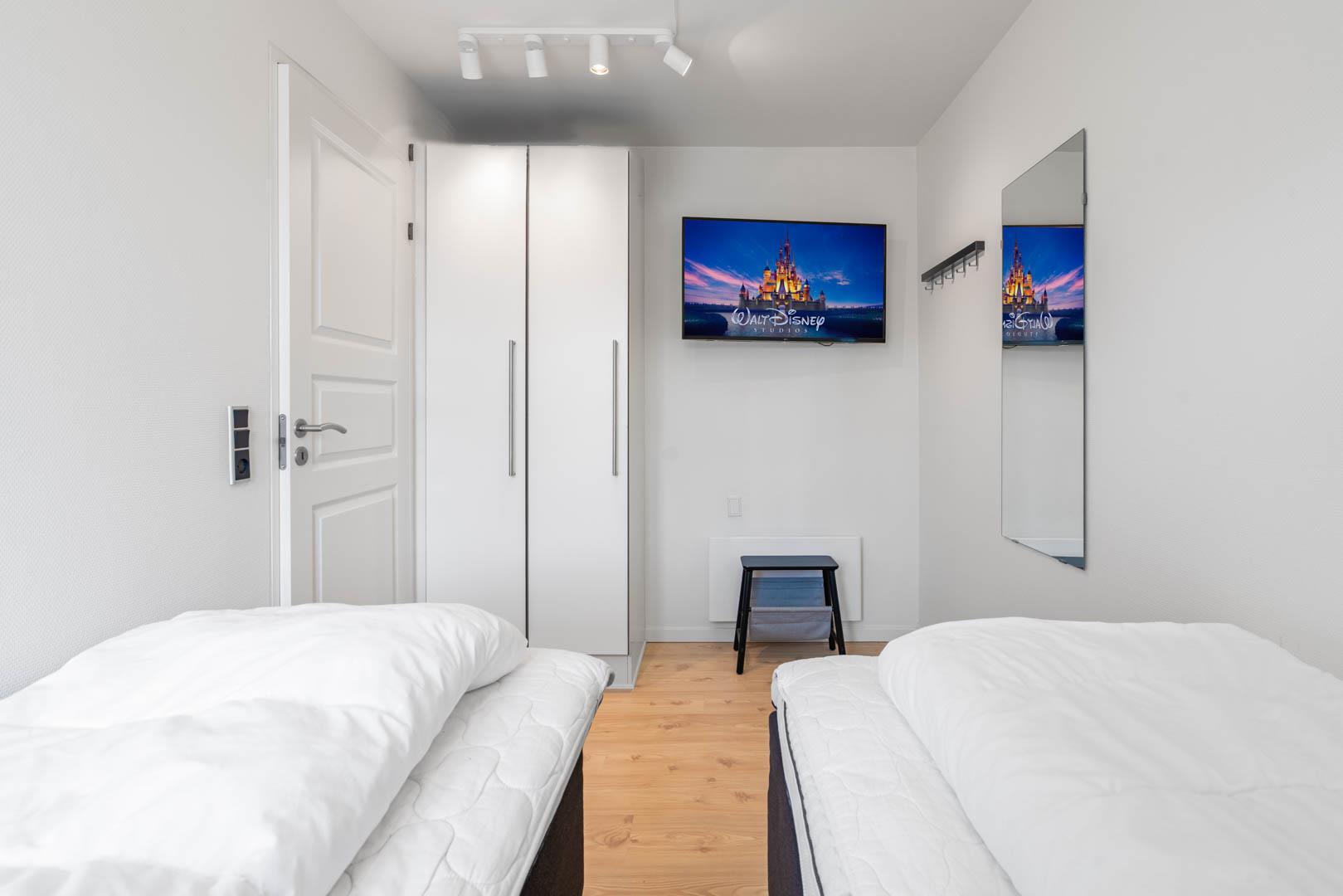 Sengestørrelse: 1 dobbeltseng 180 x 200 cm. + 2 enkeltsenge 90 x 200 cm