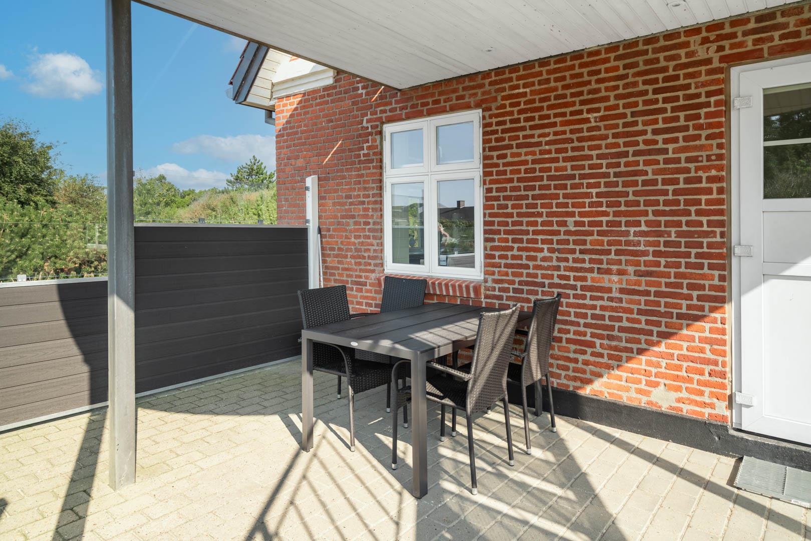 Hyggelig sydvendt lejlighed i stueplan nær Henne Strand med moderne faciliteter og privat naturgrund.