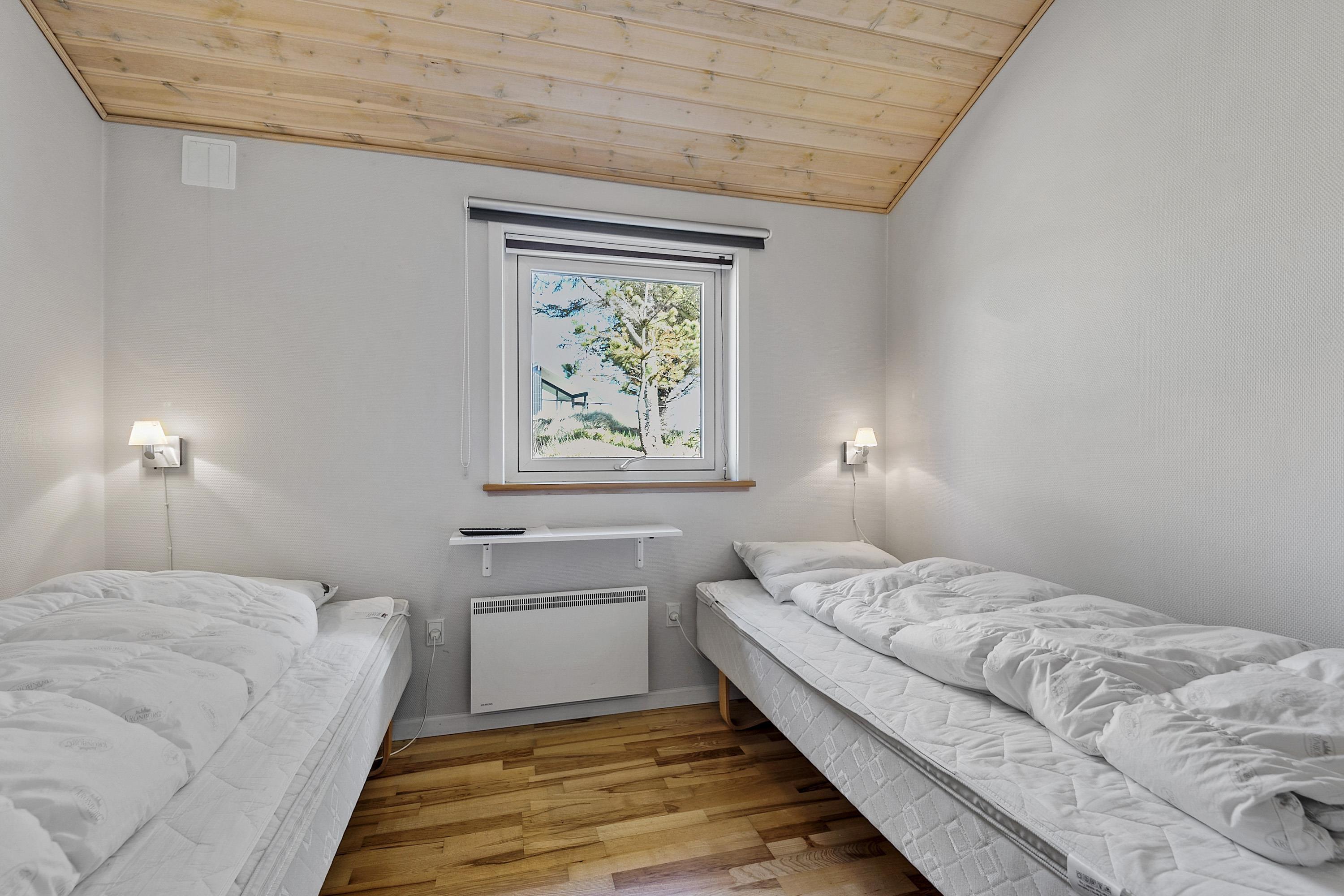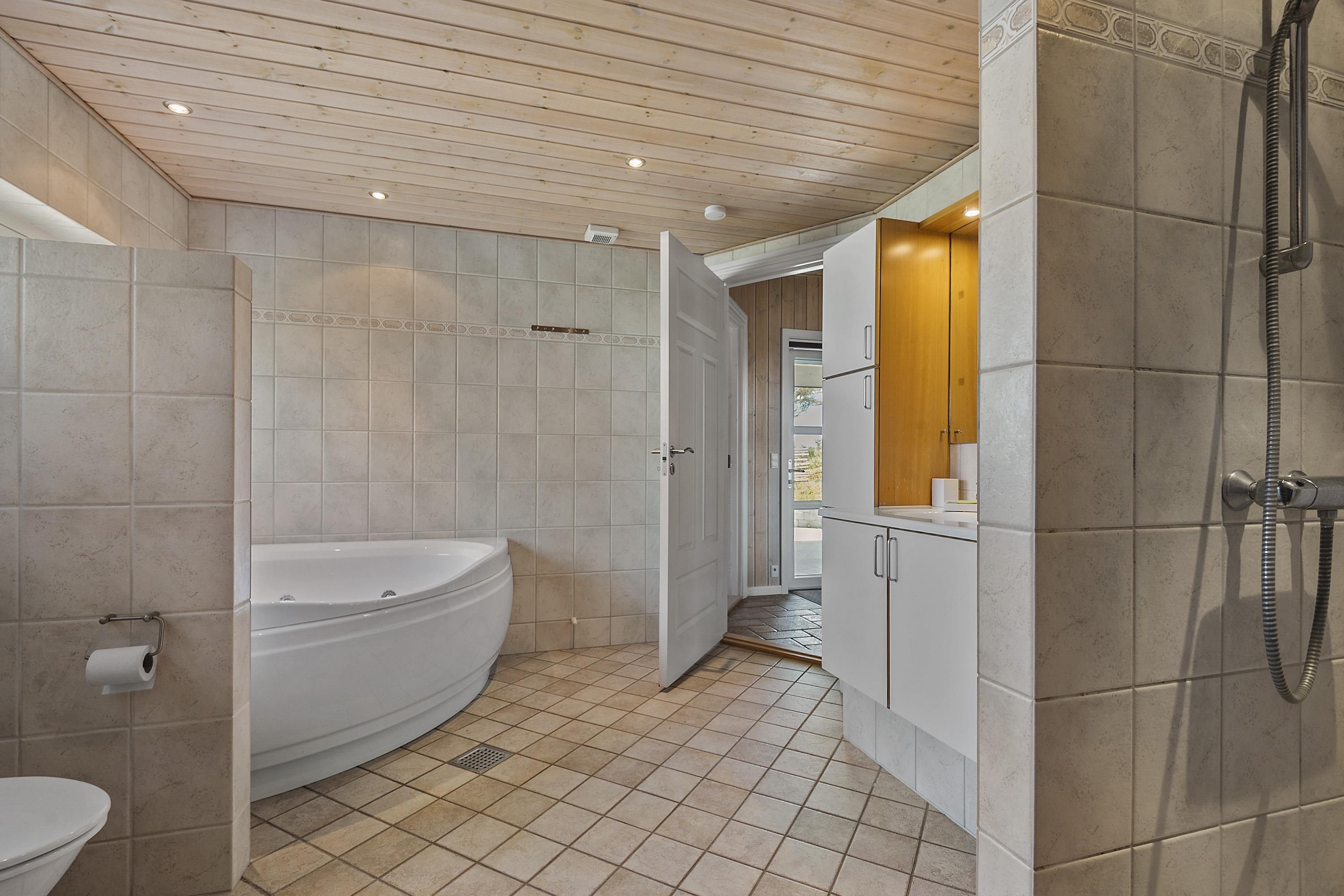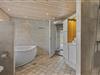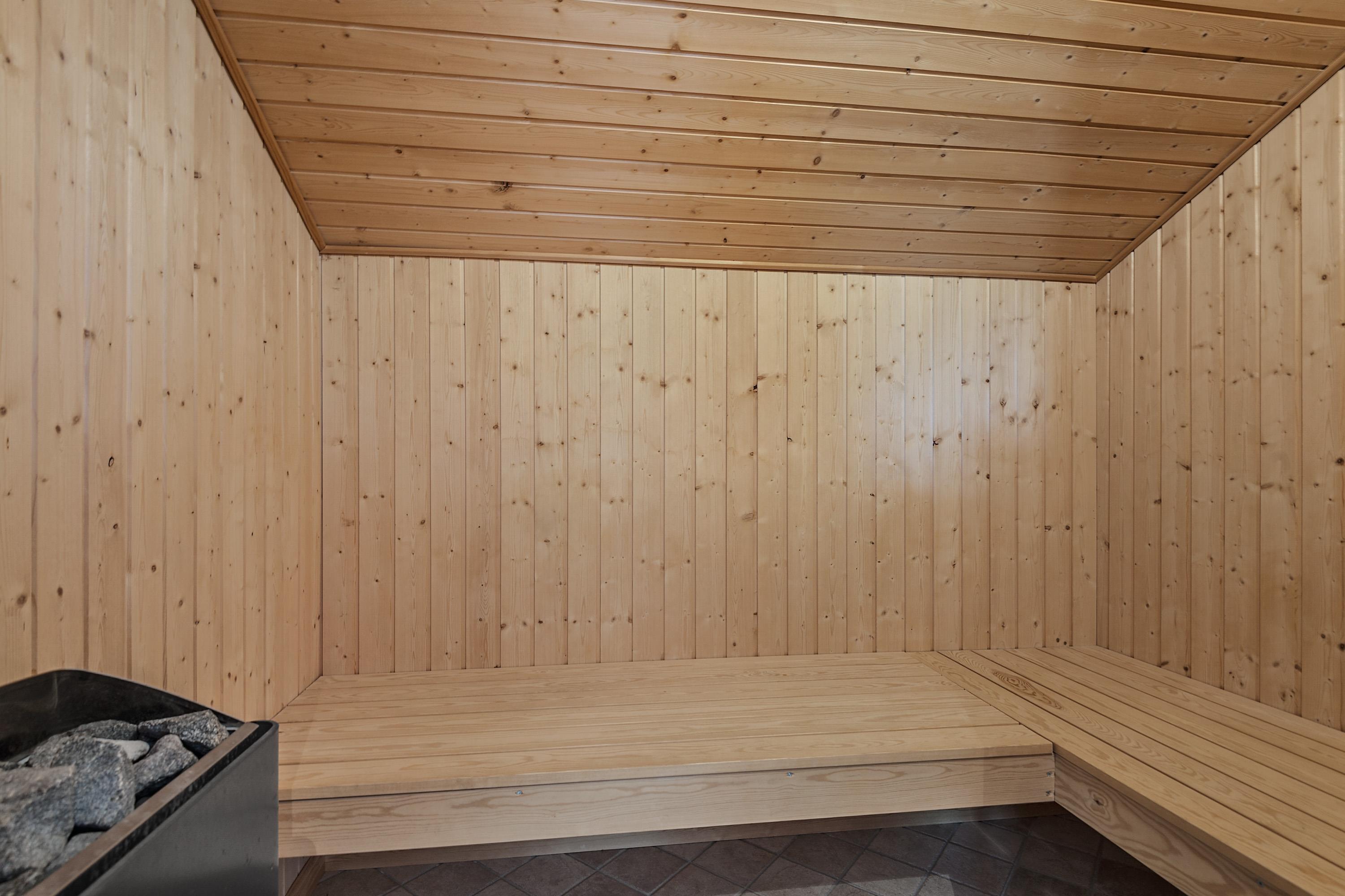 Der er 3 soveværelser og 2 badeværelser, hvor det ene har sauna og spa.