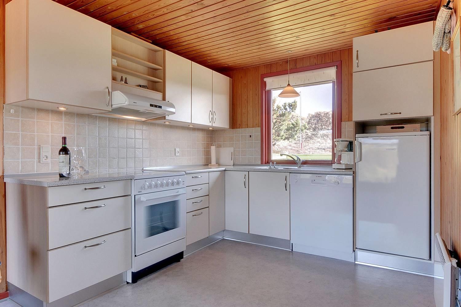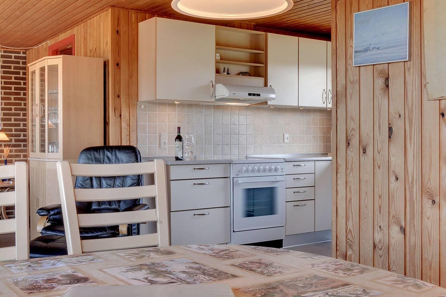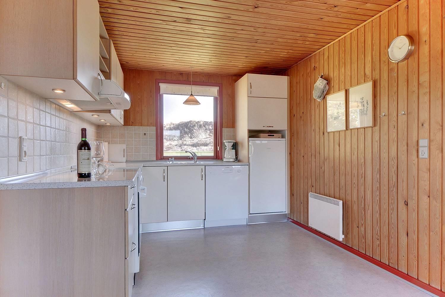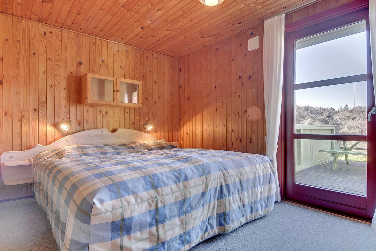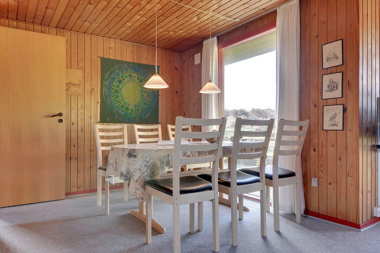 For enden af blind vej, på en kuperet klitgrund ligger dette dejlige feriehus. Det er 2 gode træterrasser, hvoraf den ene er delvis overdækket og den anden er indhegnet. Gode værelser og nyere badeværelse og køkken. Stor stue med brændeovn med glaslåge og udgang terrasse.