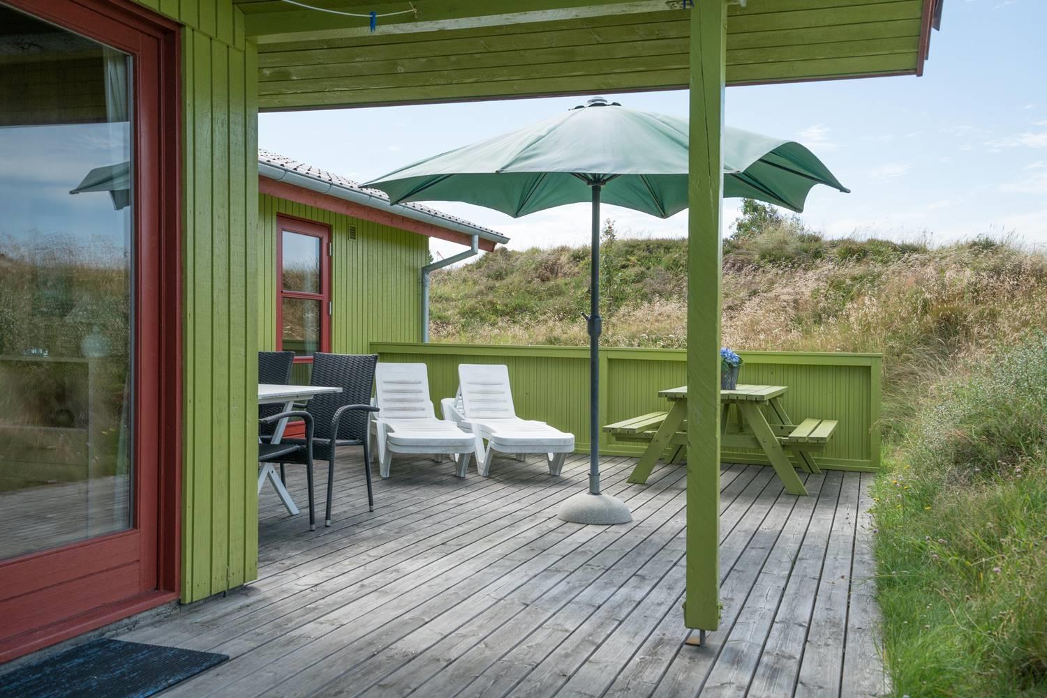 Hyggeligt feriehus med terrasse nær stranden