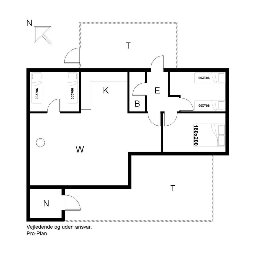 Sengestørrelse: 1 dobbeltseng 180 x 200 cm + 4 enkeltsenge 90 x 200 cm.