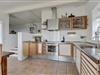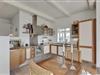 Det åbne køkken er moderne indrettet med opvaskemaskine og gulvvarme.
