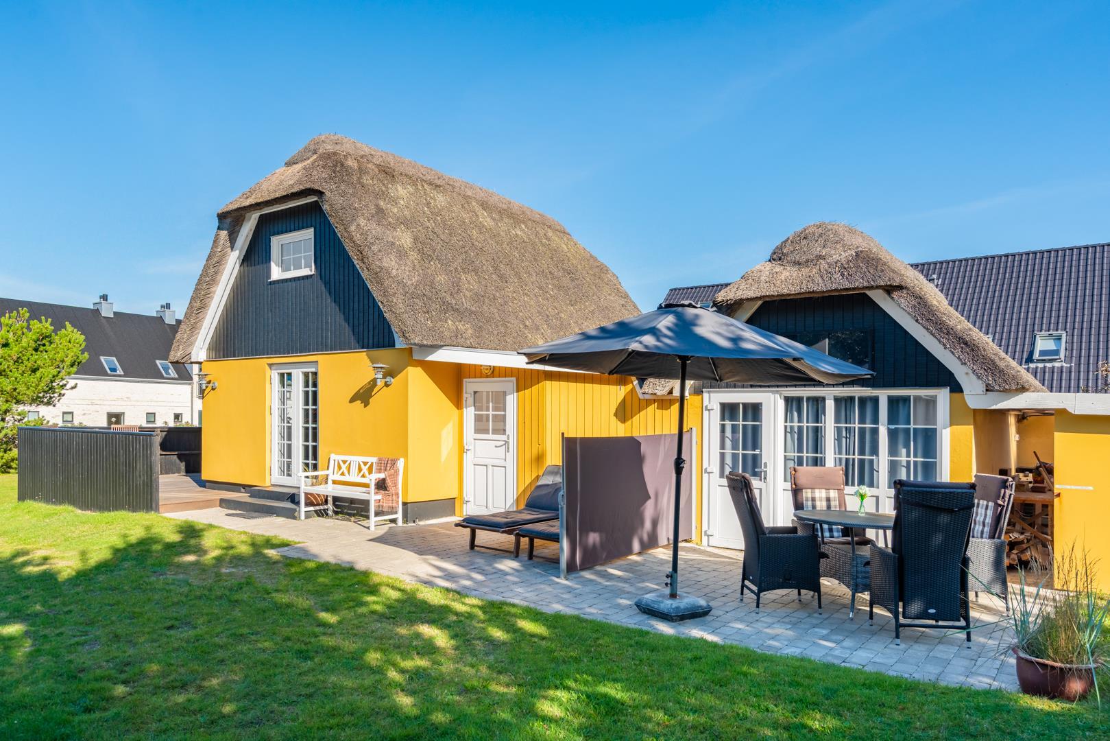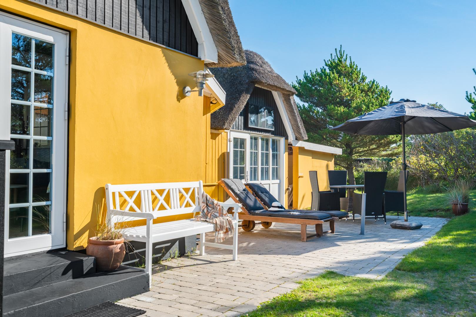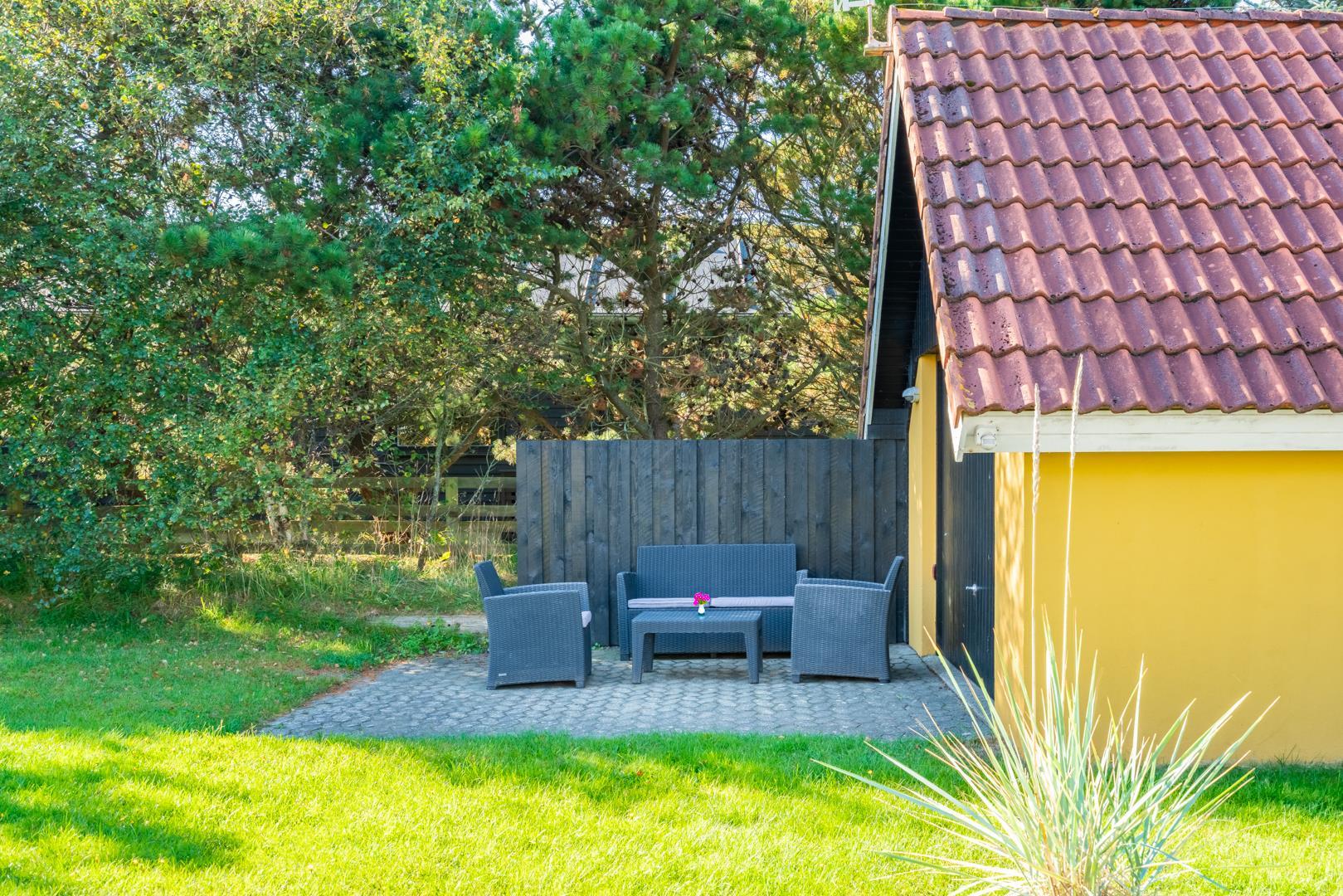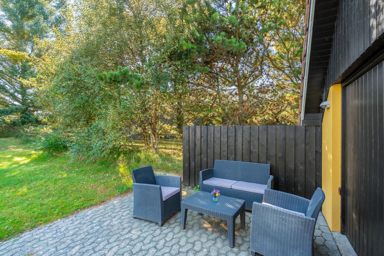 Ældre, men hyggeligt og velholdt feriehus beliggende på en stor naturgrund et minuts gang fra Henne Strands butikker og caféer. Huset er pænt indrettet med gode møbler, entre/udestue med god plads til sko og overtøj og her er der også en lille spiseplads. Der nyt dejligt køkken med induktionsplader og indbygningsovn. På 1 sal finder man husets 2 soverum med dobbeltsenge - trappen er stejl op til 1 salen. Der er flere gode terrasser ved huset og på grunden er der god plads til leg og spil. Et dejligt sommerhus til et par eller den lille familie, det er også tilladt at tage hunden med.