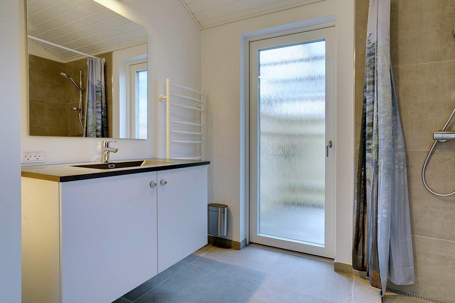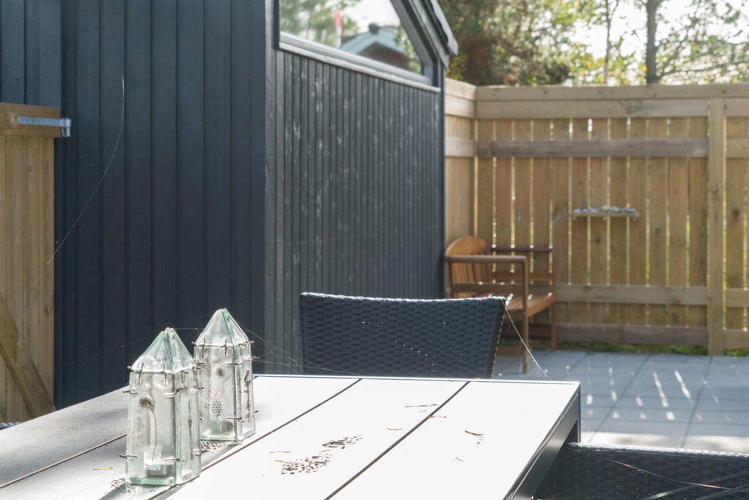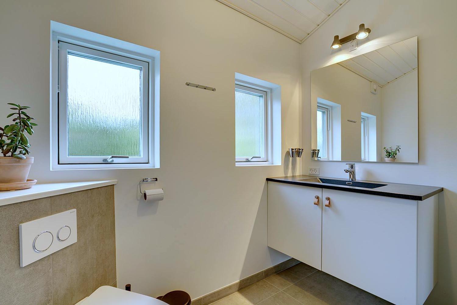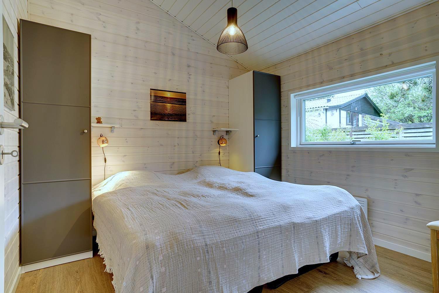Feriehuset er opført i 2021. Lofterne går til kip, og rummene er badet i naturligt lys, som strømmer ind gennem de store vinduespartier.