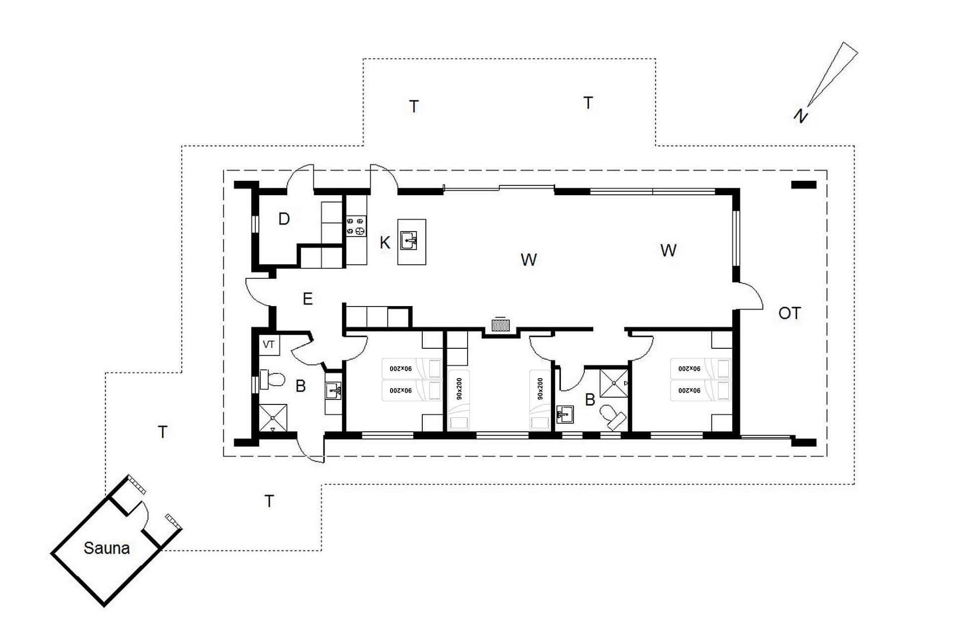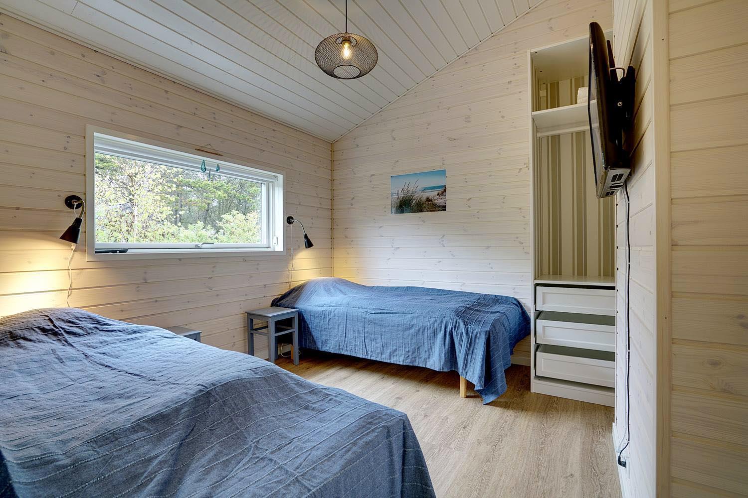 Sengestørrelse: 2 dobbeltsenge med 2 madrasser 90 x 200 cm + 2 enkeltsenge 90 x 200 cm.